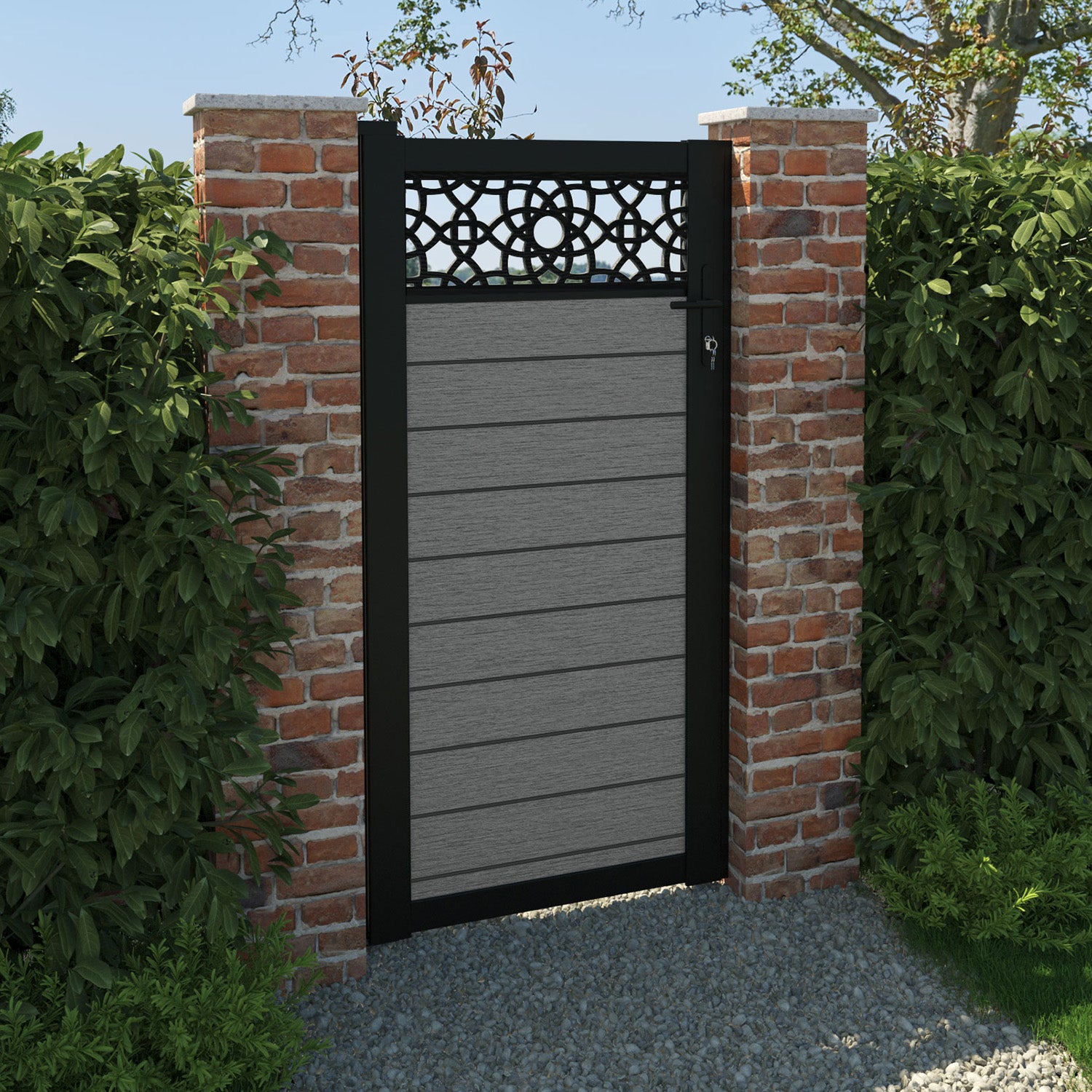 Pair your gate with our eco-friendly composite or aluminium slats for a seamless match with our fencing collections, ensuring a stylish and cohesive look.