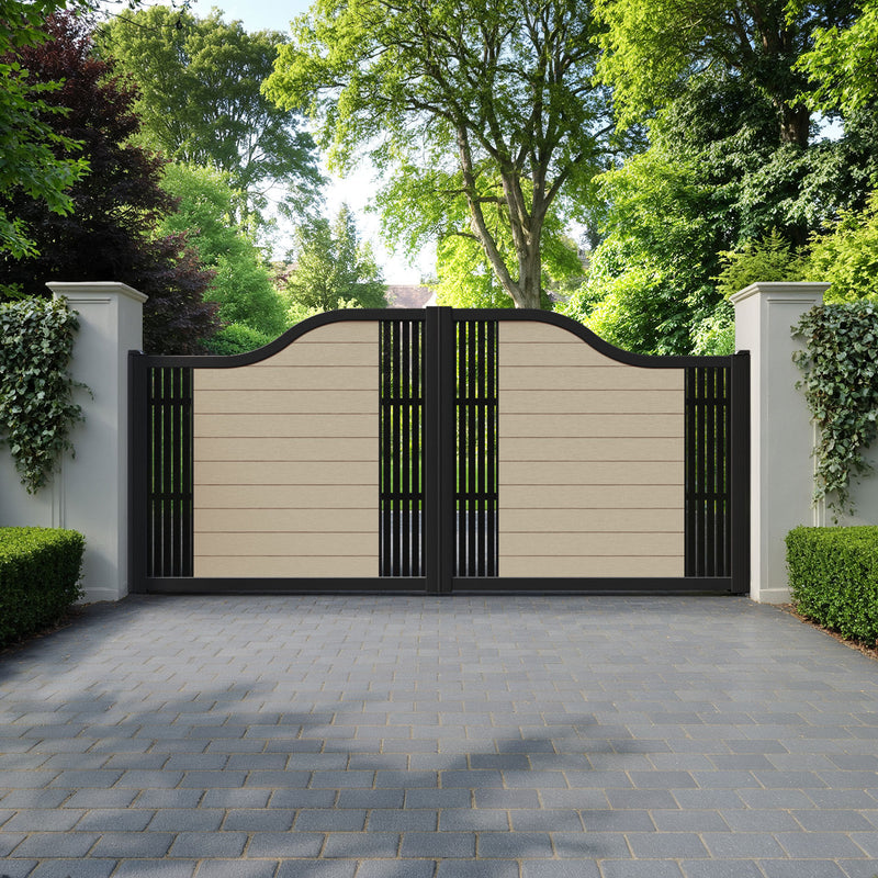 Fusion Aspen Curved Top Driveway Gate Light Oak - Middle & End Screen