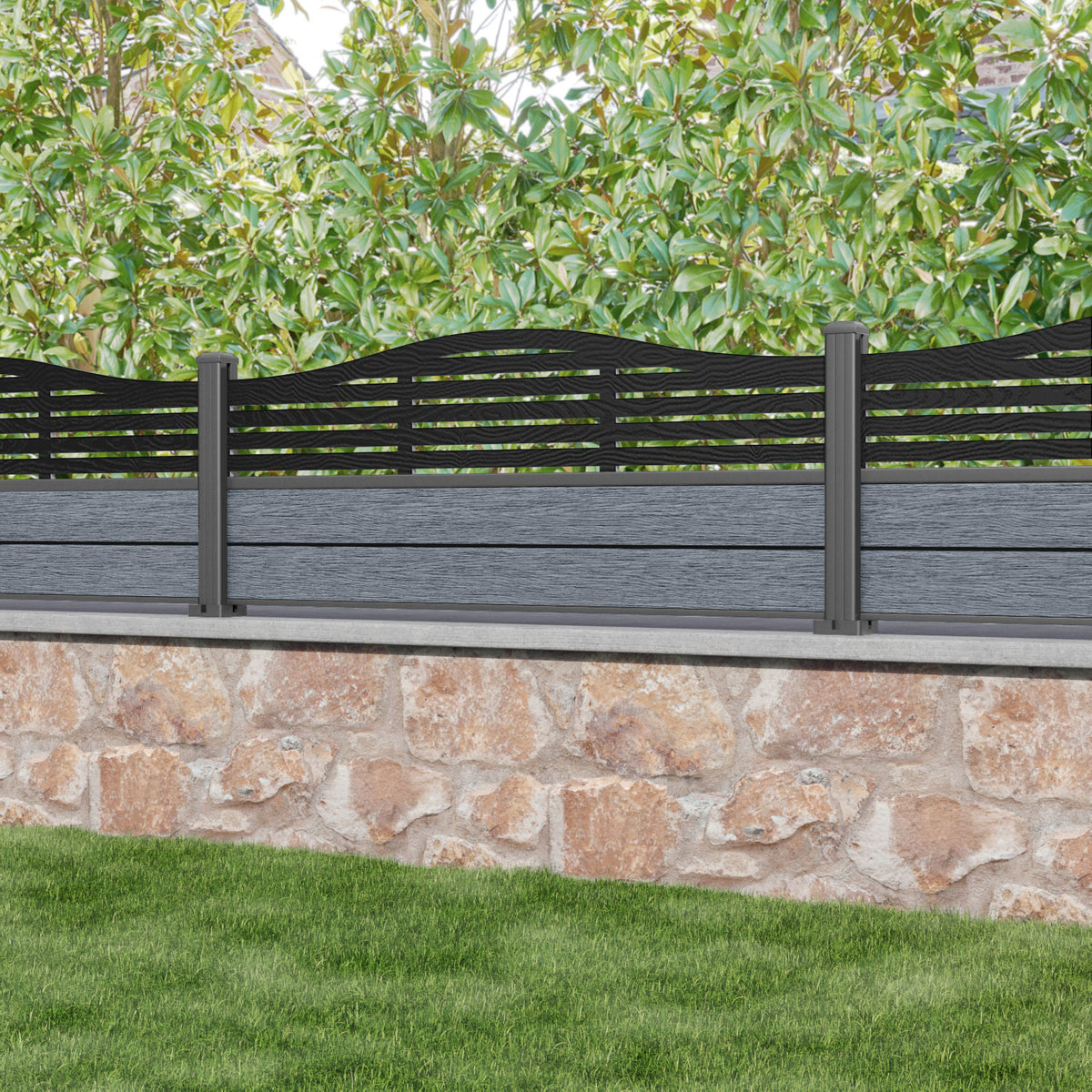 Fusion Aspen Curved Top Fence Panel Anthracite - with our aluminium posts