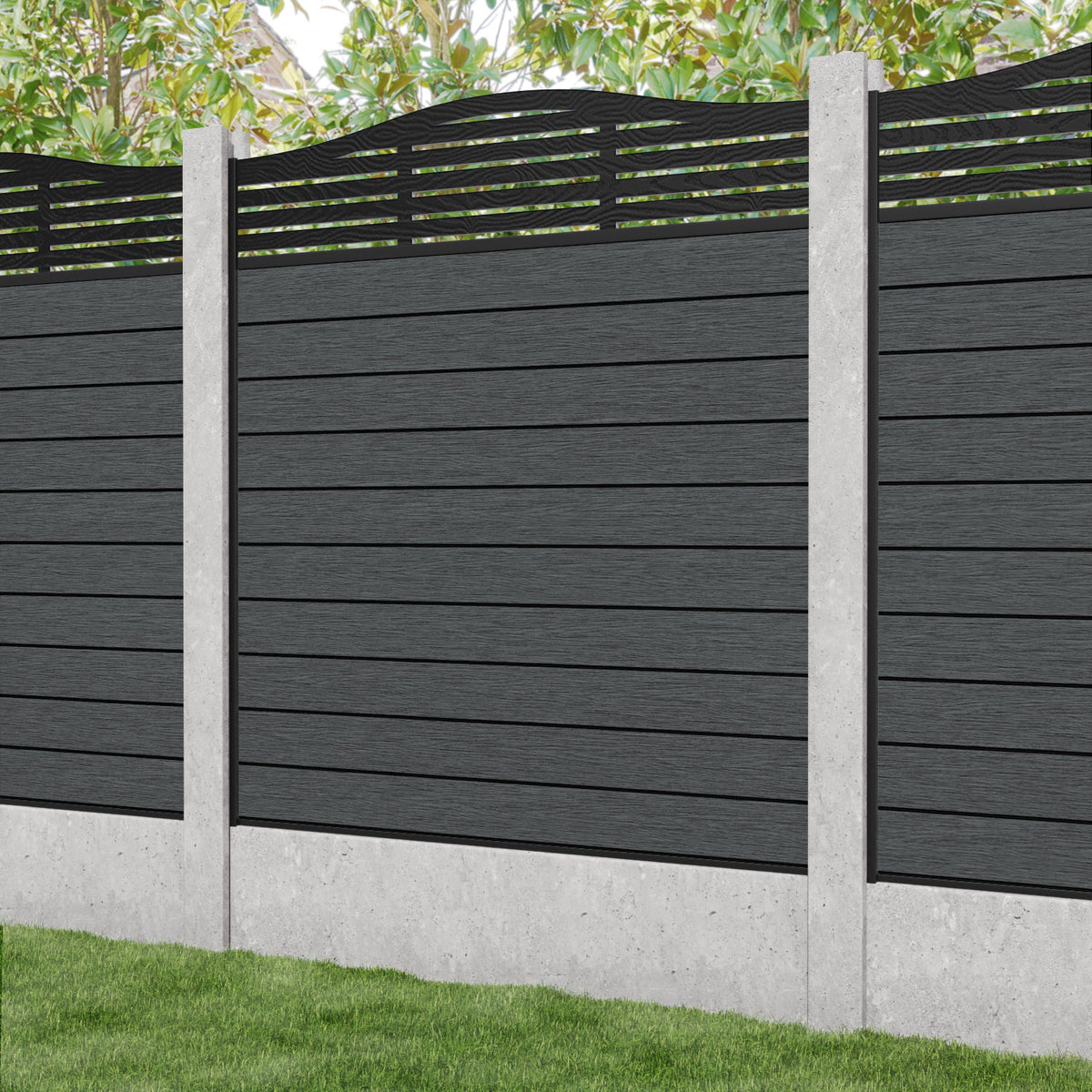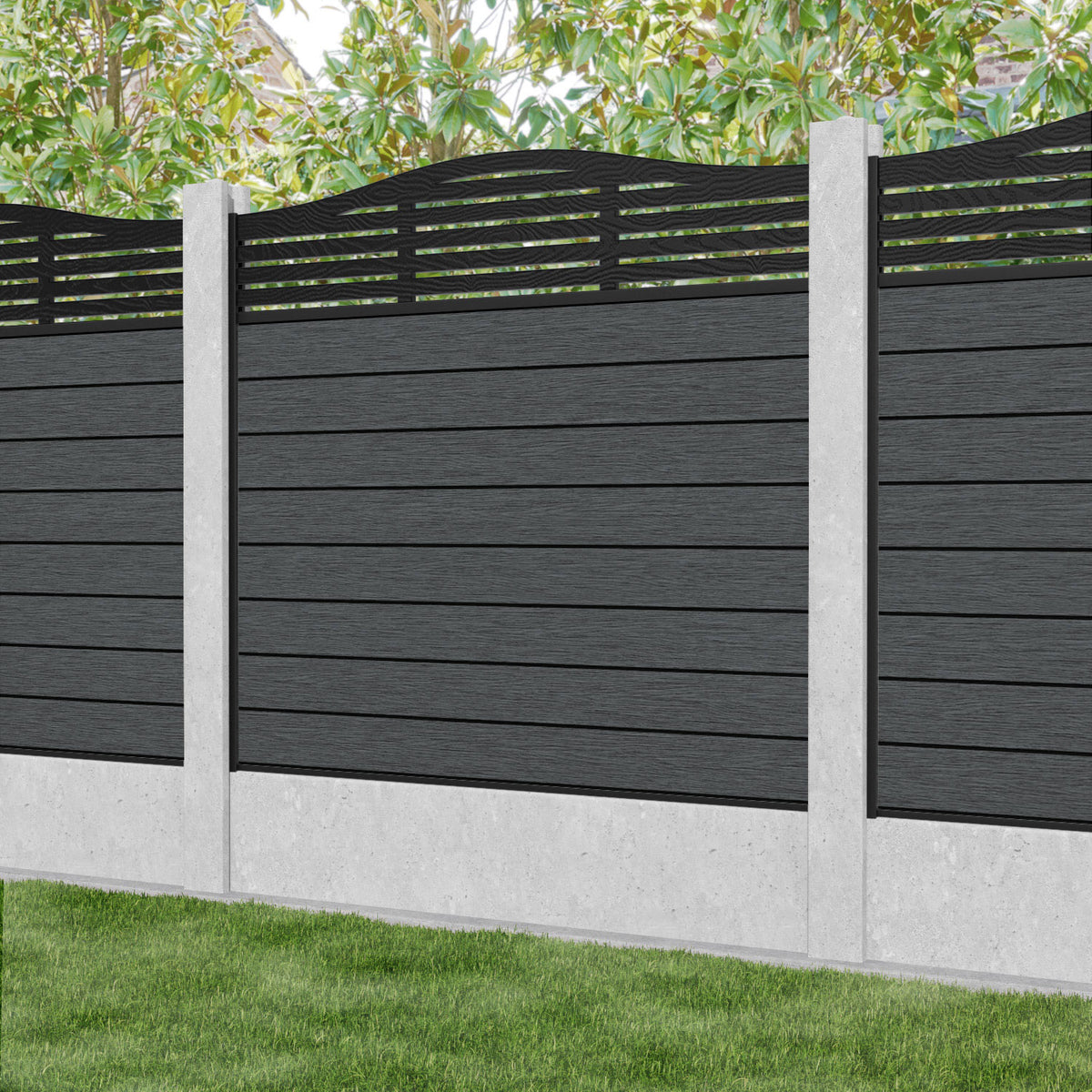 Fusion Aspen Curved Top Fence Panel Dark Grey - for existing concrete posts