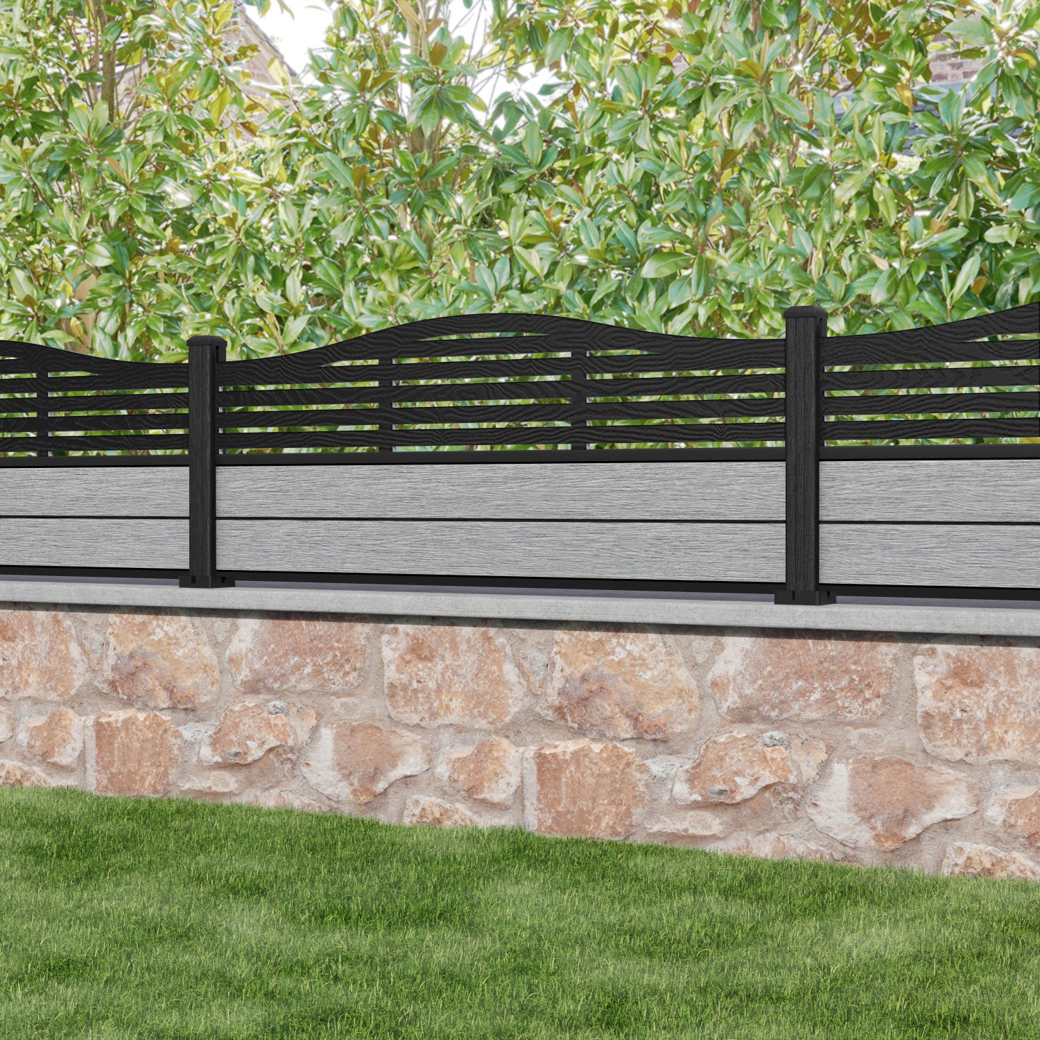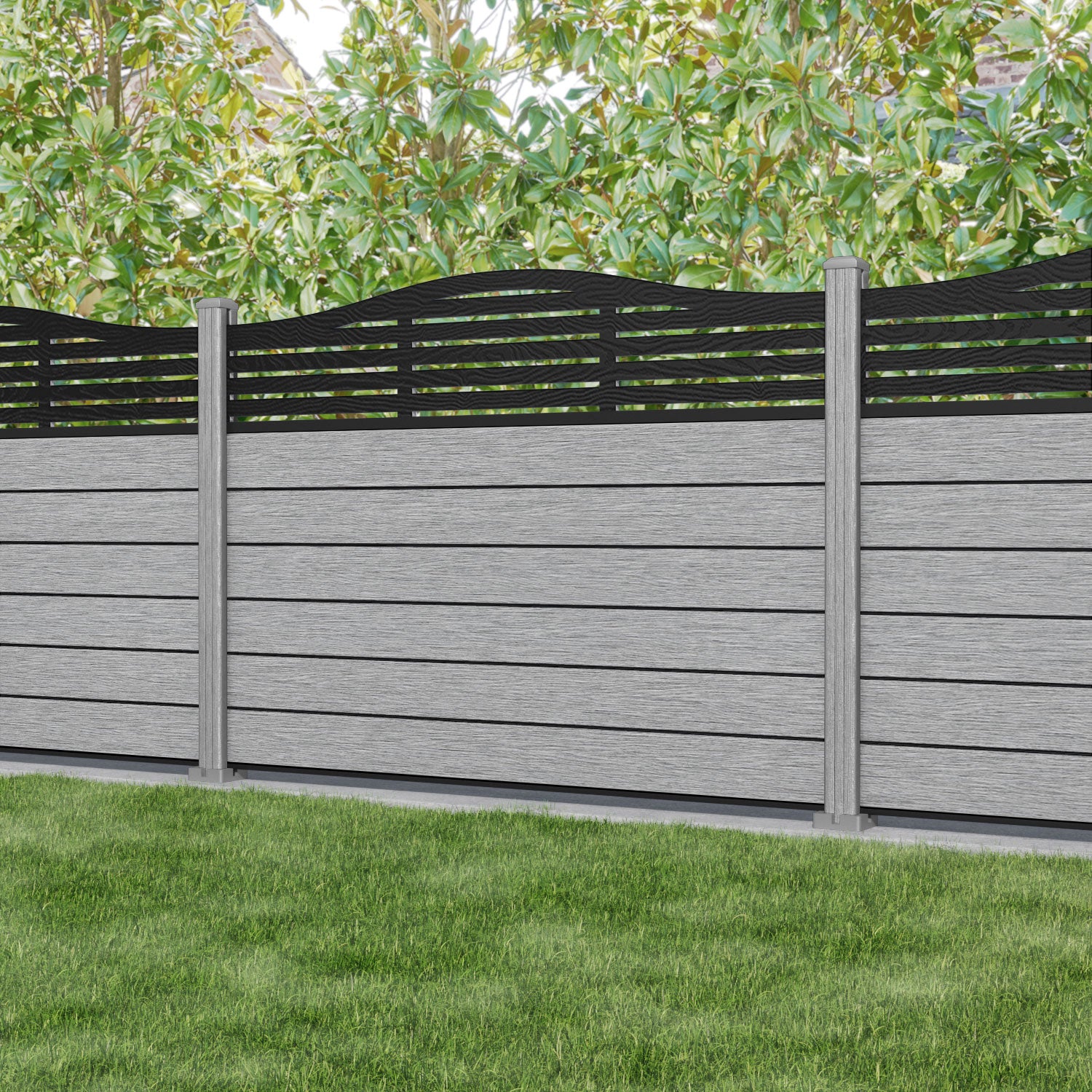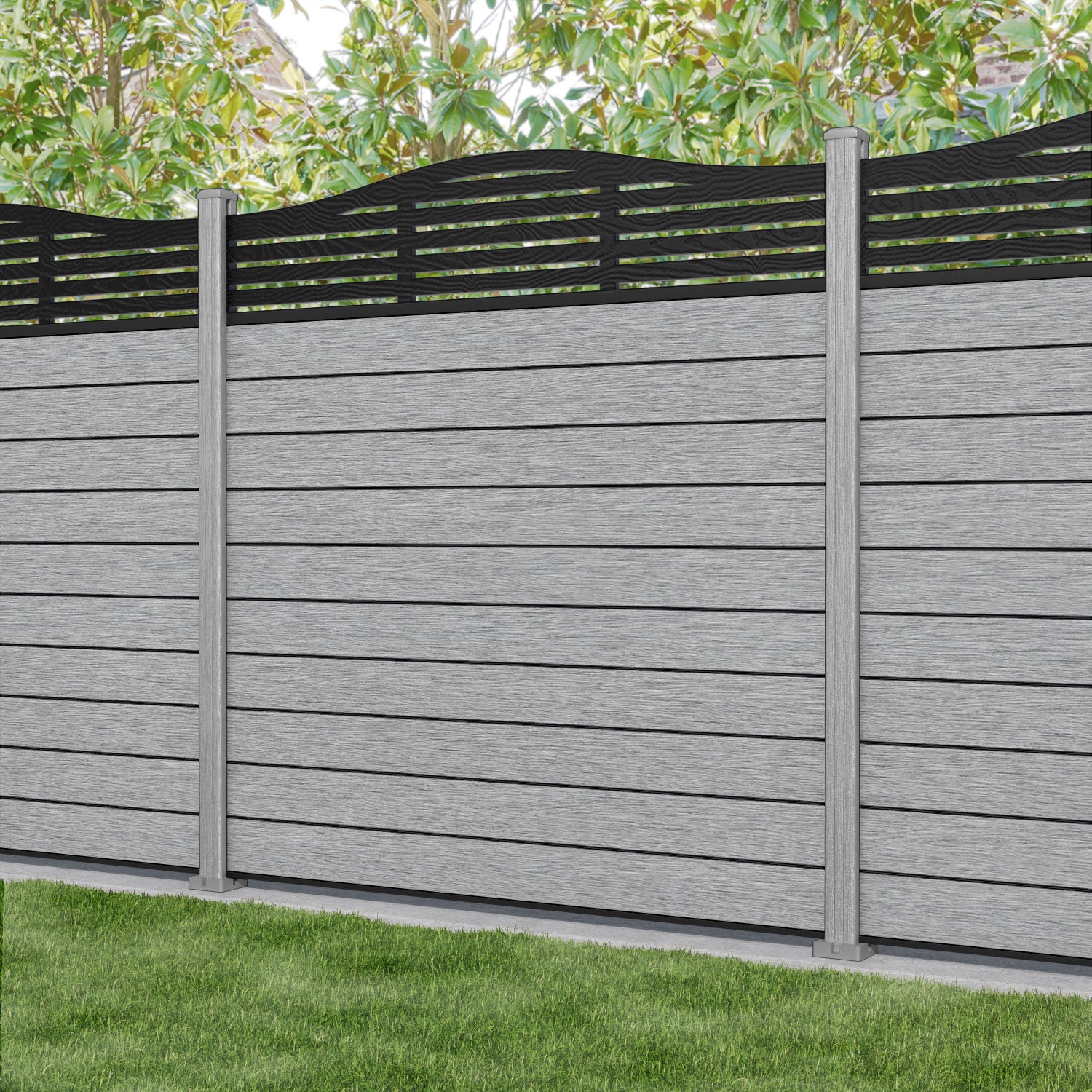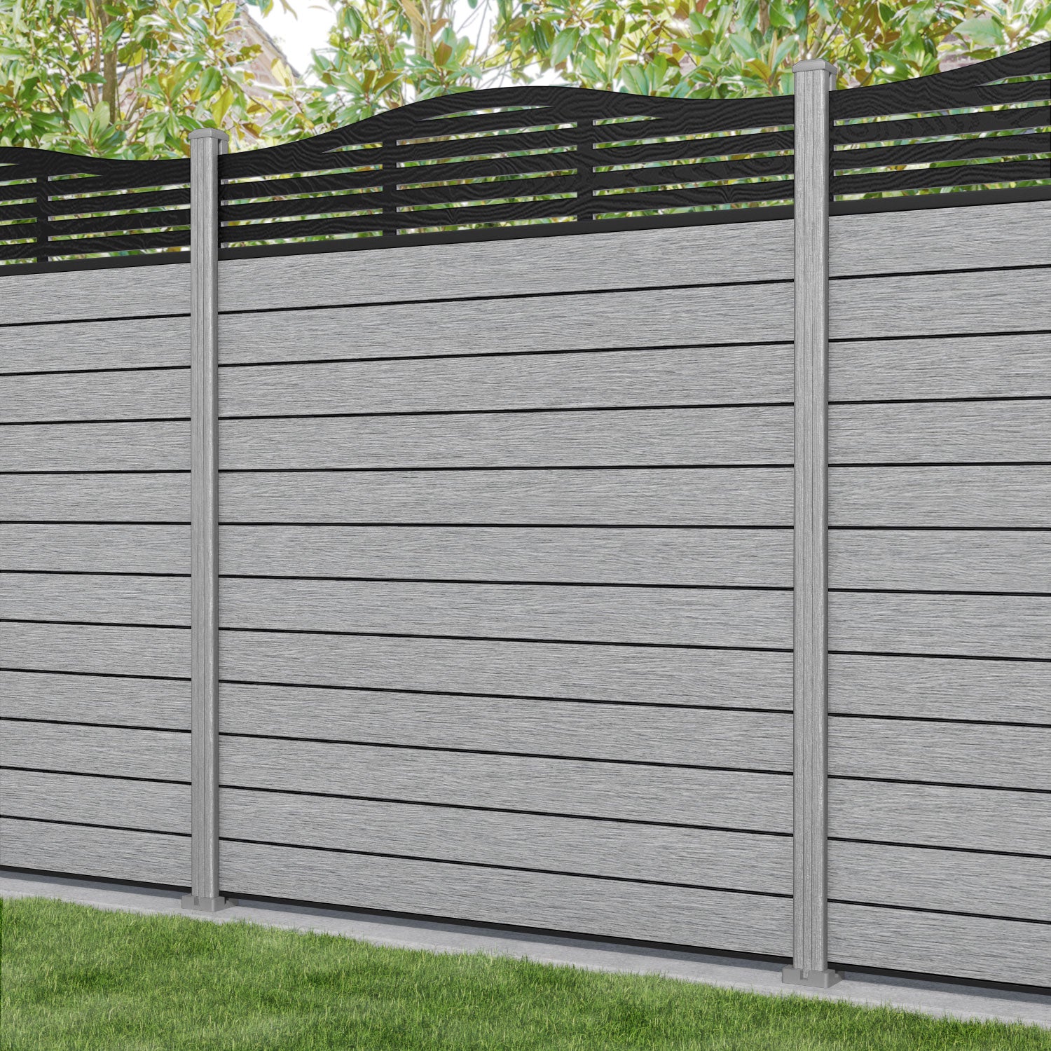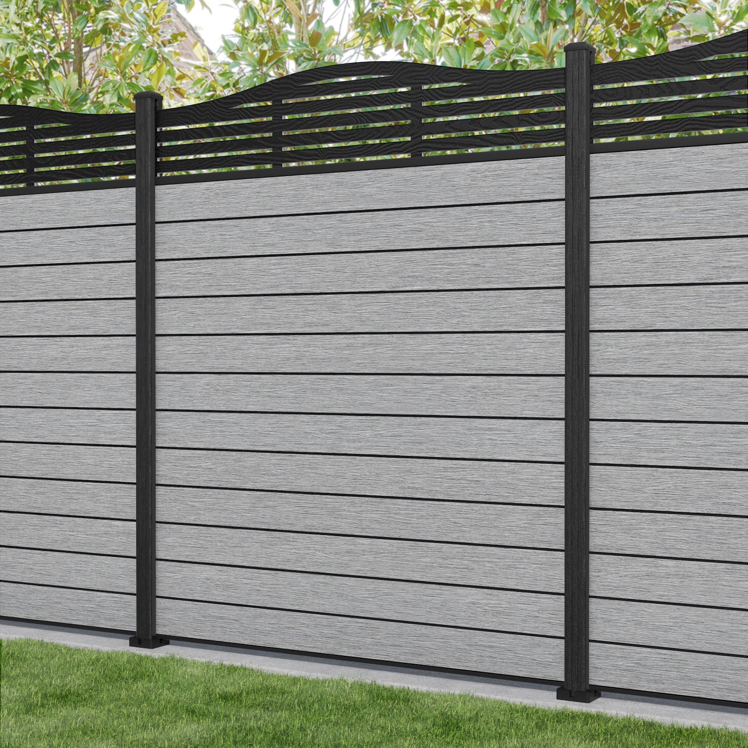Fusion Aspen Curved Top Fence Panel Light Grey - with our composite posts
