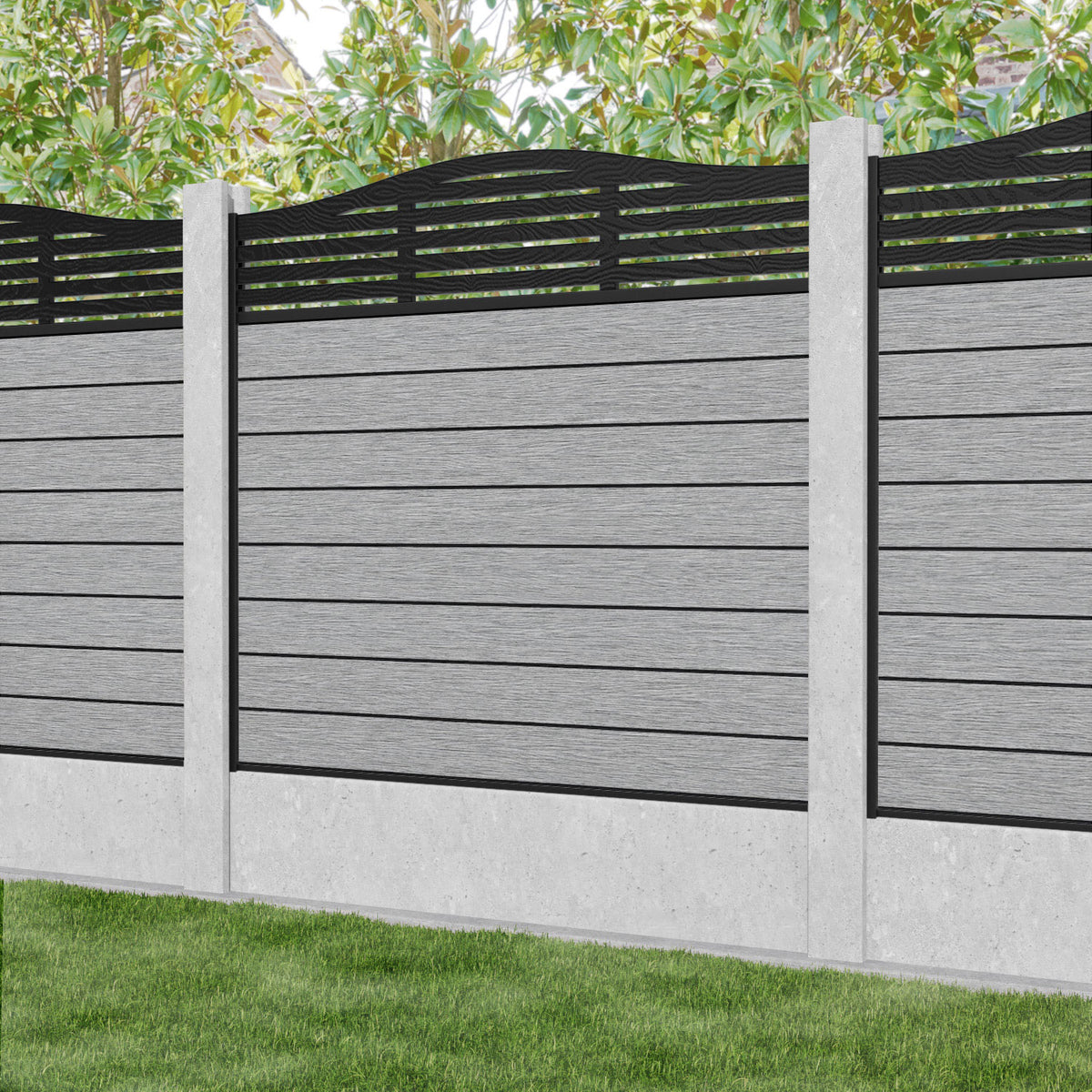 Fusion Aspen Curved Top Fence Panel Light Grey - for existing concrete posts
