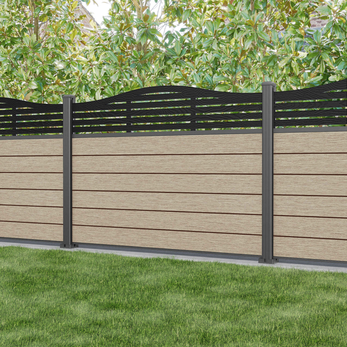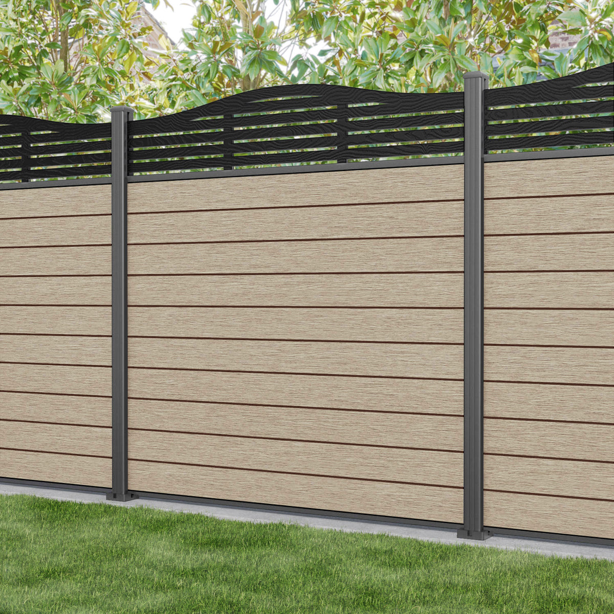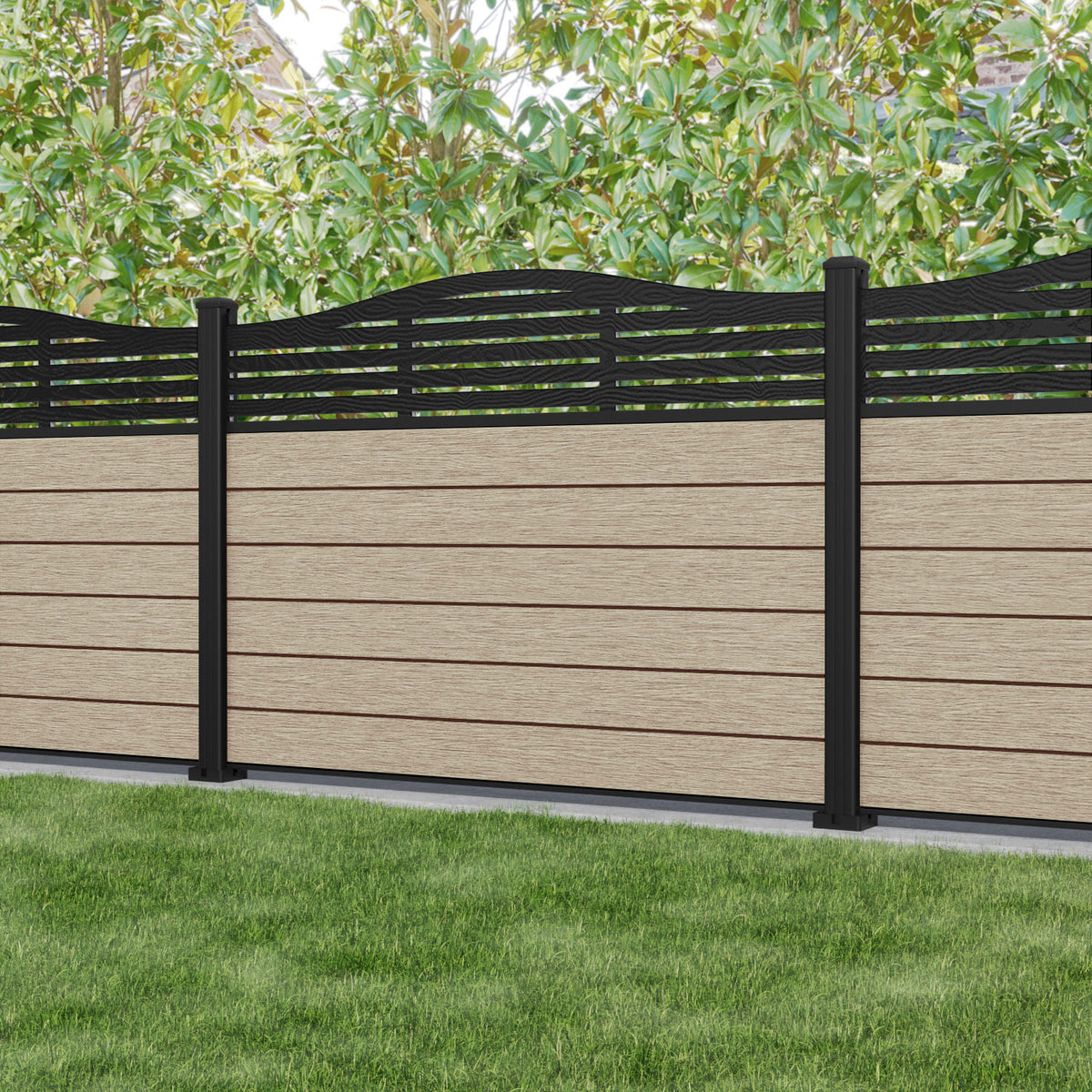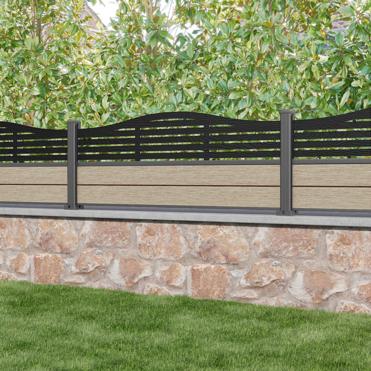 Fusion Aspen Curved Top Fence Panel Light Oak - with our aluminium posts