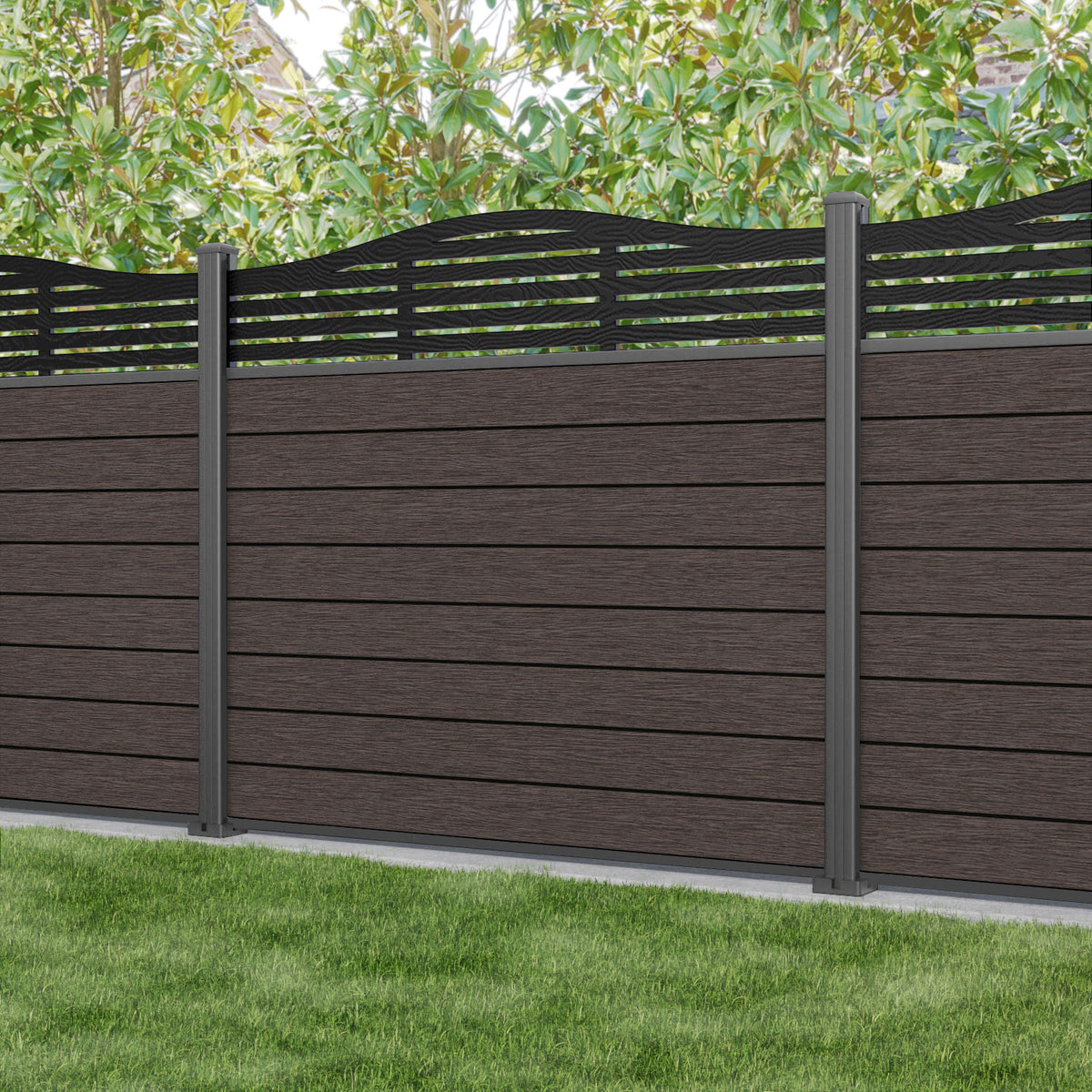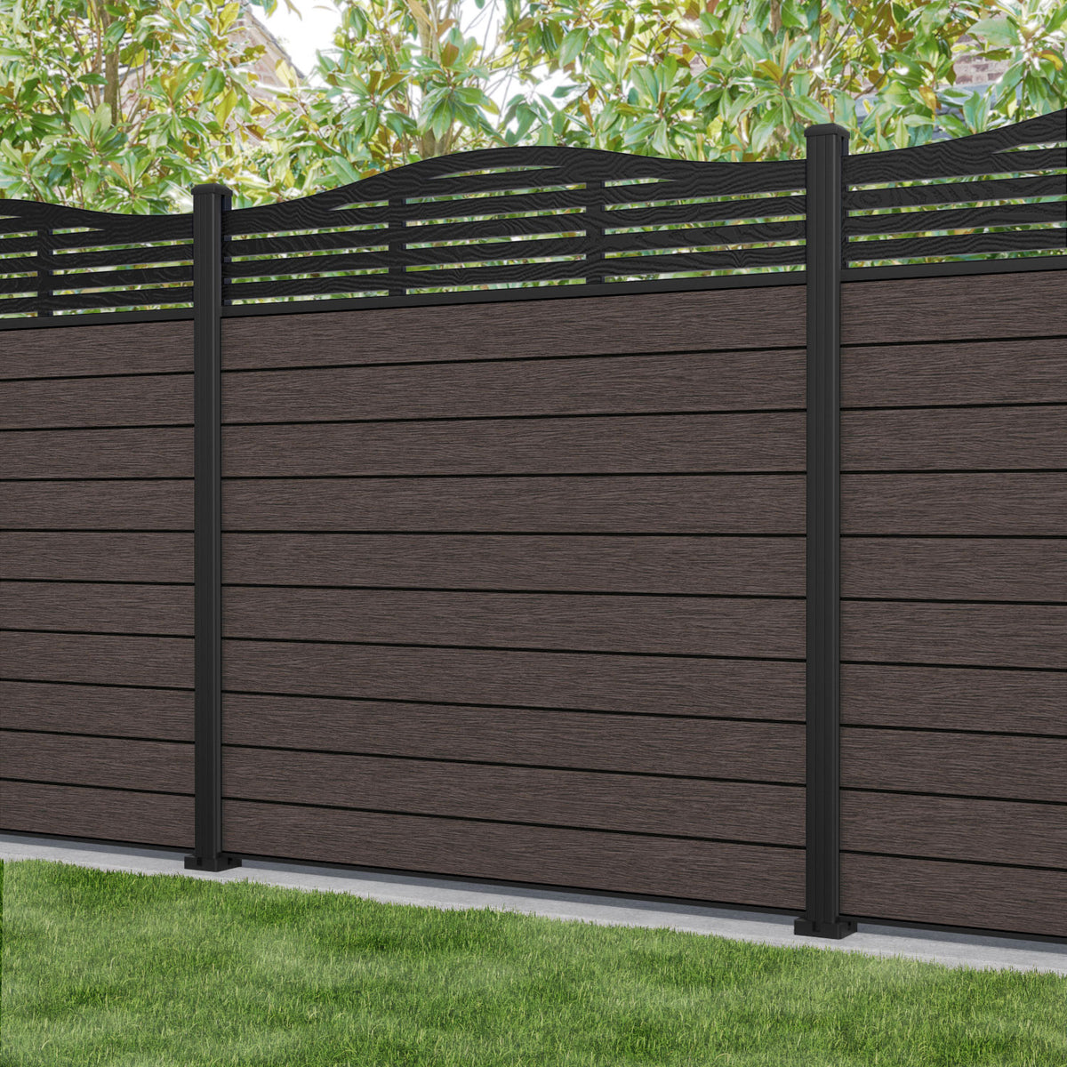 Fusion Aspen Curved Top Fence Panel Mid Brown - with our aluminium posts
