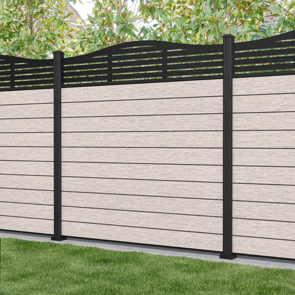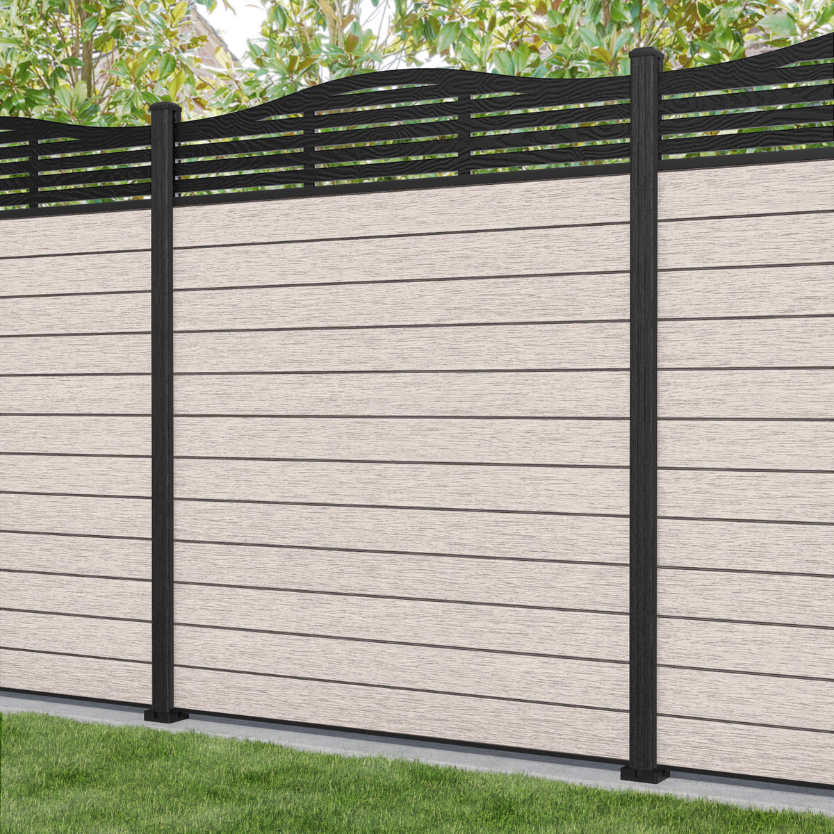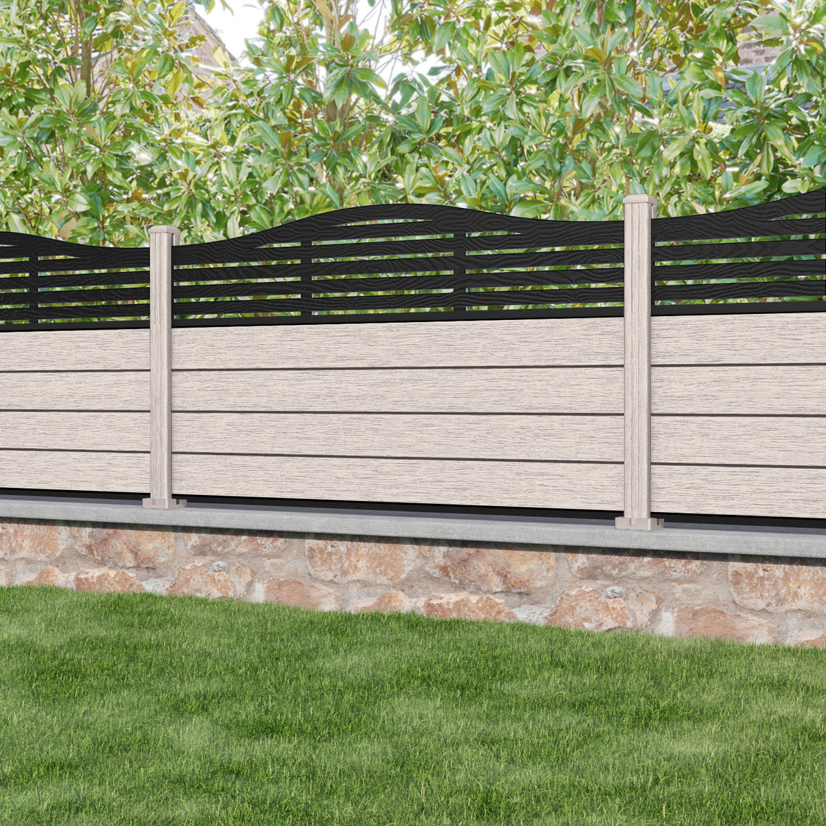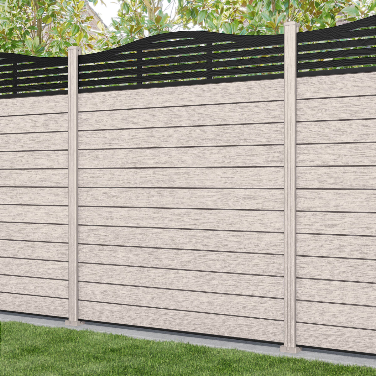 Fusion Aspen Curved Top Fence Panel Mid Stone - with our composite posts
