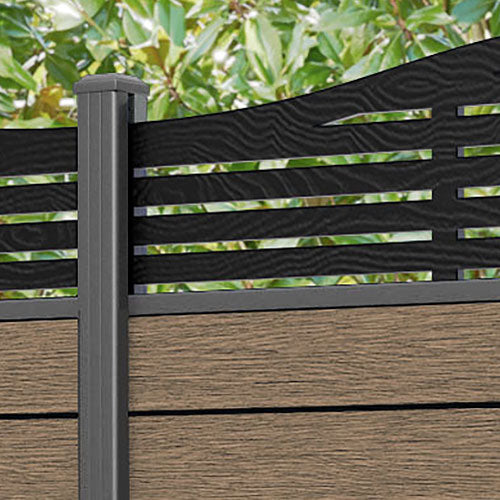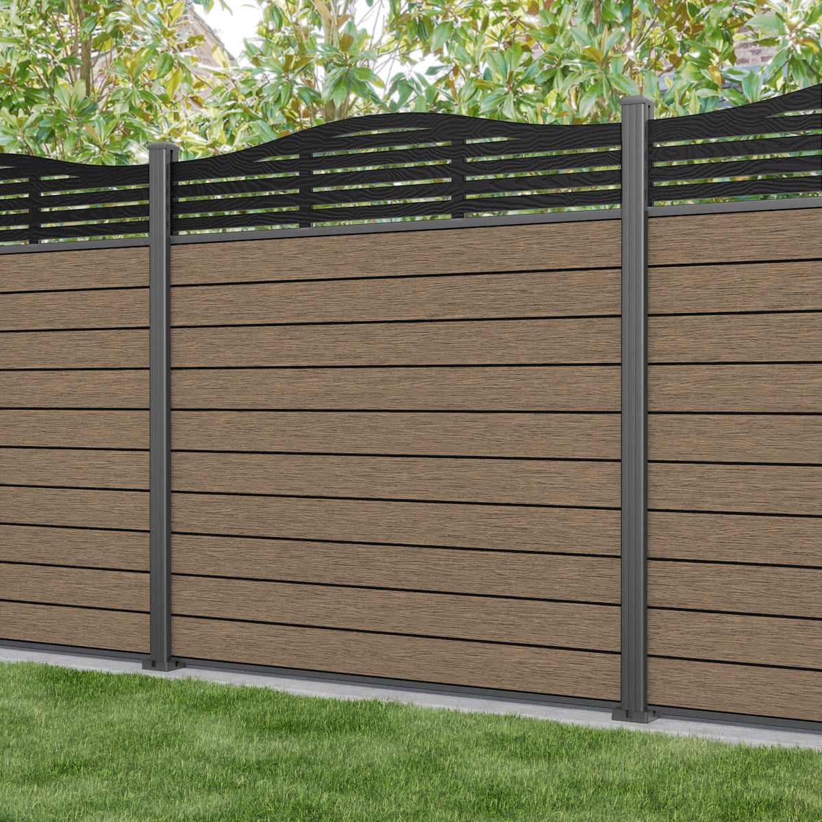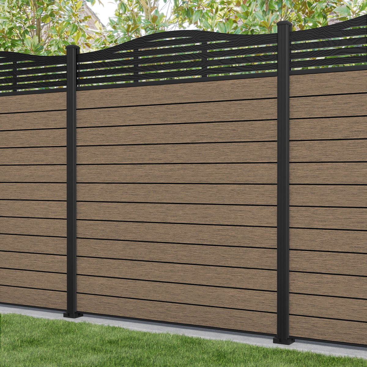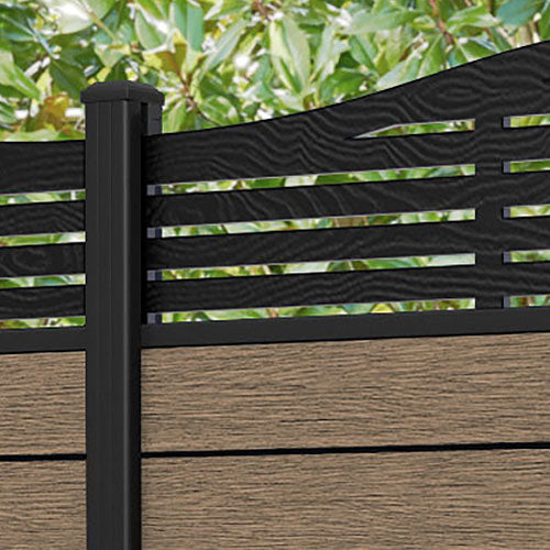 Fusion Aspen Curved Top Fence Panel Teak - with our aluminium posts