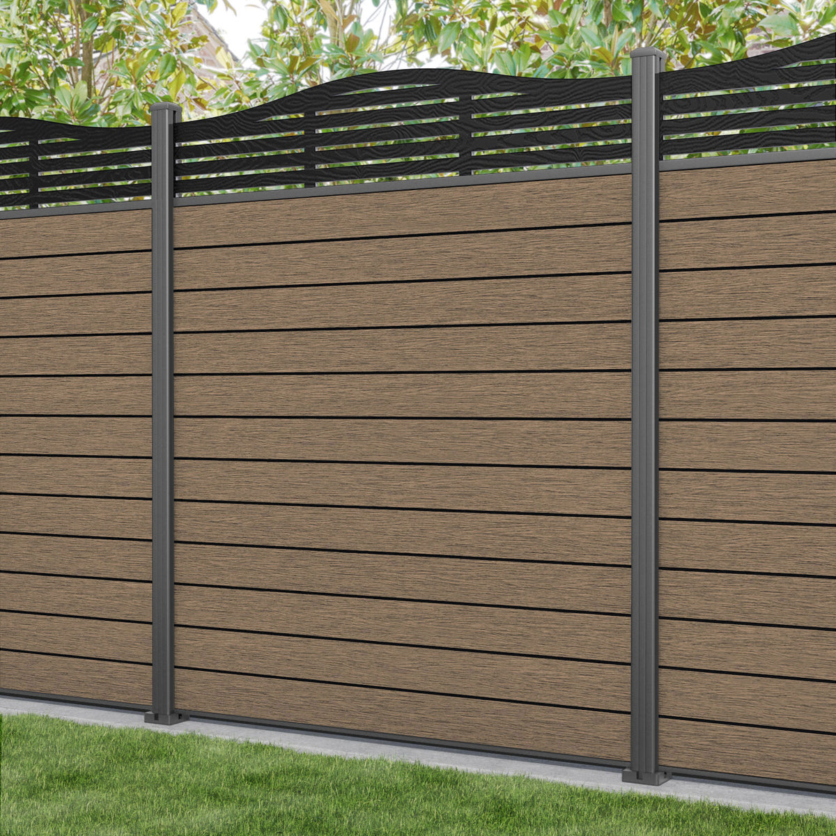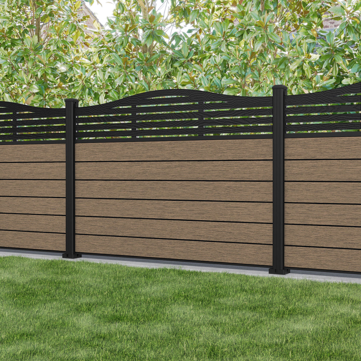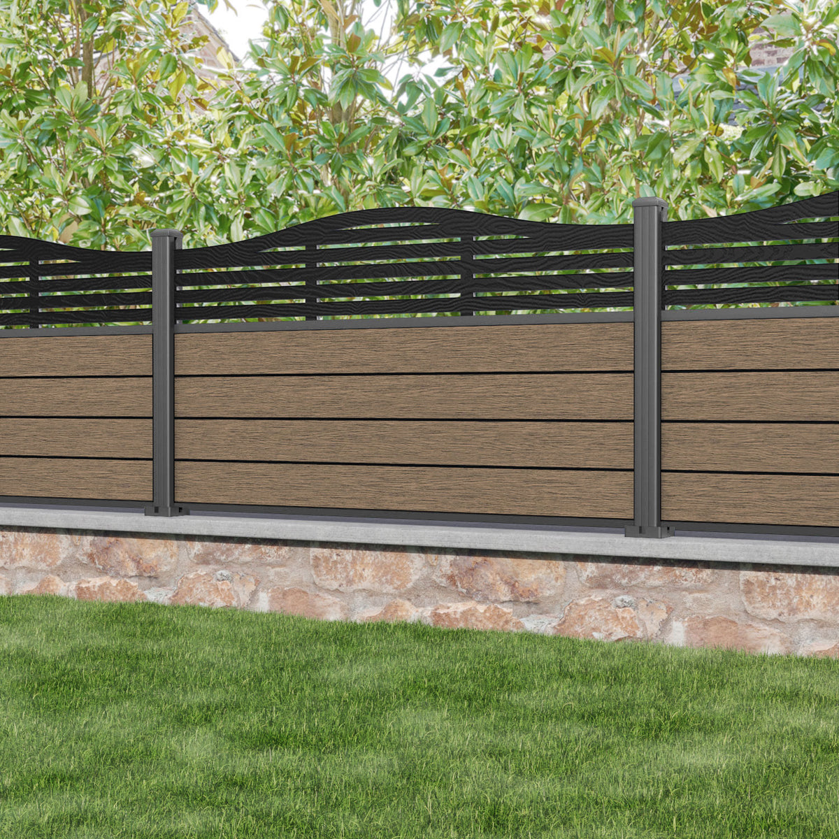 Fusion Aspen Curved Top Fence Panel Teak - with our aluminium posts