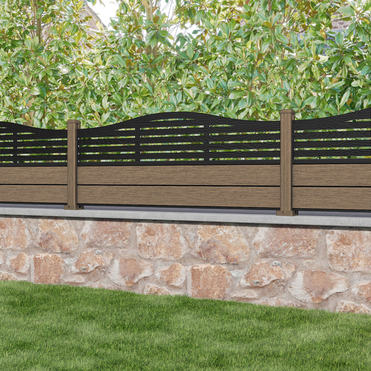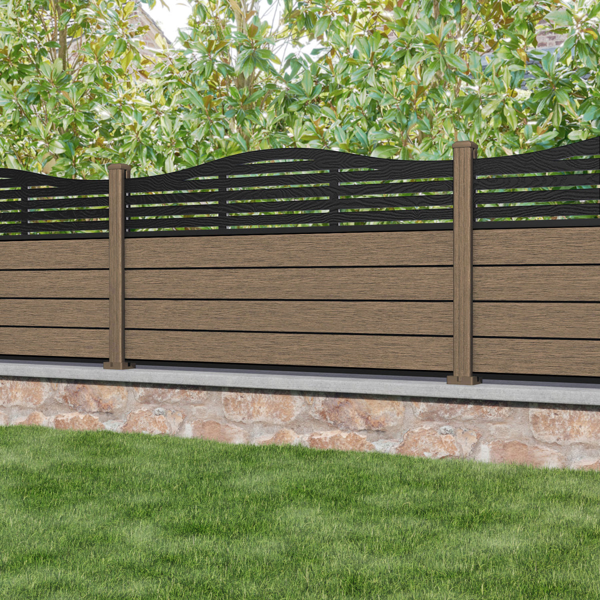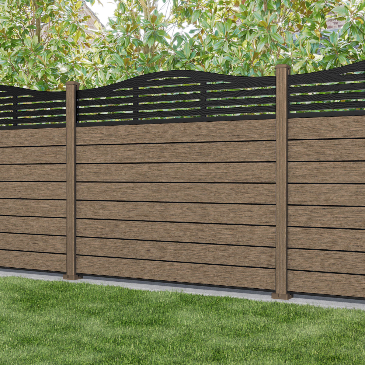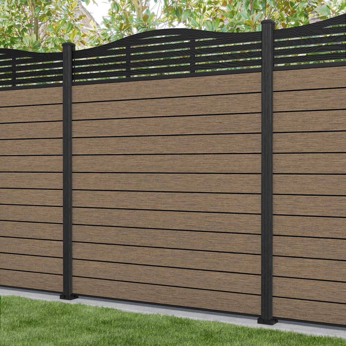 Fusion Aspen Curved Top Fence Panel Teak - with our composite posts