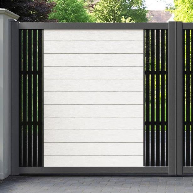 Fusion Aspen Straight Top Driveway Gate Light Stone - Middle & End Screen