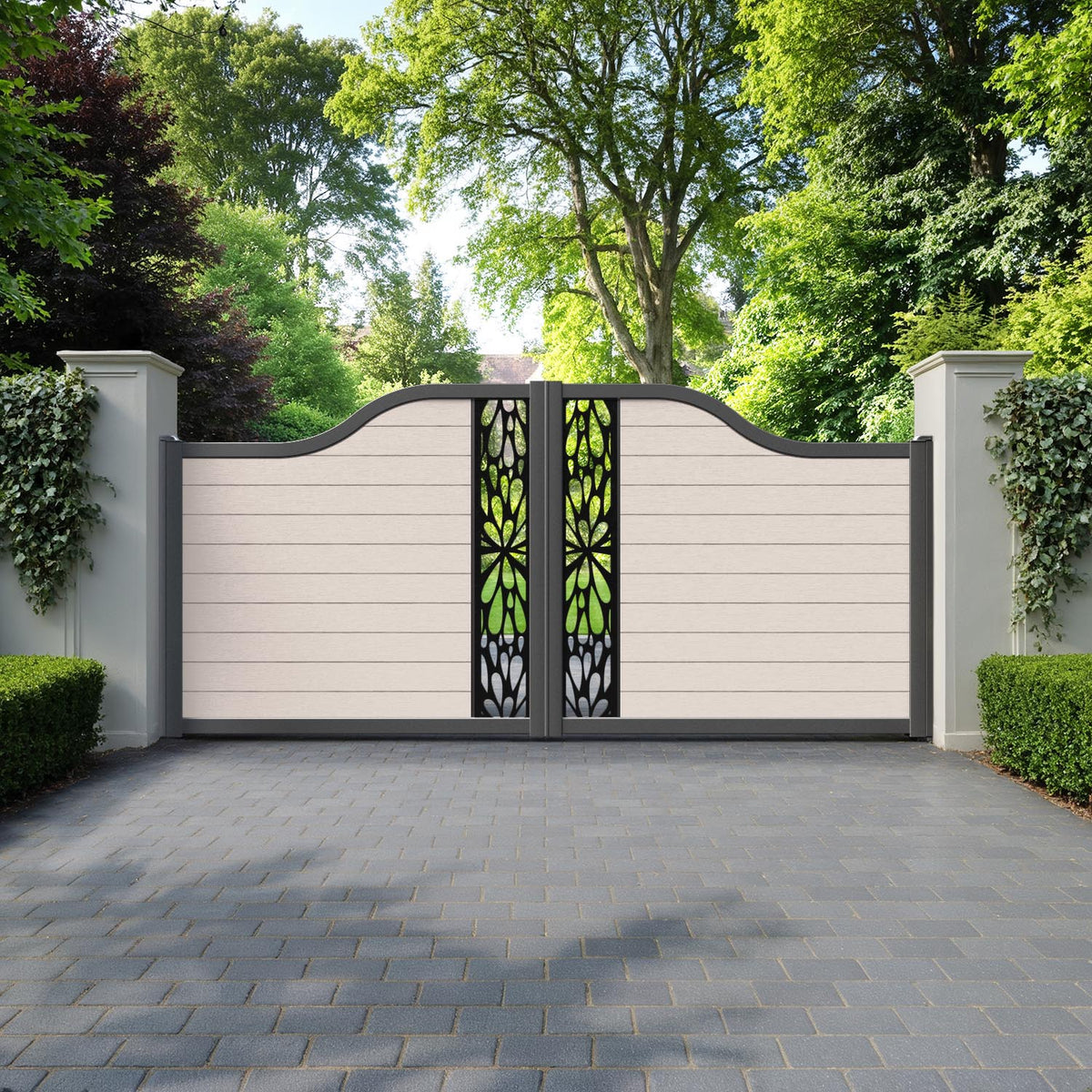 Fusion Blossom Curved Top Driveway Gate Mid Stone - Middle Screen