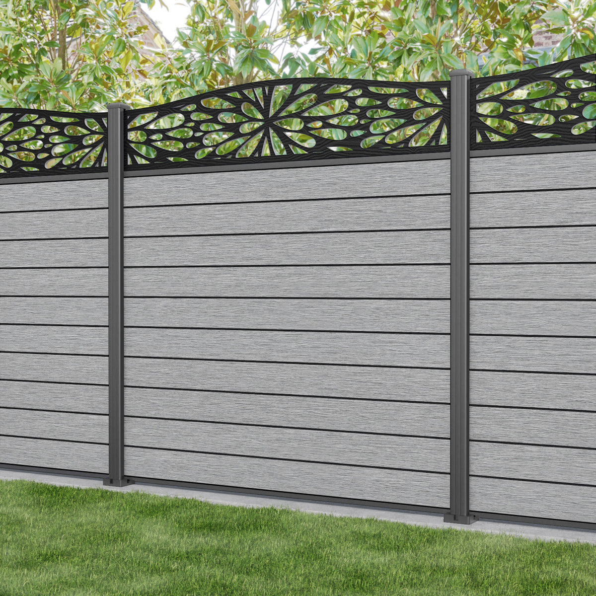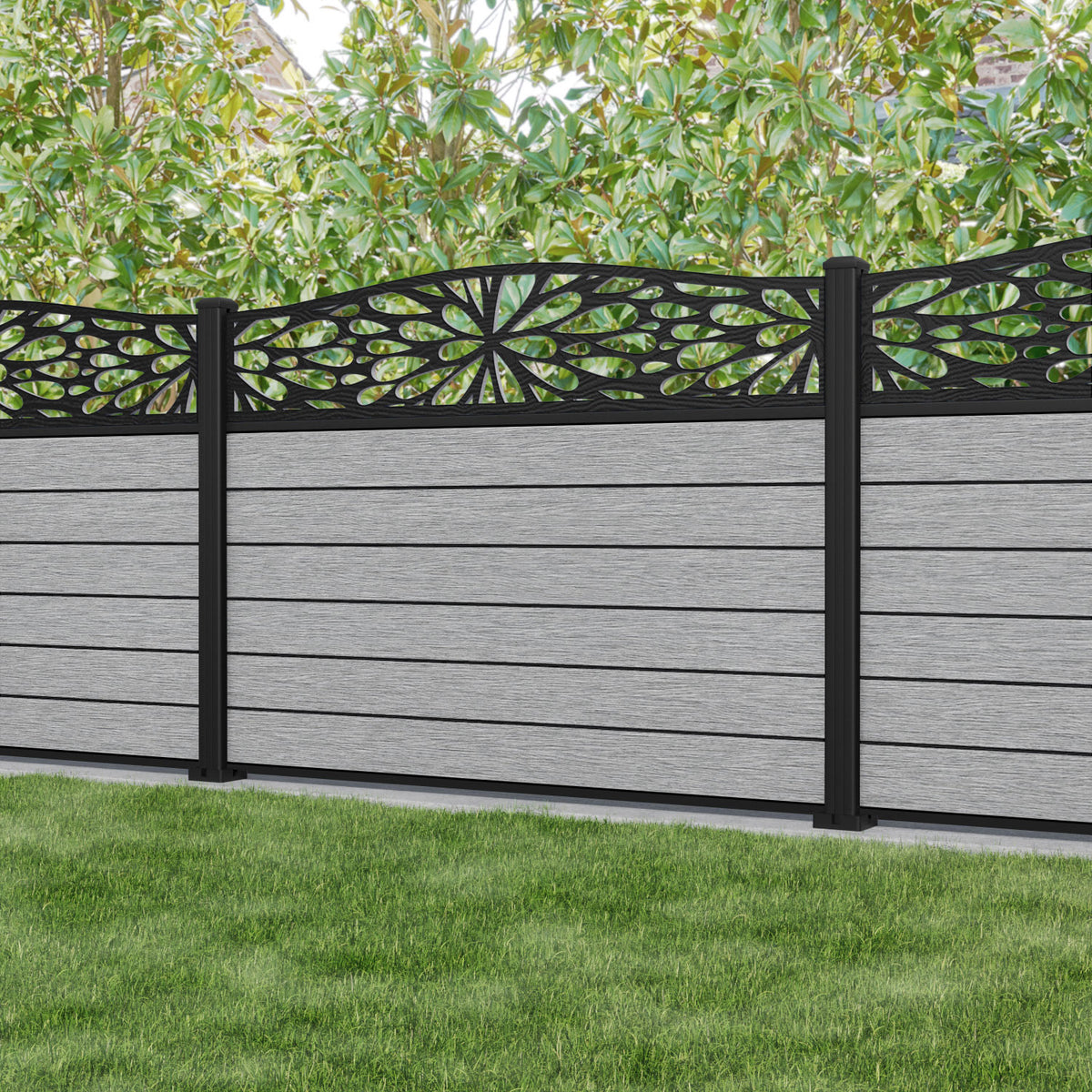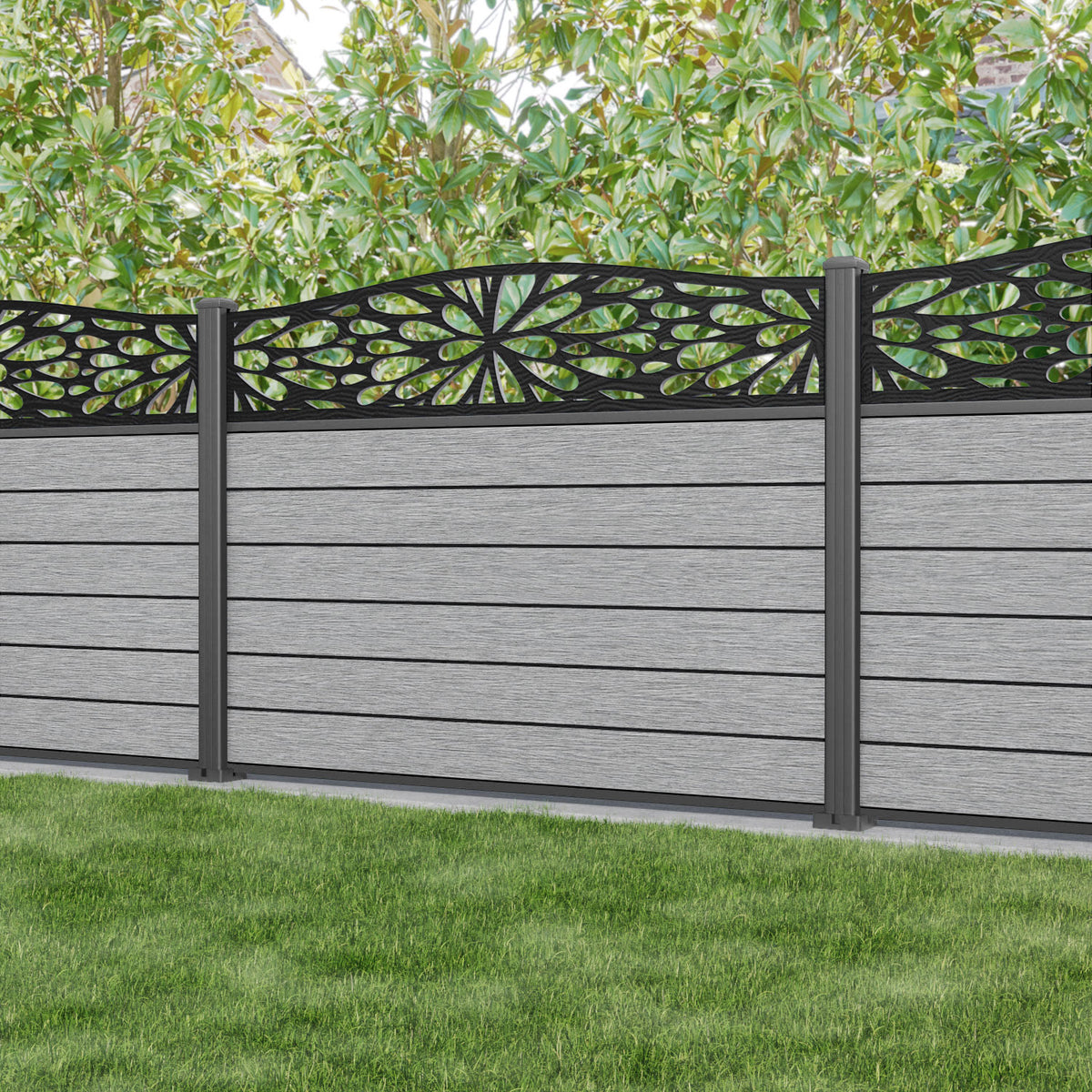 Fusion Blossom Curved Top Fence Panel Light Grey - with our aluminium posts
