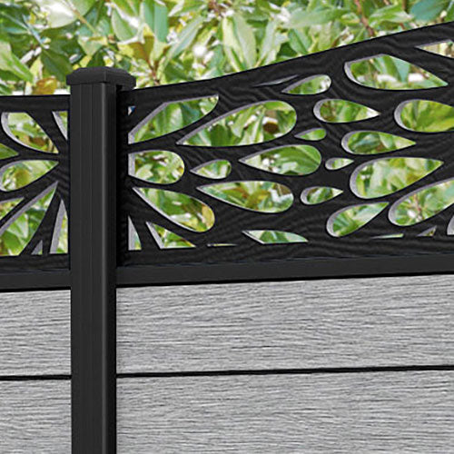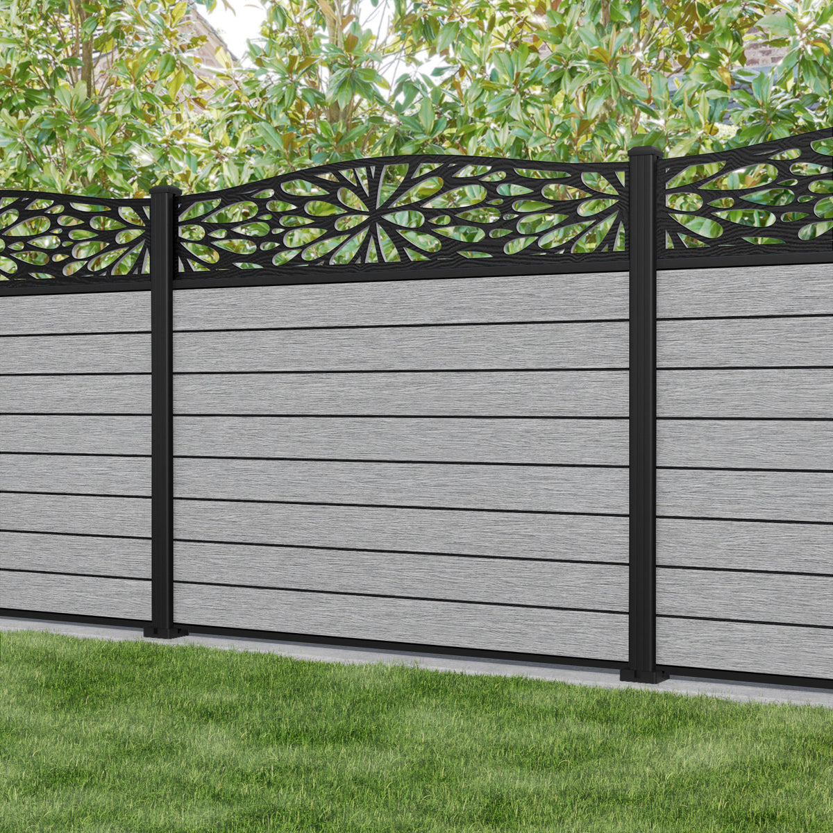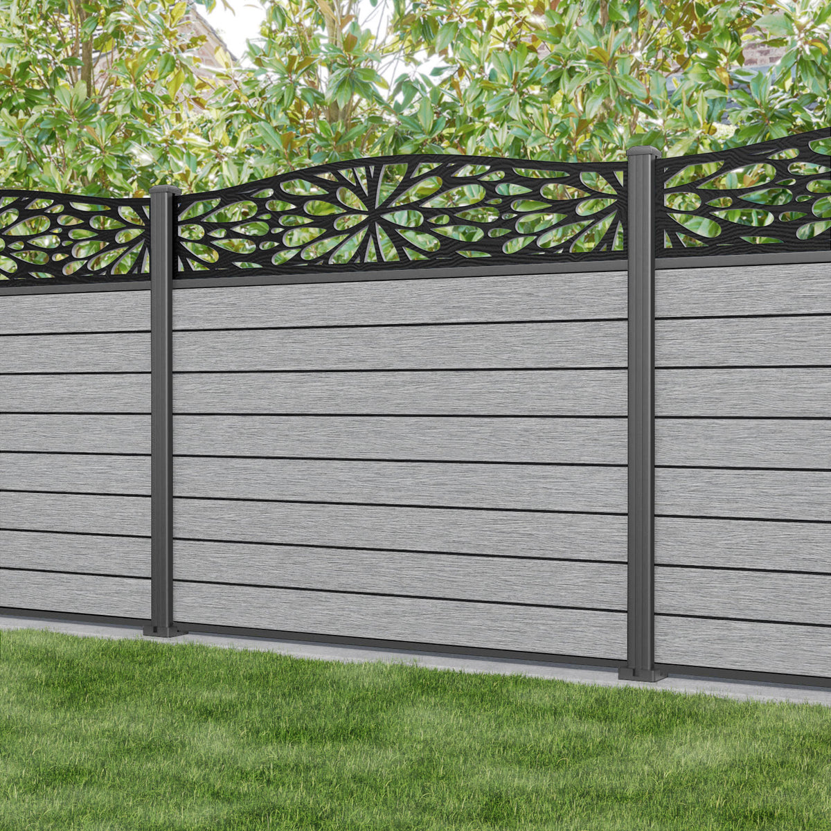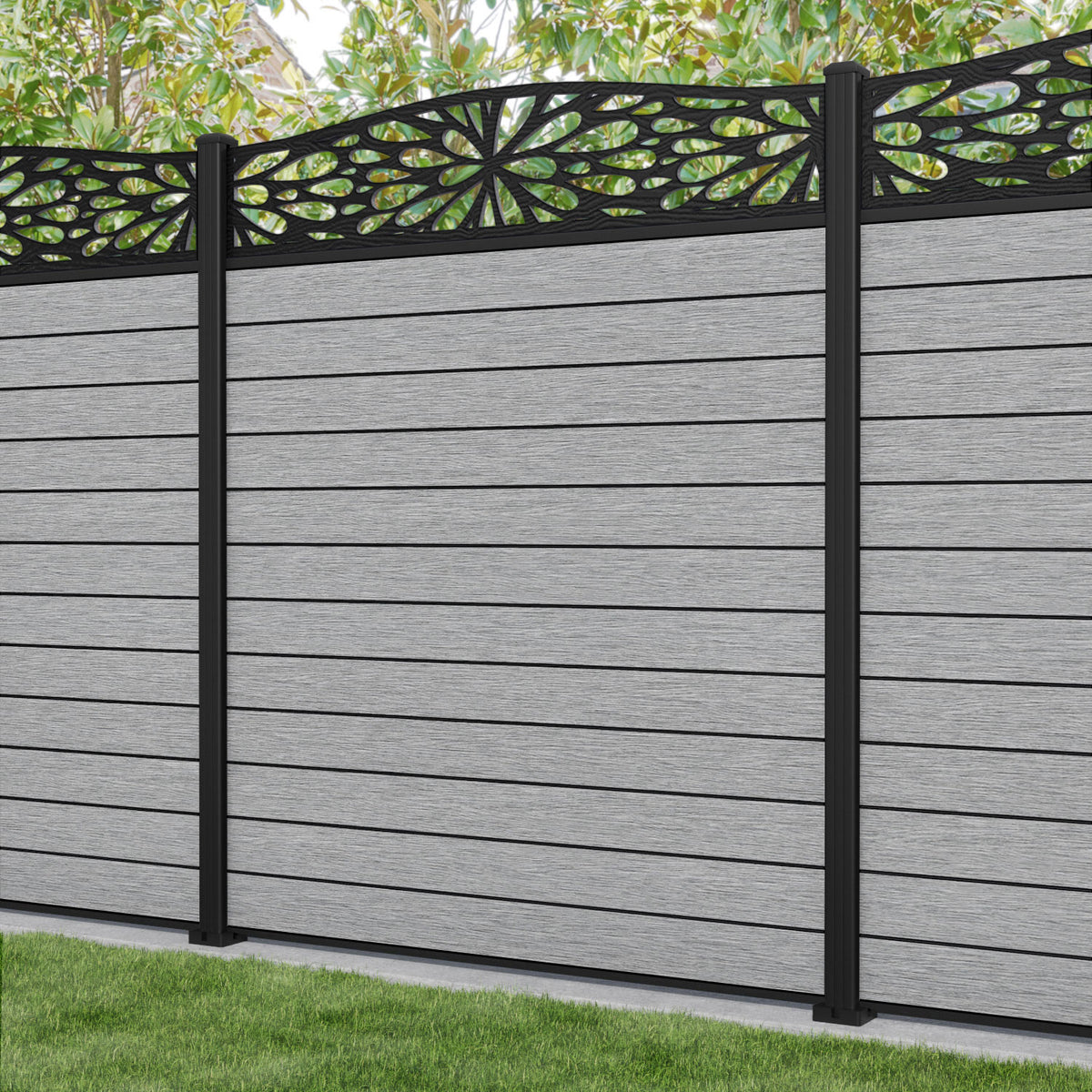 Fusion Blossom Curved Top Fence Panel Light Grey - with our aluminium posts
