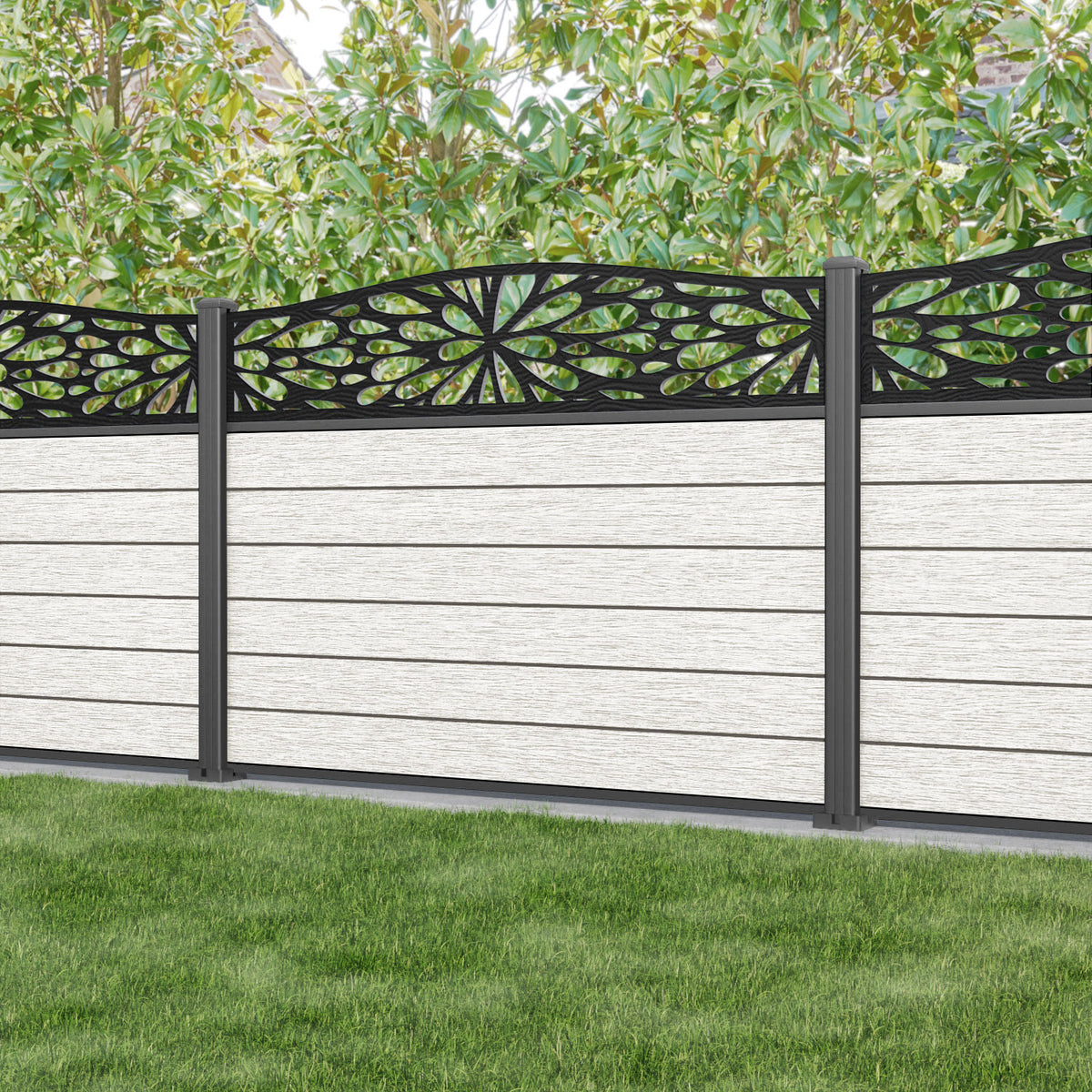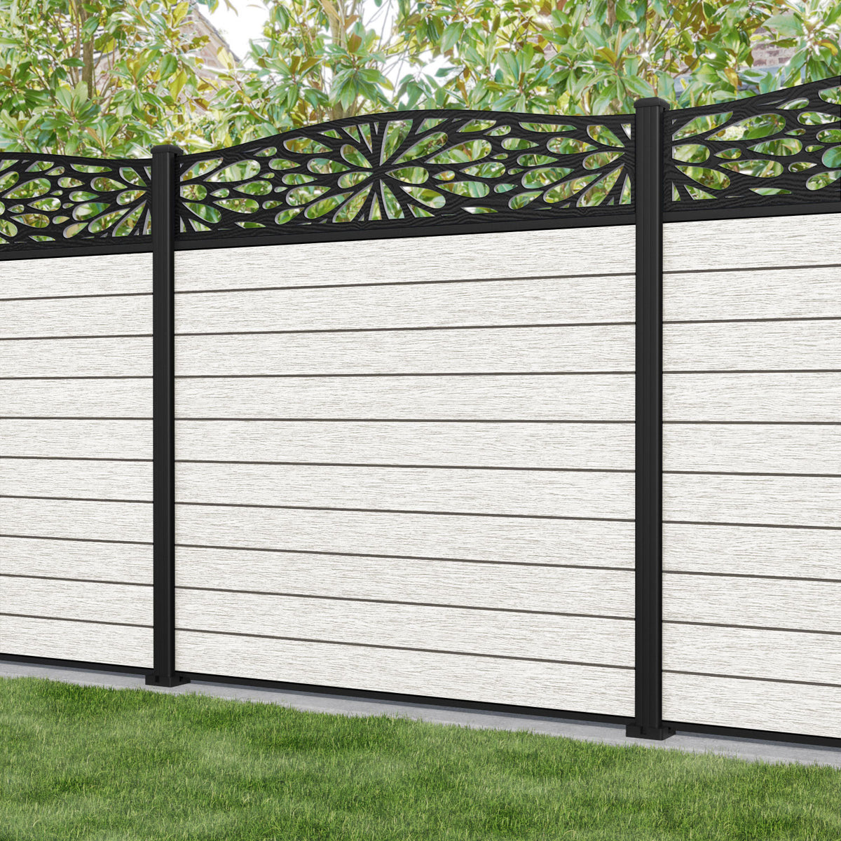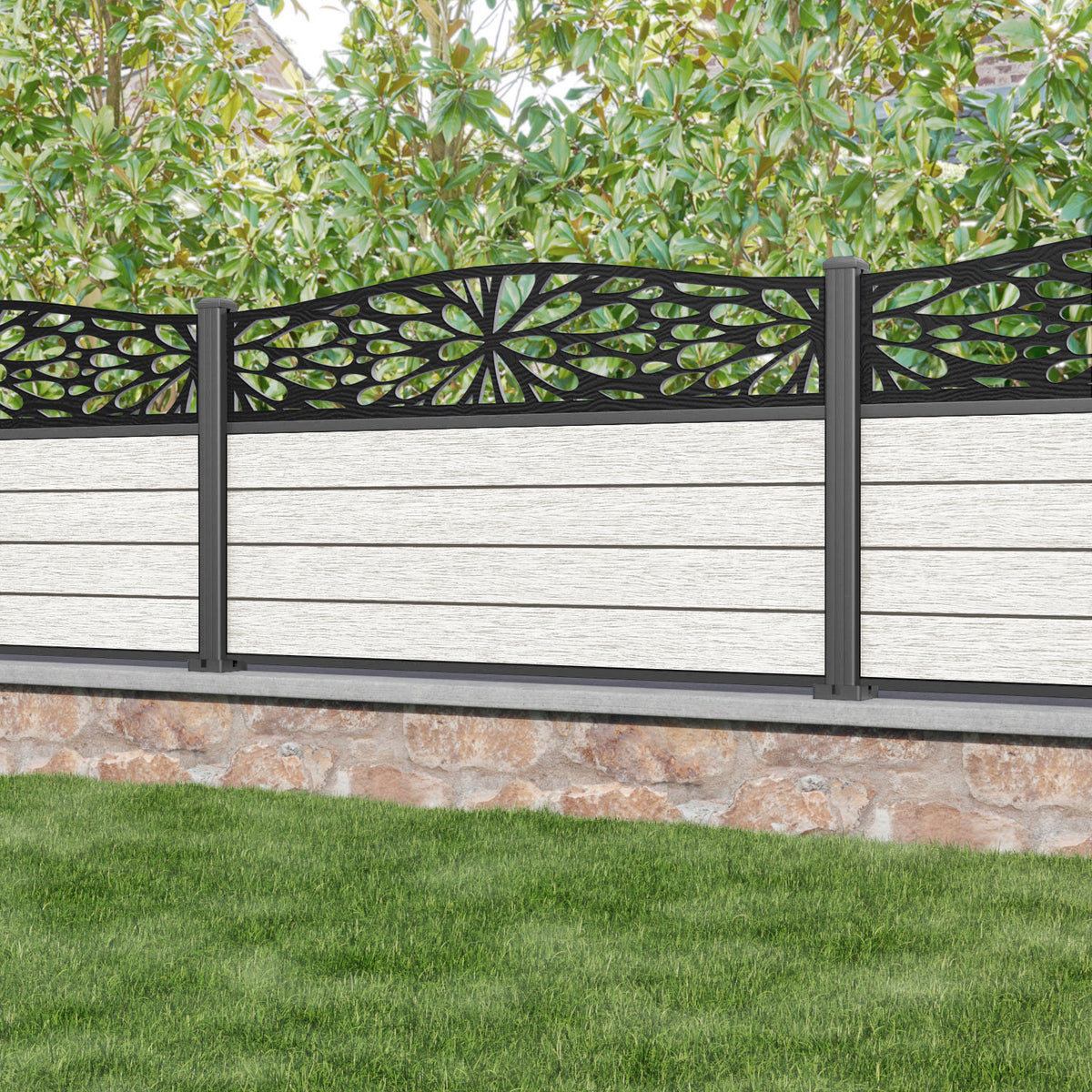Fusion Blossom Curved Top Fence Panel Light Stone - with our aluminium posts