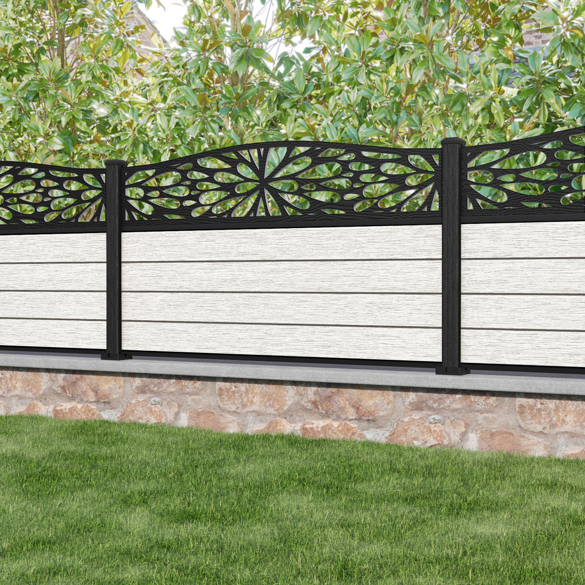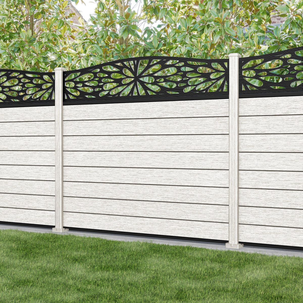 Fusion Blossom Curved Top Fence Panel Light Stone - with our composite posts
