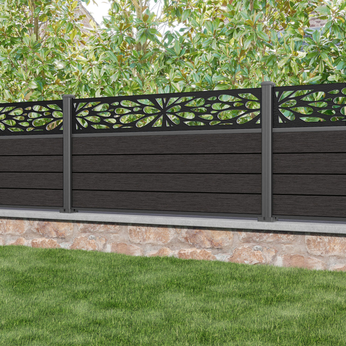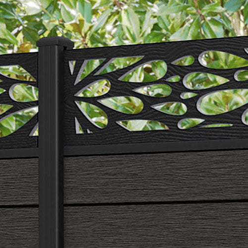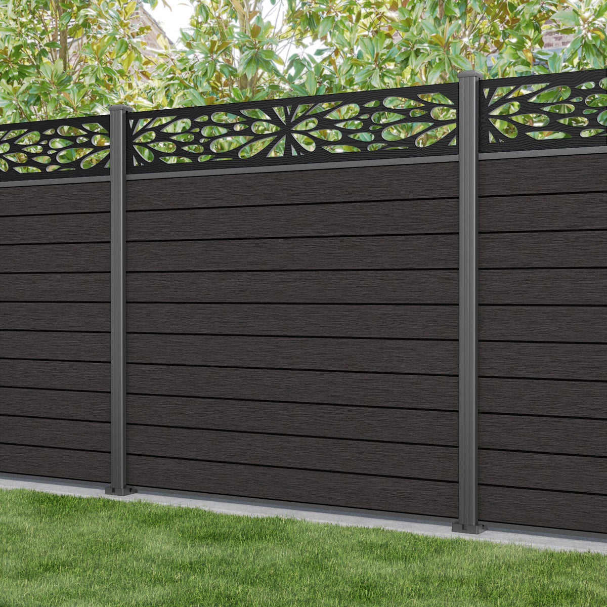 Fusion Blossom Fence Panel Dark Oak - with our aluminium posts