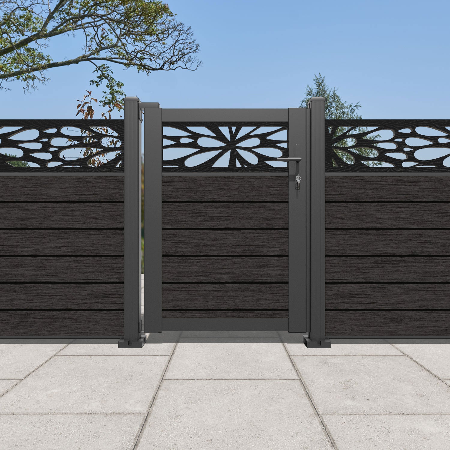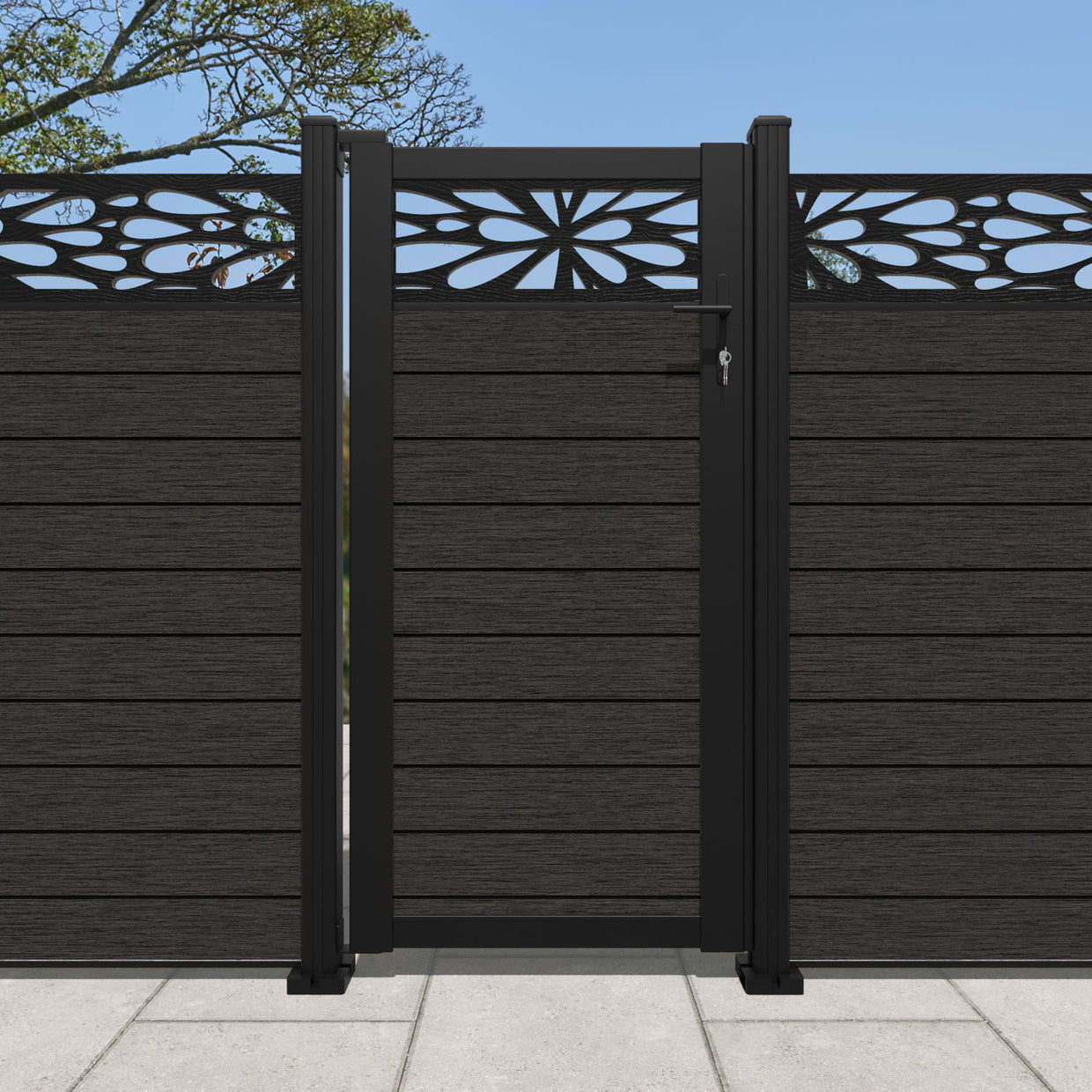 Pair your gate with our eco-friendly composite or aluminium slats for a seamless match to our fencing collections, ensuring a stylish and cohesive look.