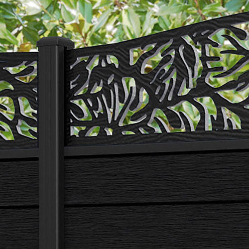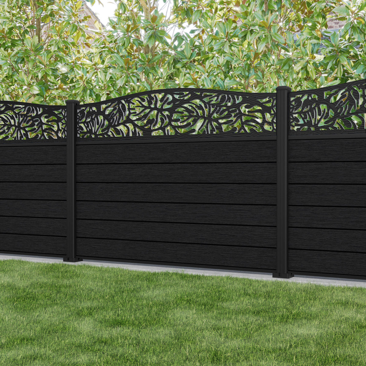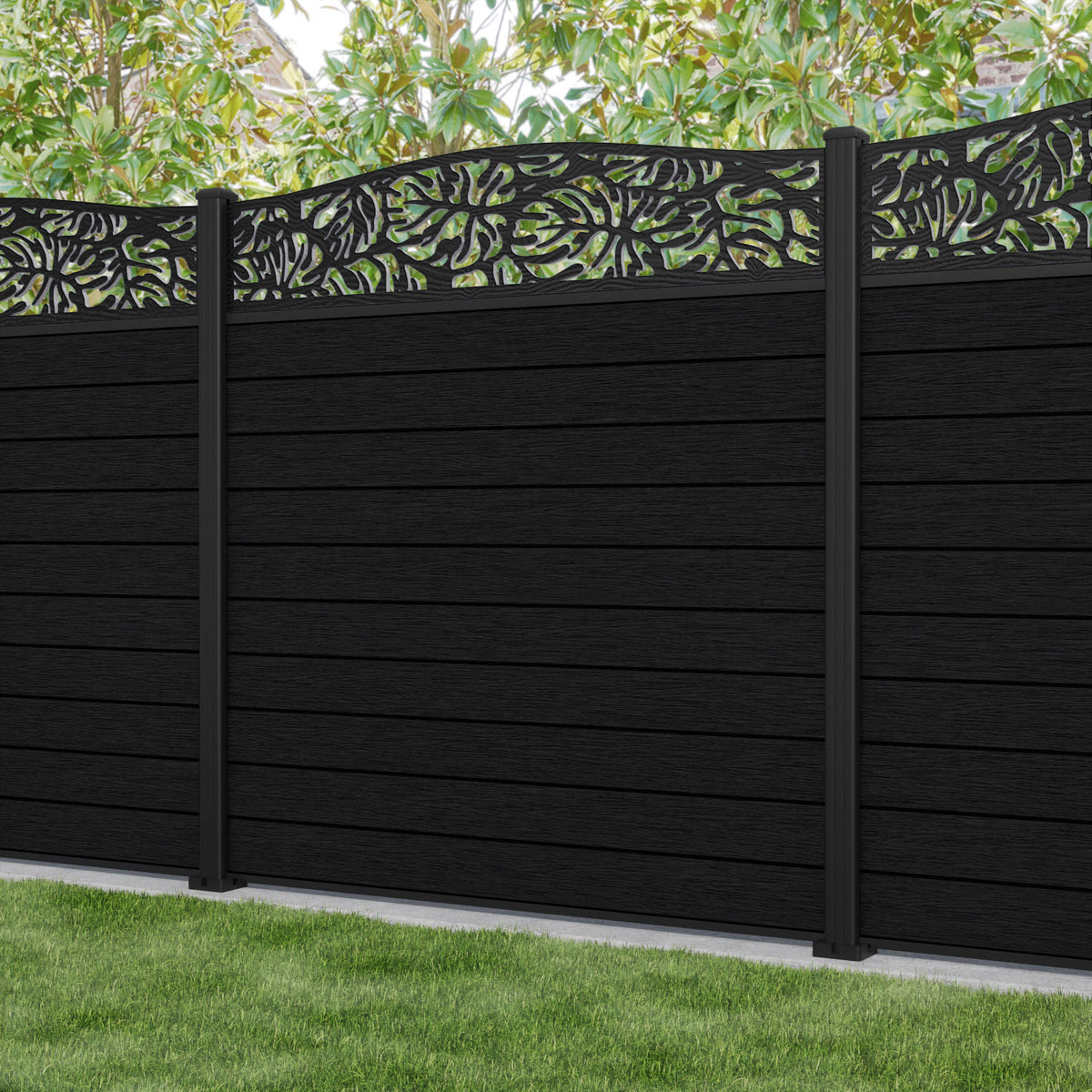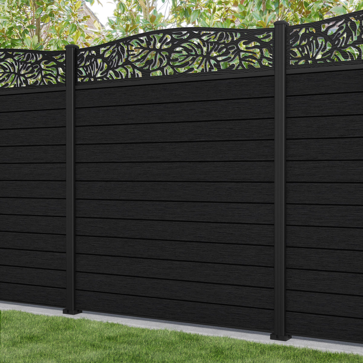 Fusion Botanic Curved Top Fence Panel Black - with our aluminium posts