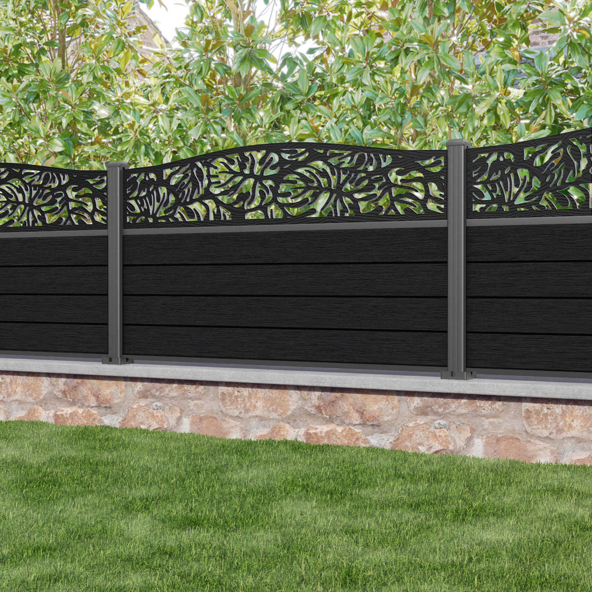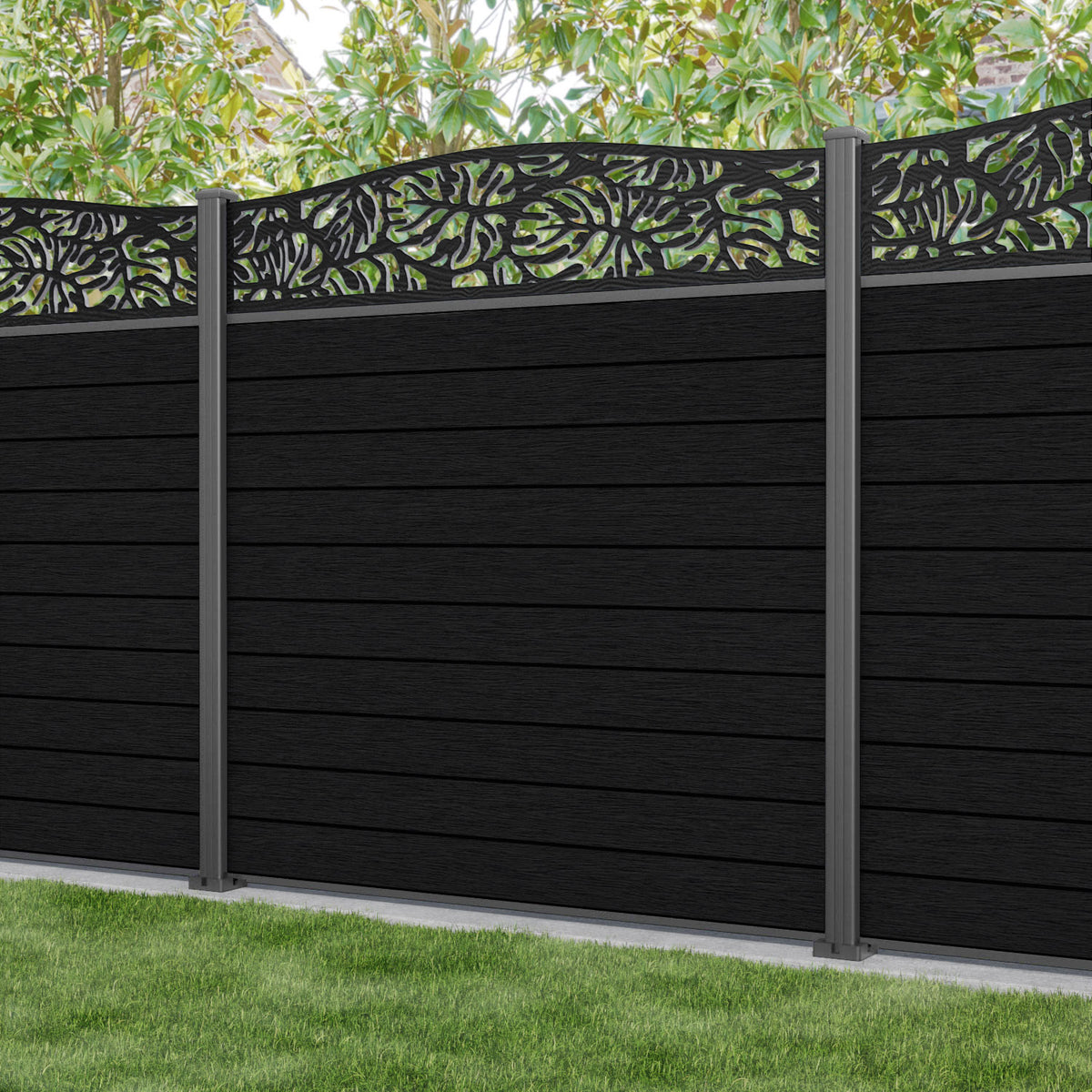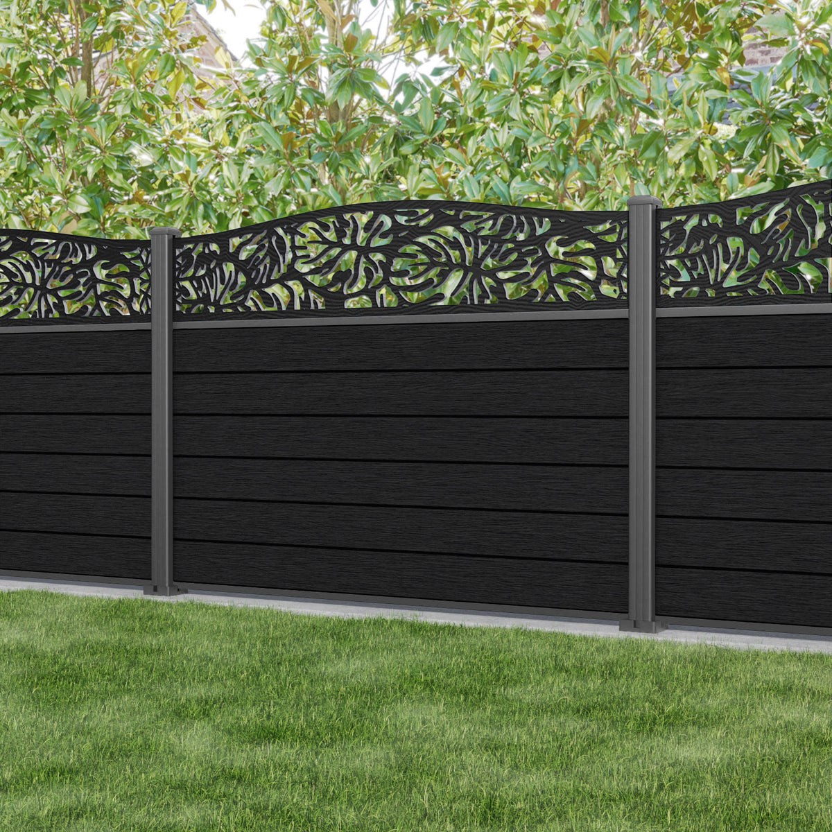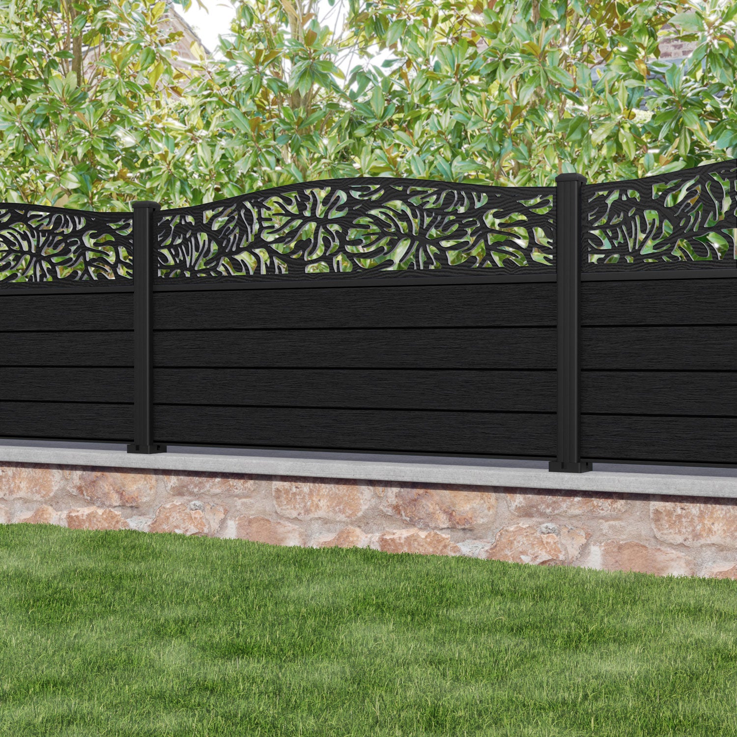 Fusion Botanic Curved Top Fence Panel Black - with our aluminium posts