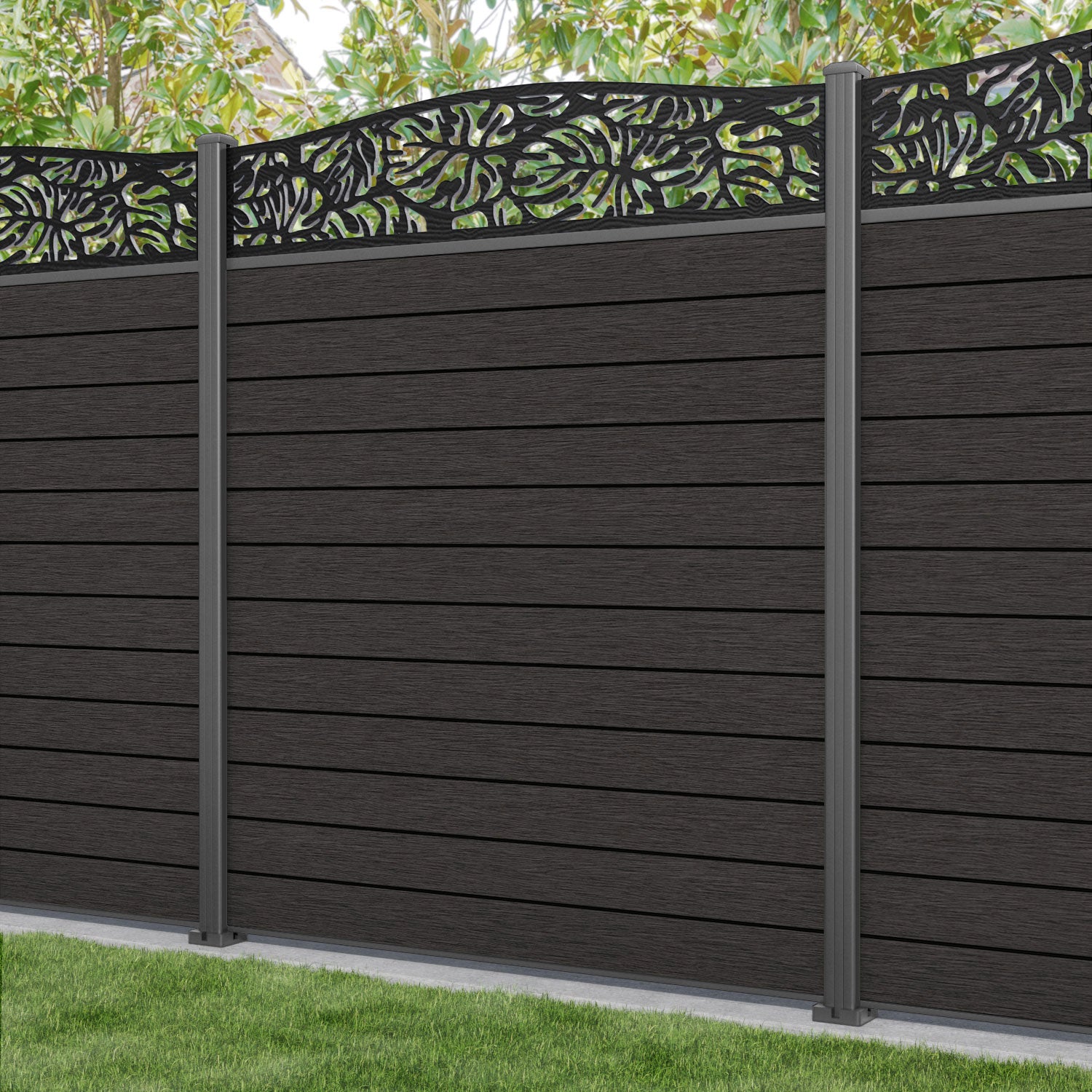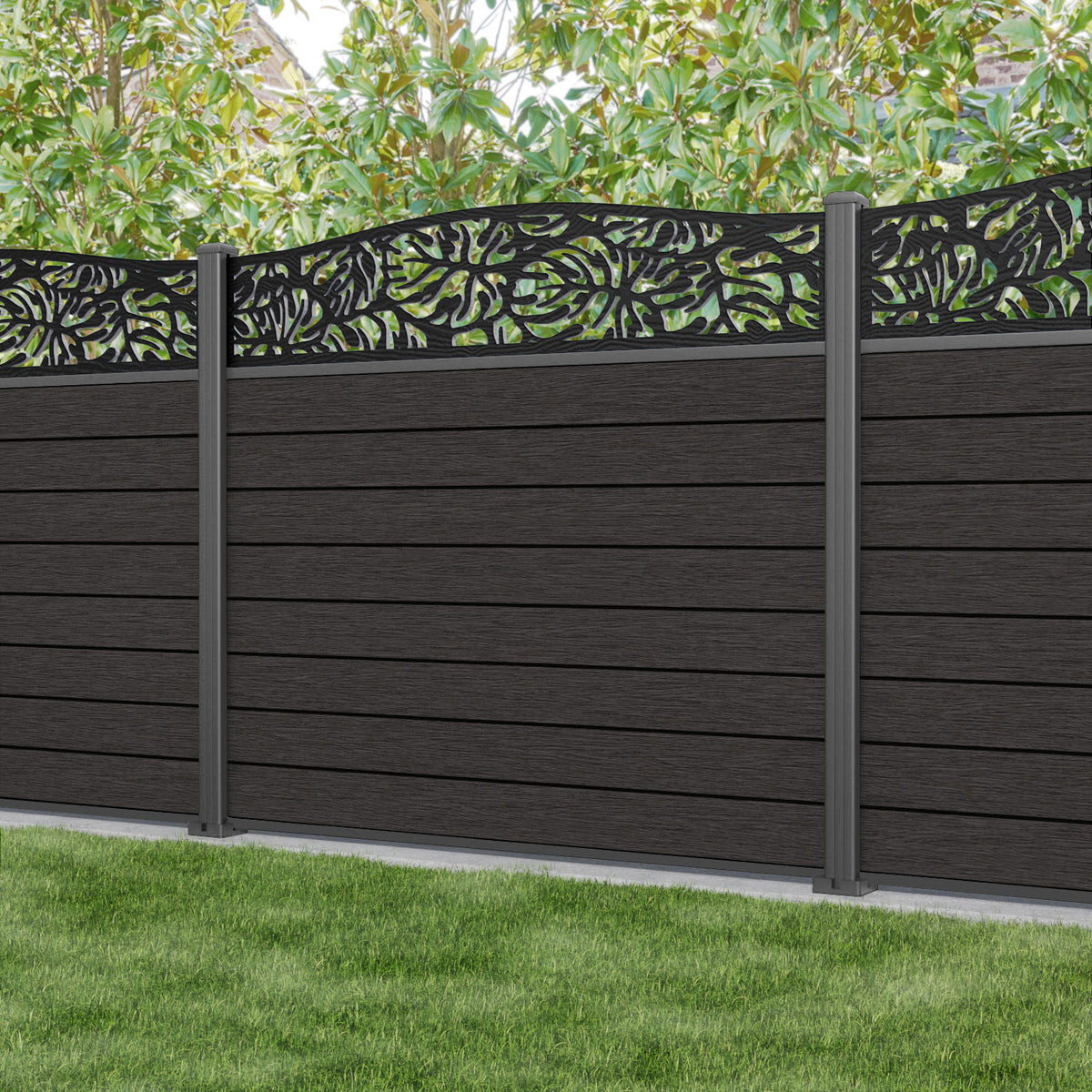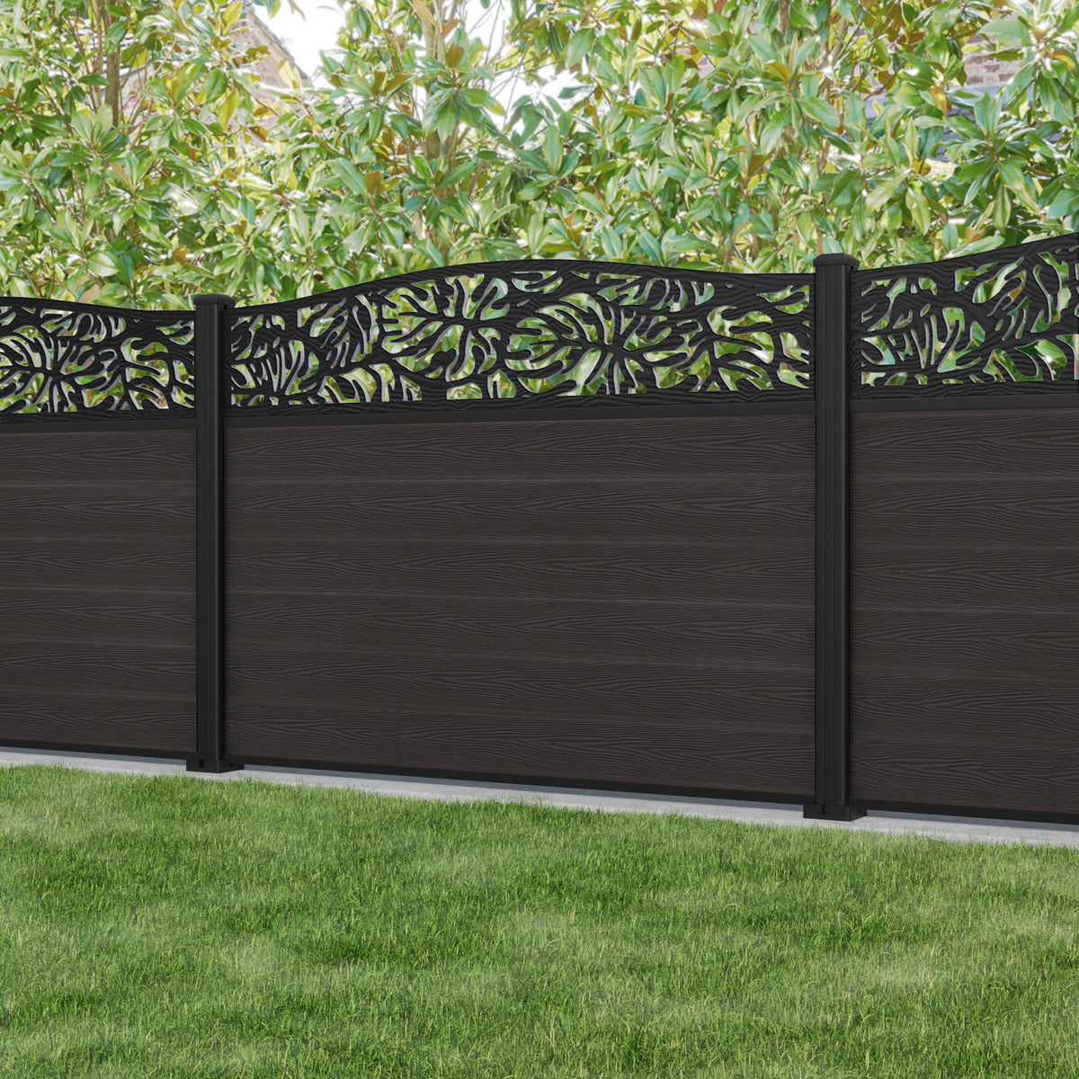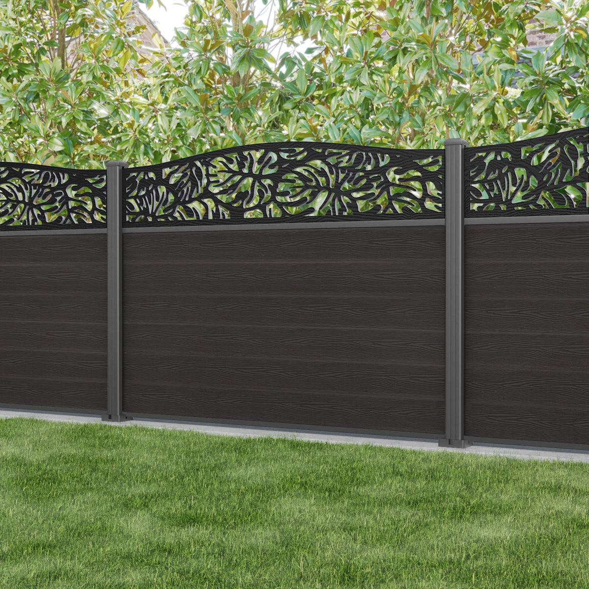 Fusion Botanic Curved Top Fence Panel Dark Oak - with our aluminium posts
