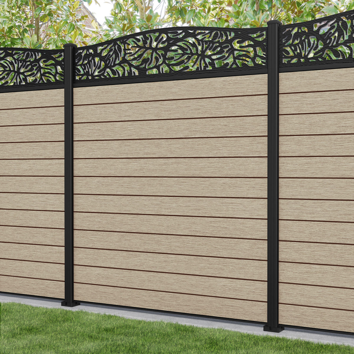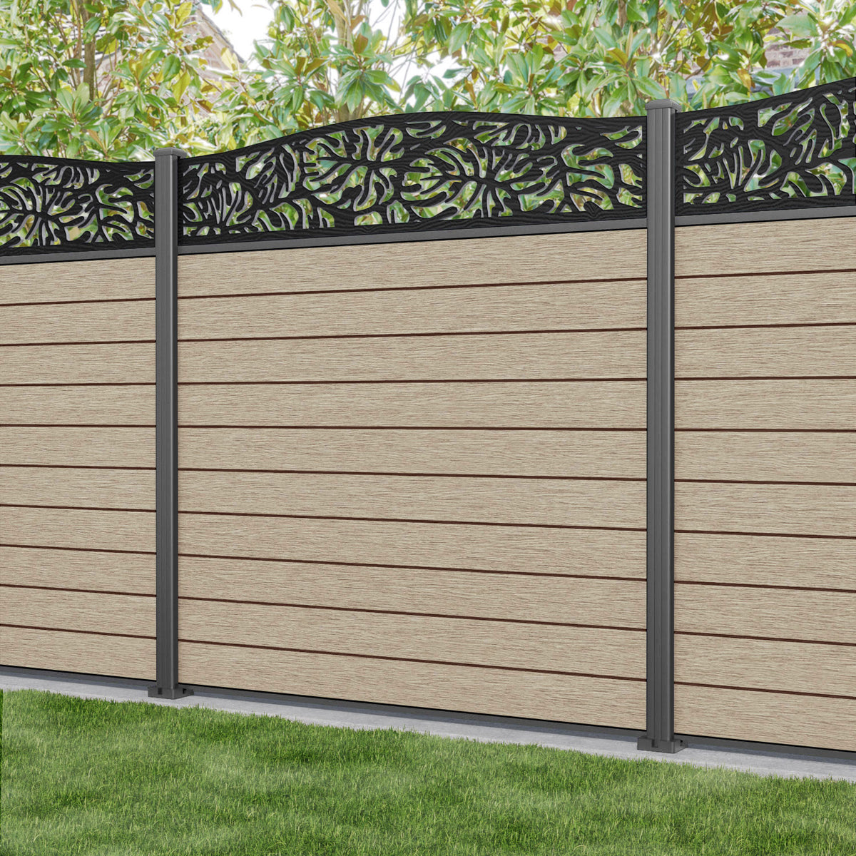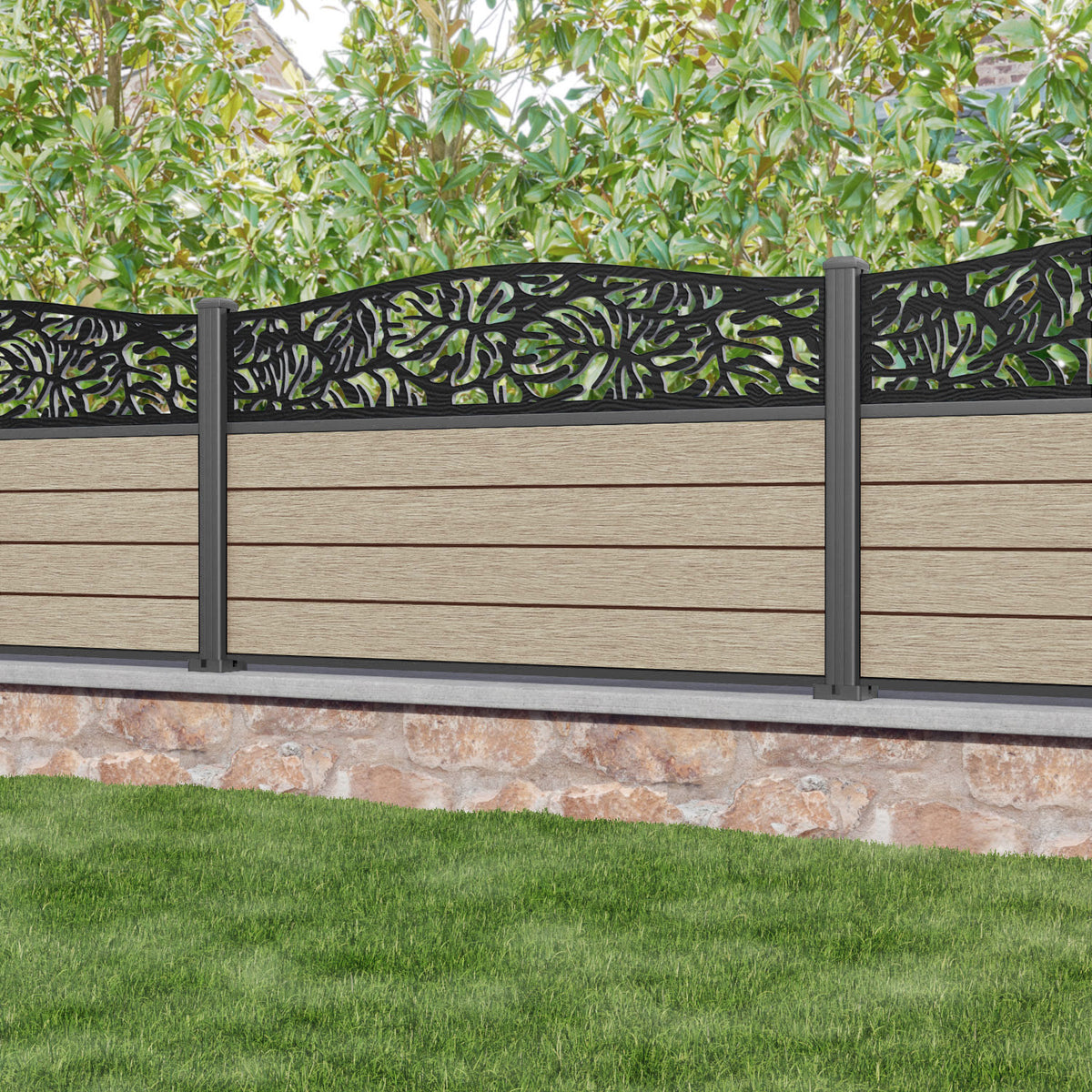 Fusion Botanic Curved Top Fence Panel Light Oak - with our aluminium posts
