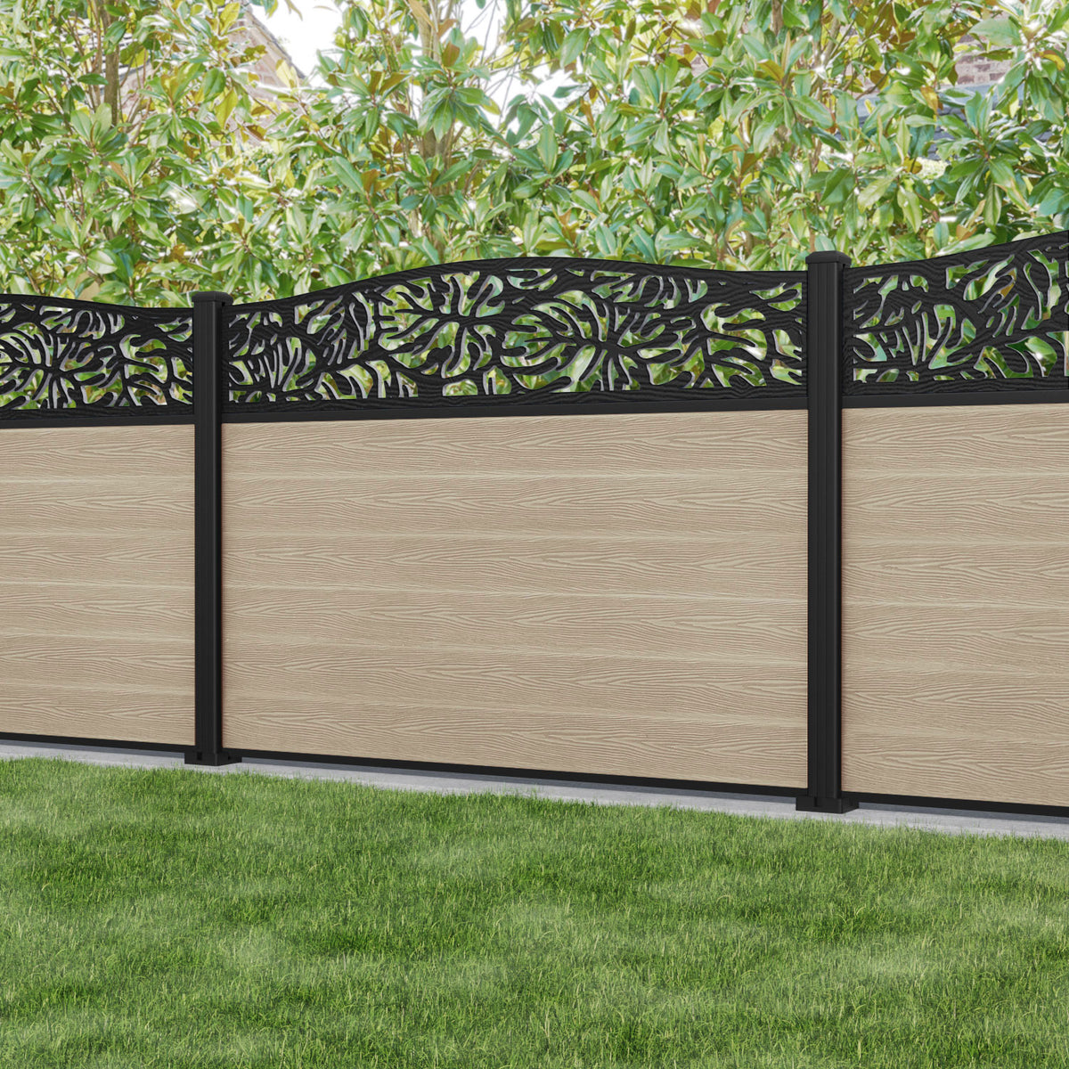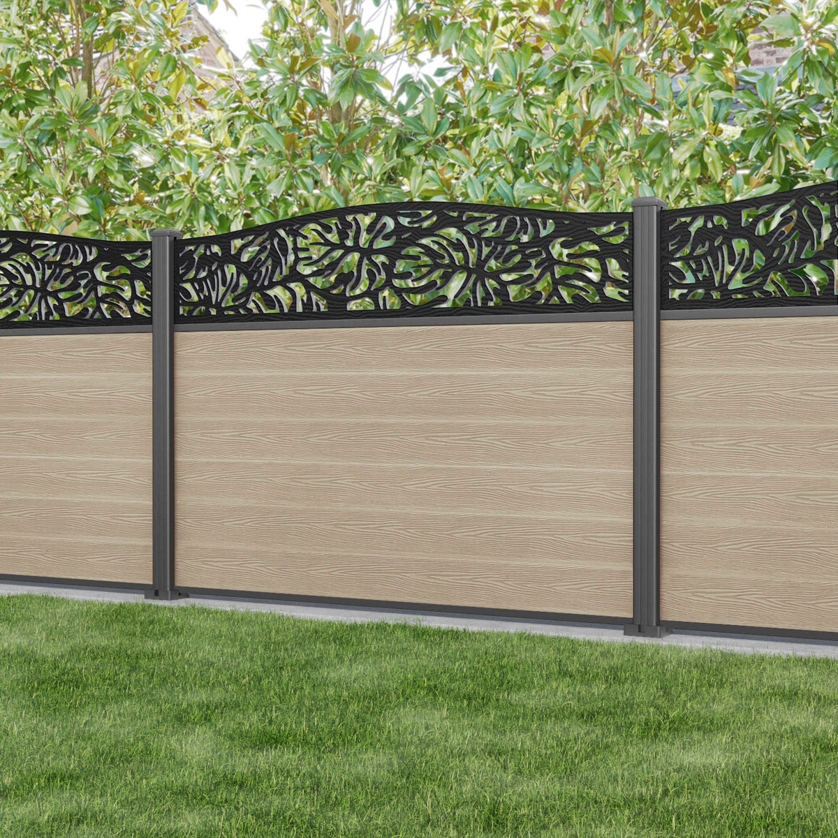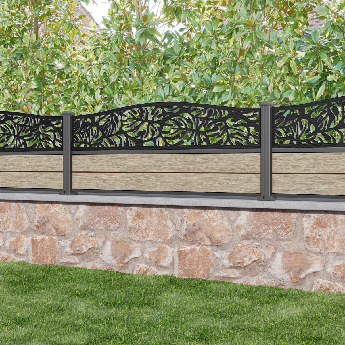 Fusion Botanic Curved Top Fence Panel Light Oak - with our aluminium posts