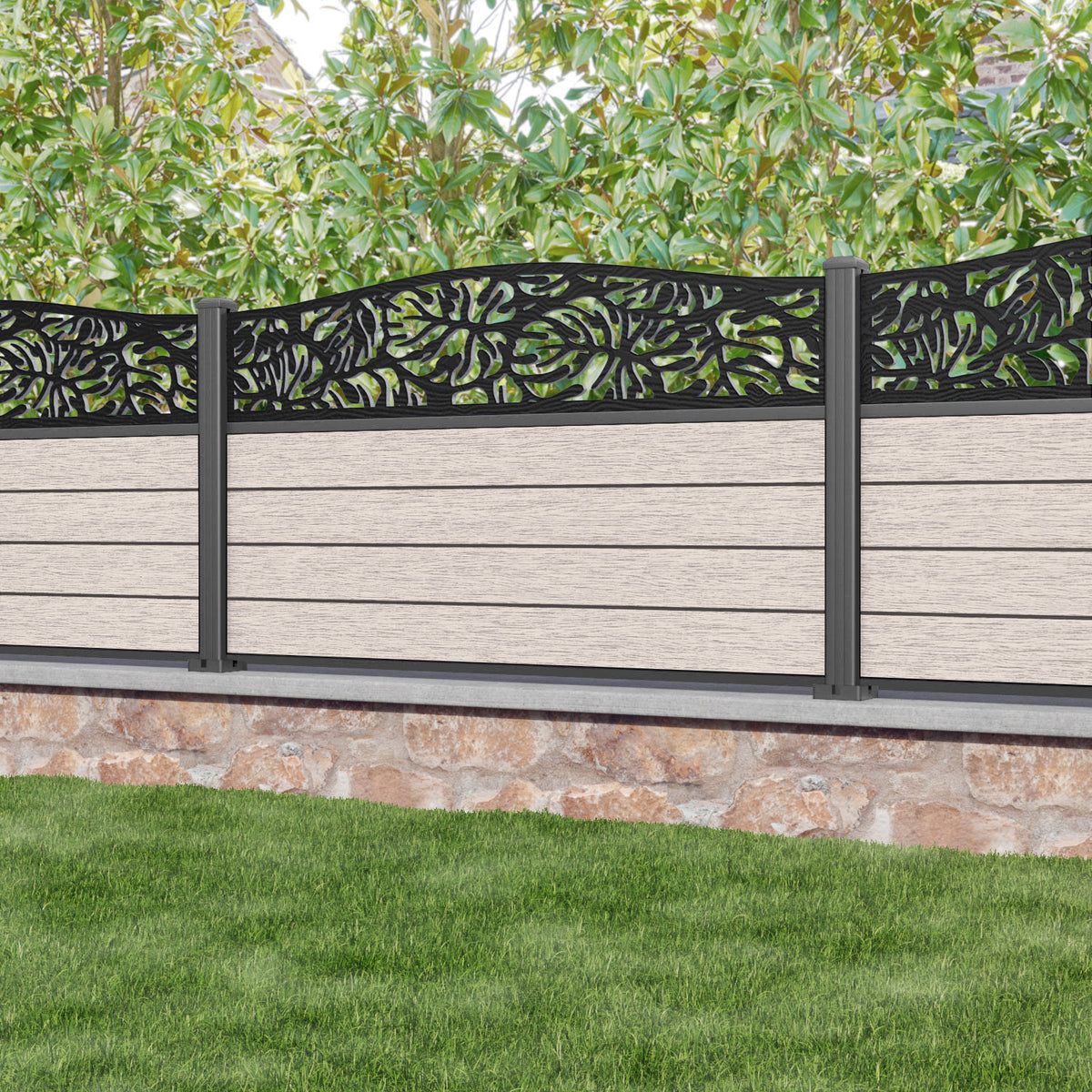 Fusion Botanic Curved Top Fence Panel Mid Stone - with our aluminium posts