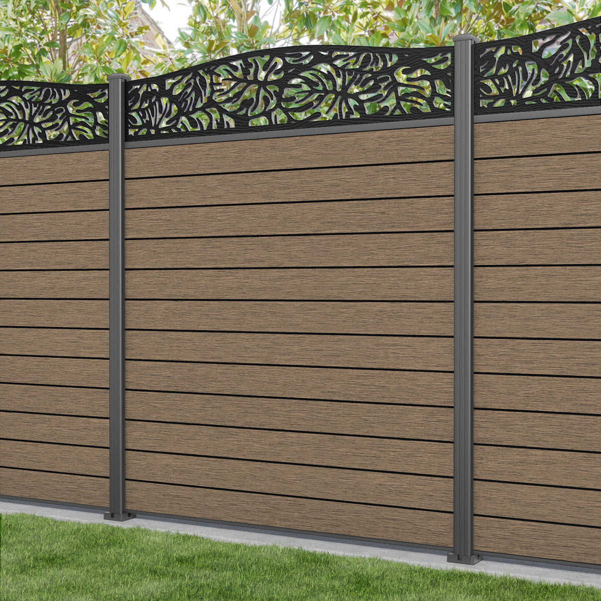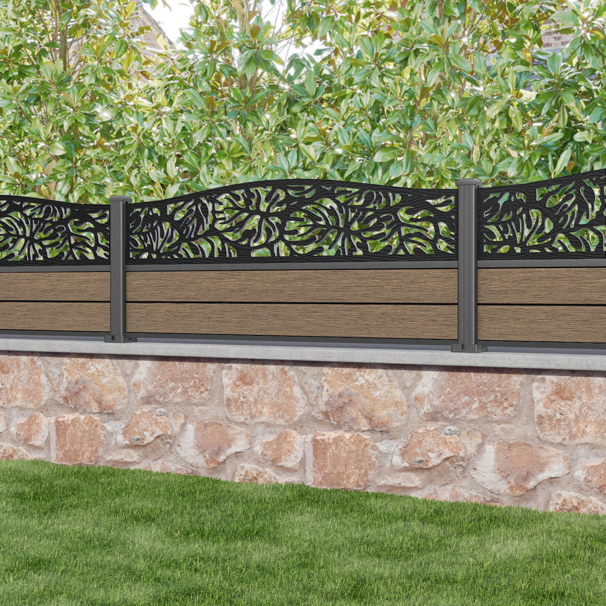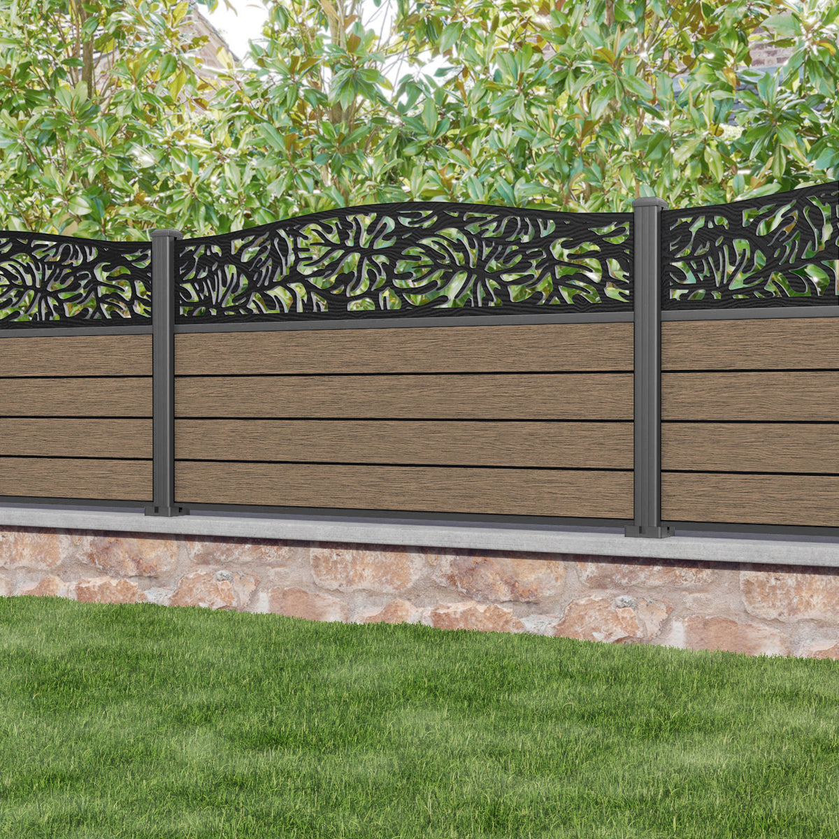 Fusion Botanic Curved Top Fence Panel Teak - with our aluminium posts