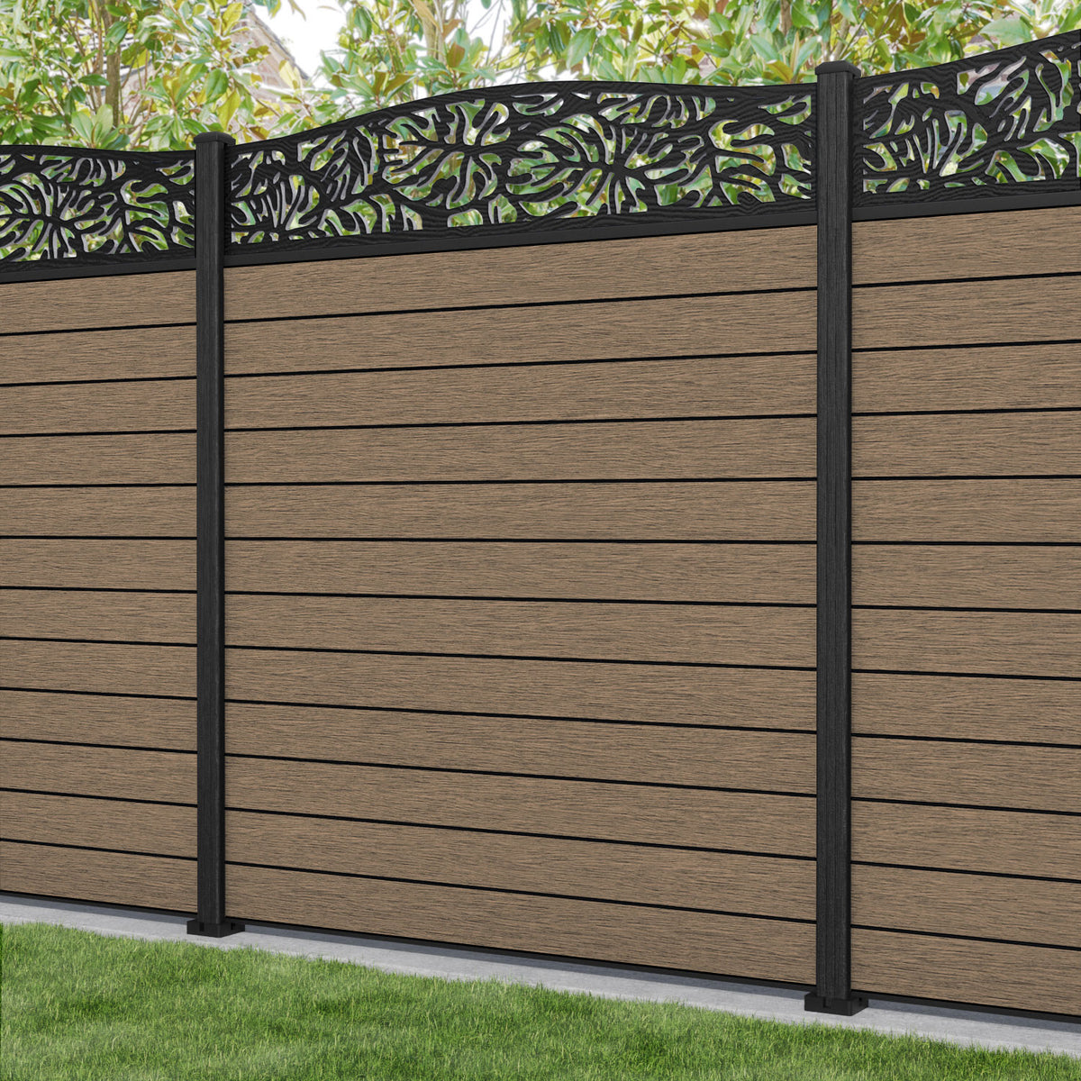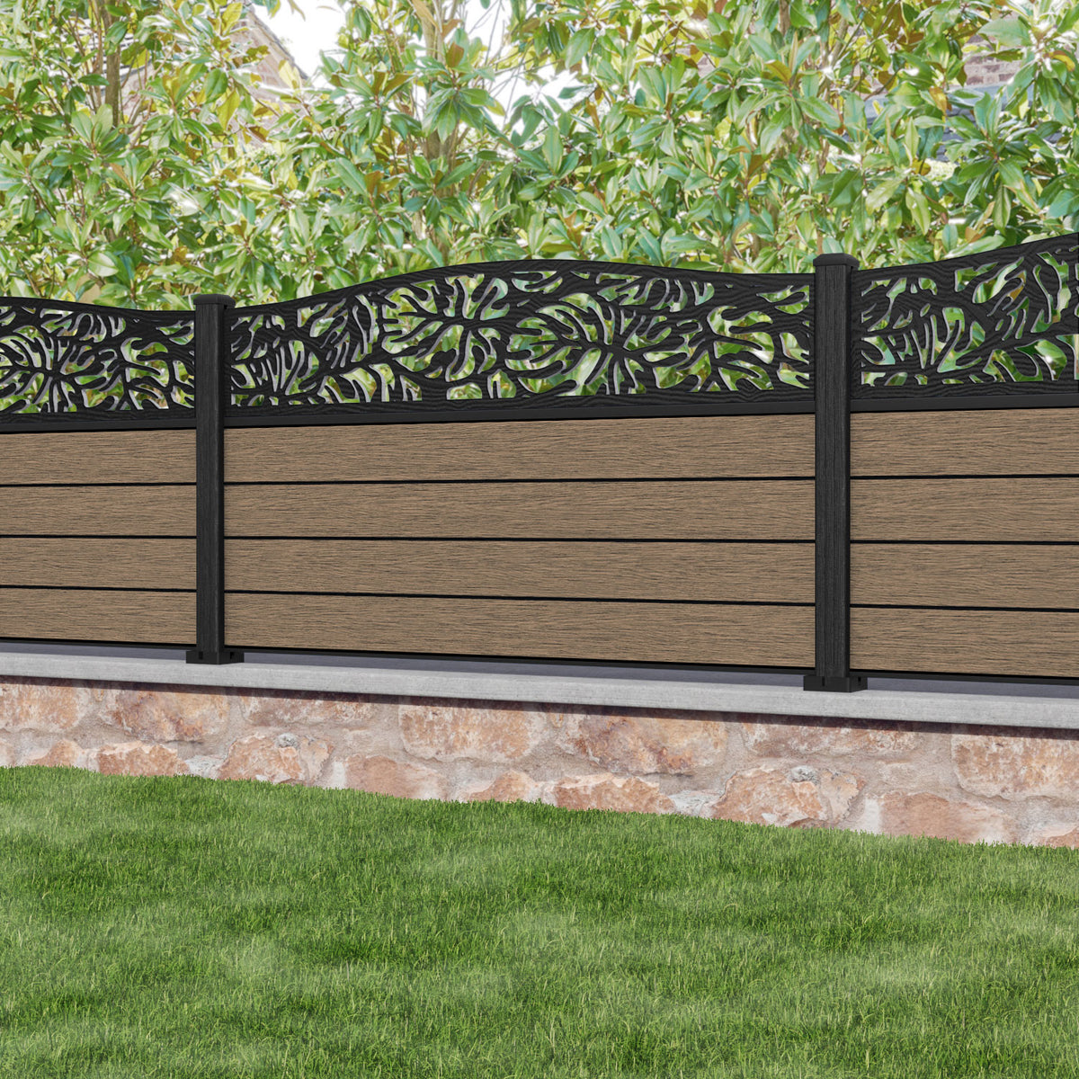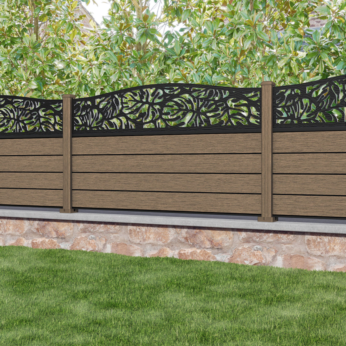 Fusion Botanic Curved Top Fence Panel Teak - with our composite posts