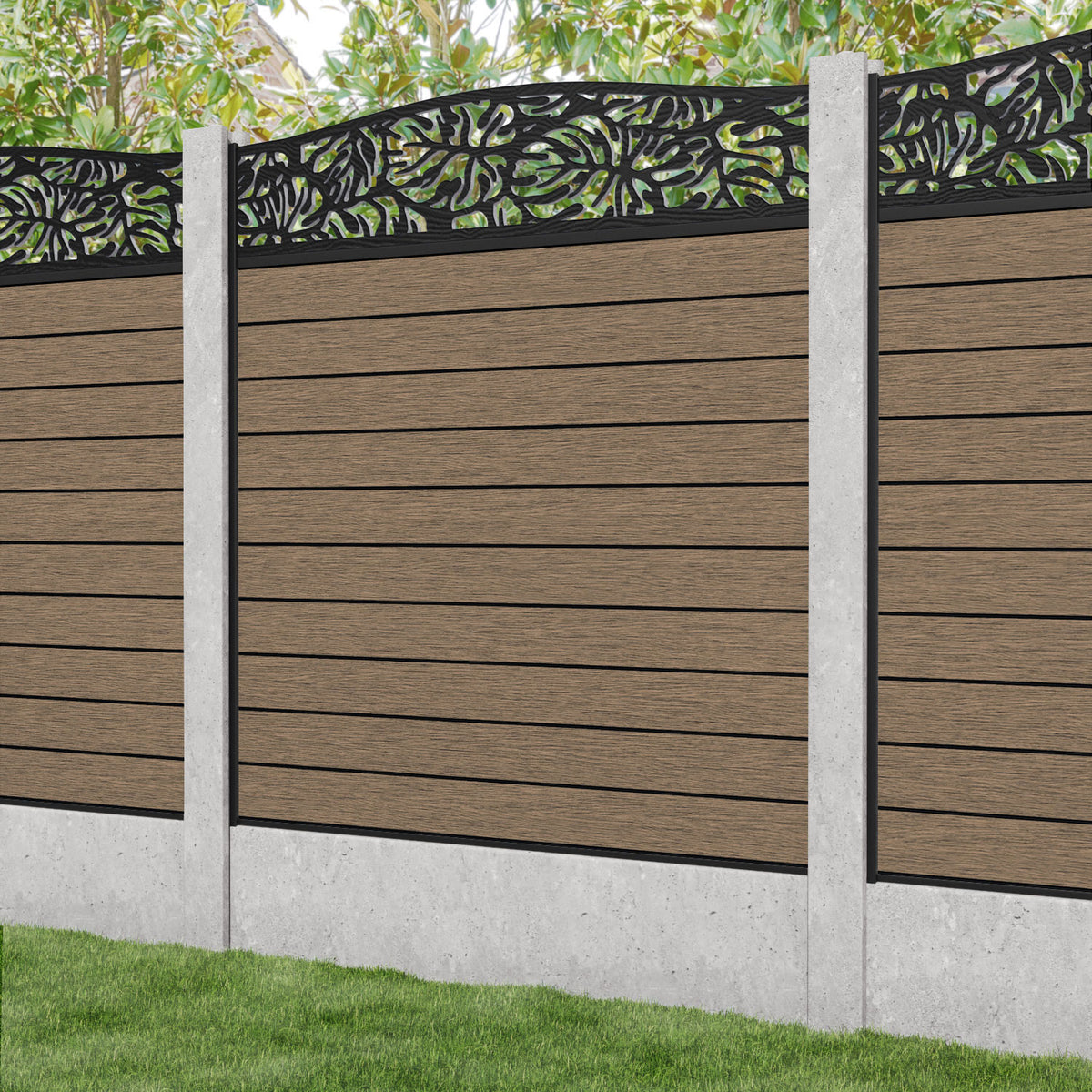 Fusion Botanic Curved Top Fence Panel Teak - for existing concrete posts