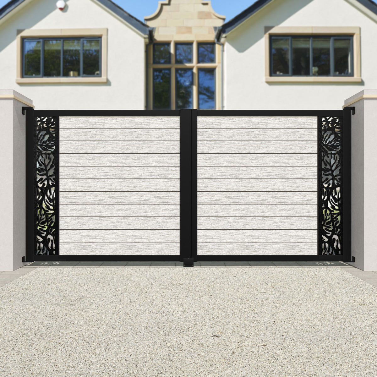 Fusion Botanic Straight Top Driveway Gate Light Stone - End Screen