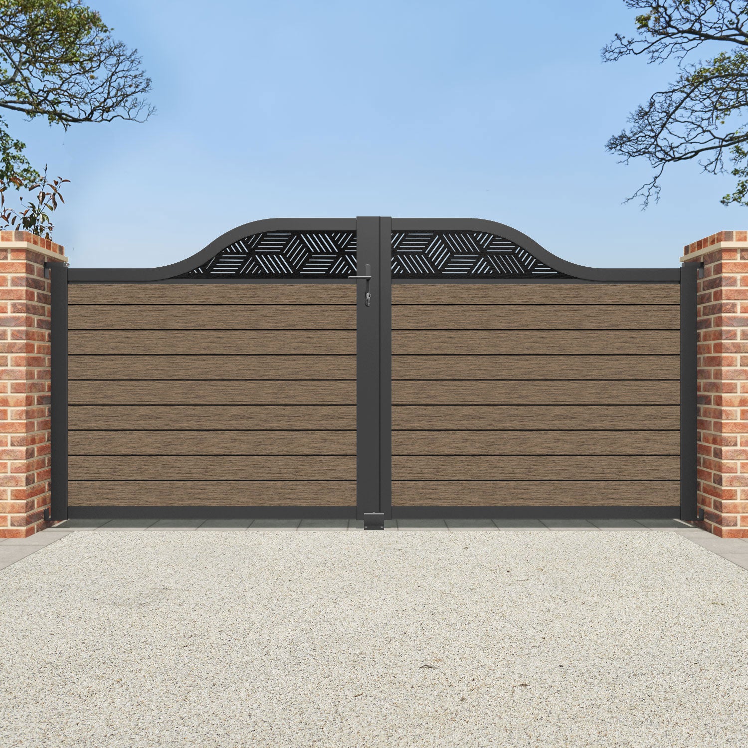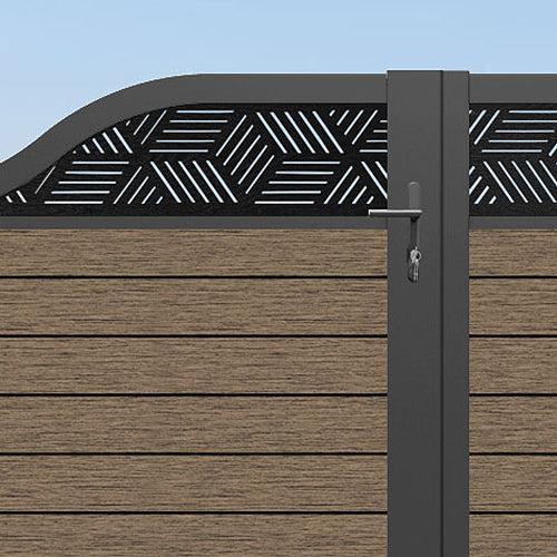 Fusion Cubed Curved Top Driveway Gate Teak - Top Screen