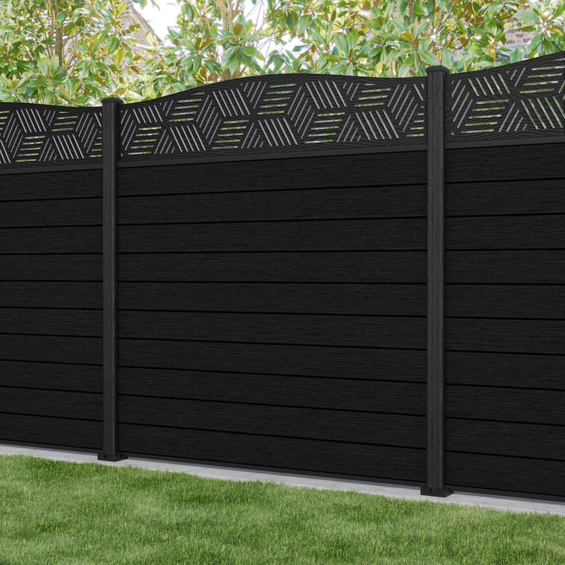Fusion Cubed Curved Top Fence Panel Black - with our composite posts