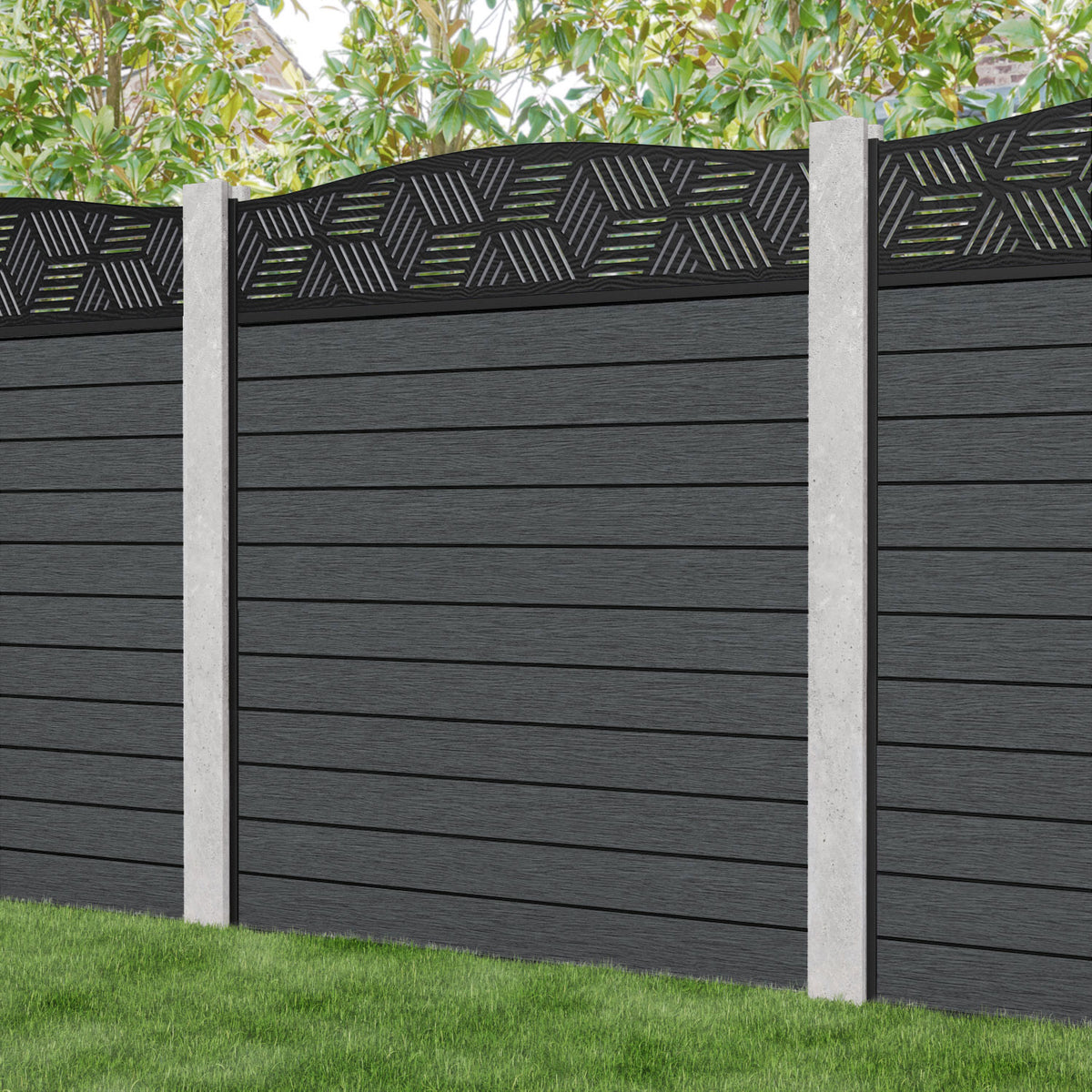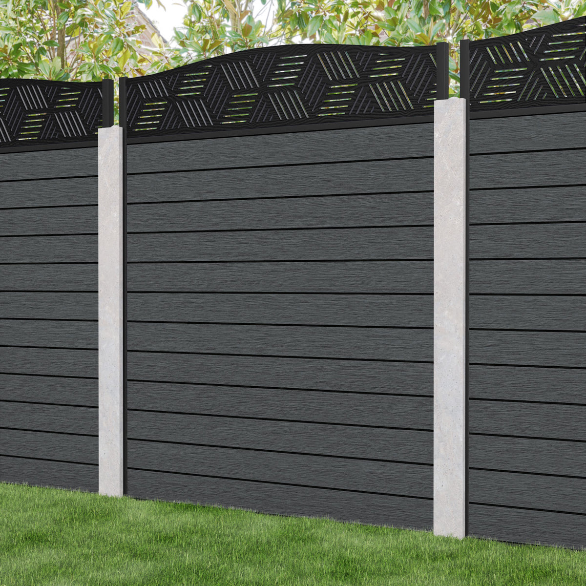 Fusion Cubed Curved Top Fence Panel Dark Grey - for existing concrete posts