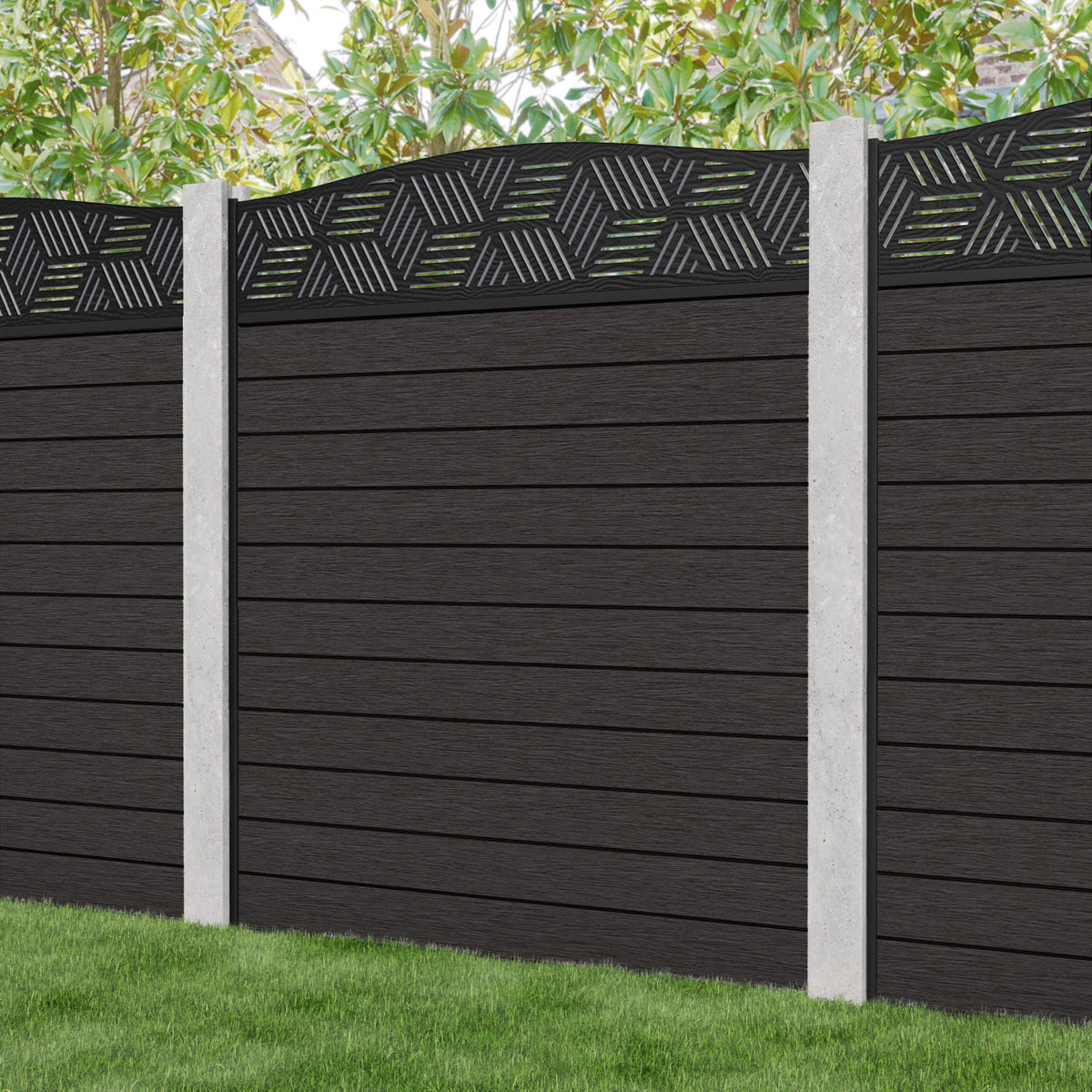 Fusion Cubed Curved Top Fence Panel Dark Oak - for existing concrete posts