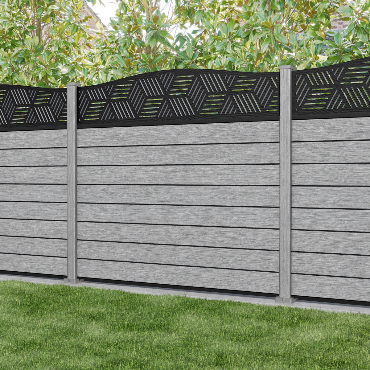 Fusion Cubed Curved Top Fence Panel Light Grey - with our composite posts