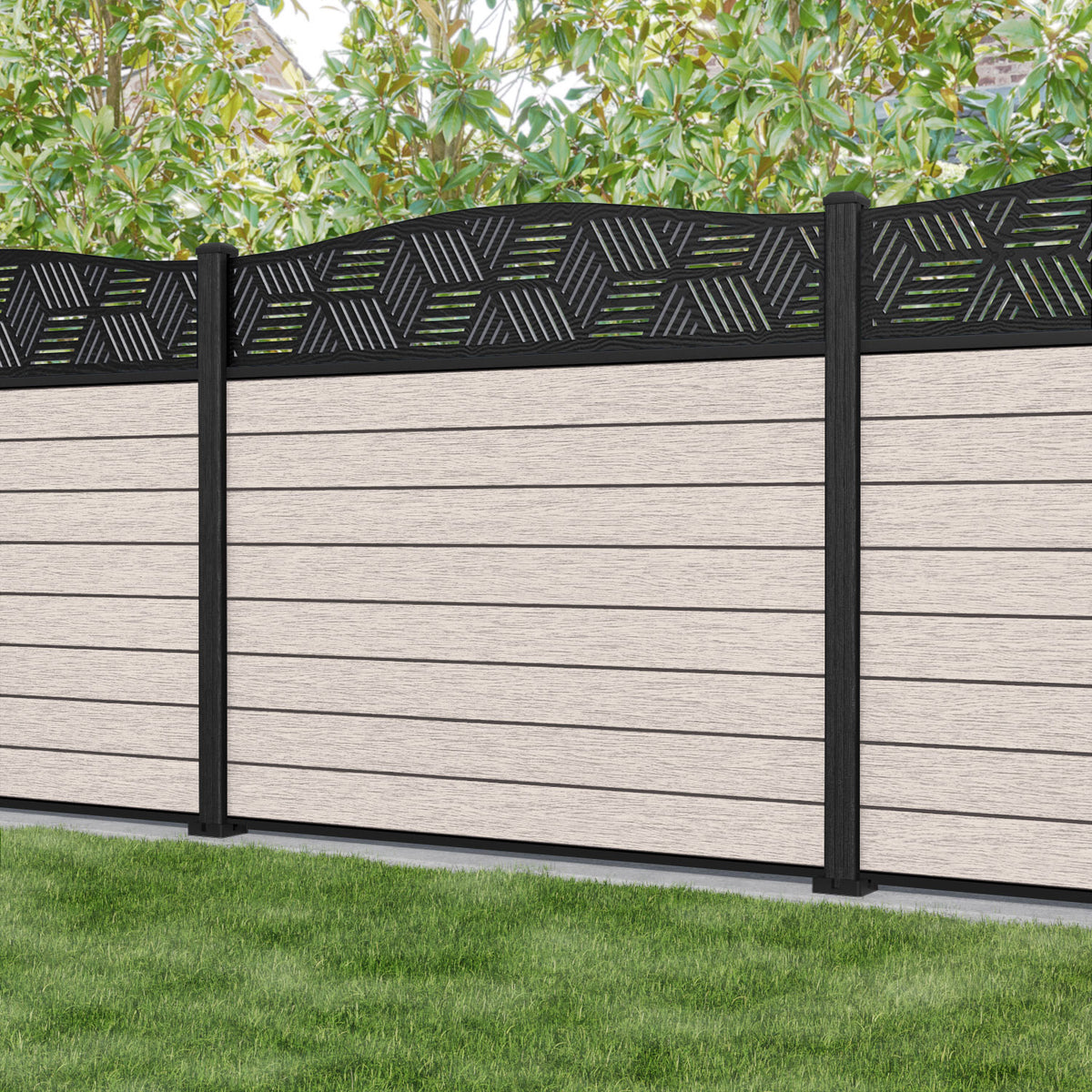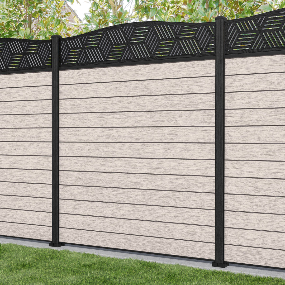 Fusion Cubed Curved Top Fence Panel Mid Stone - with our composite posts