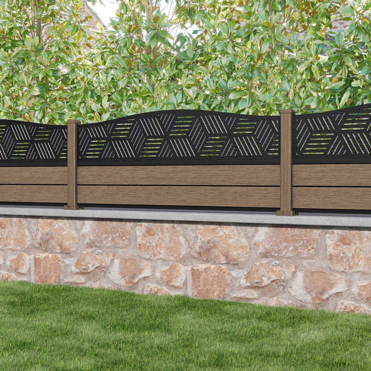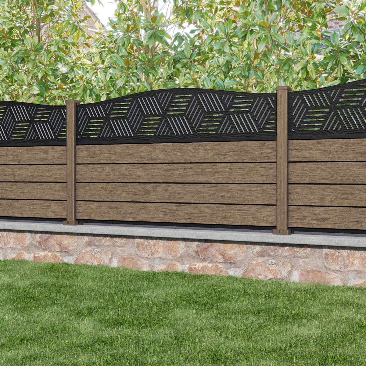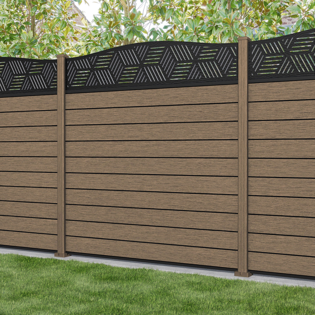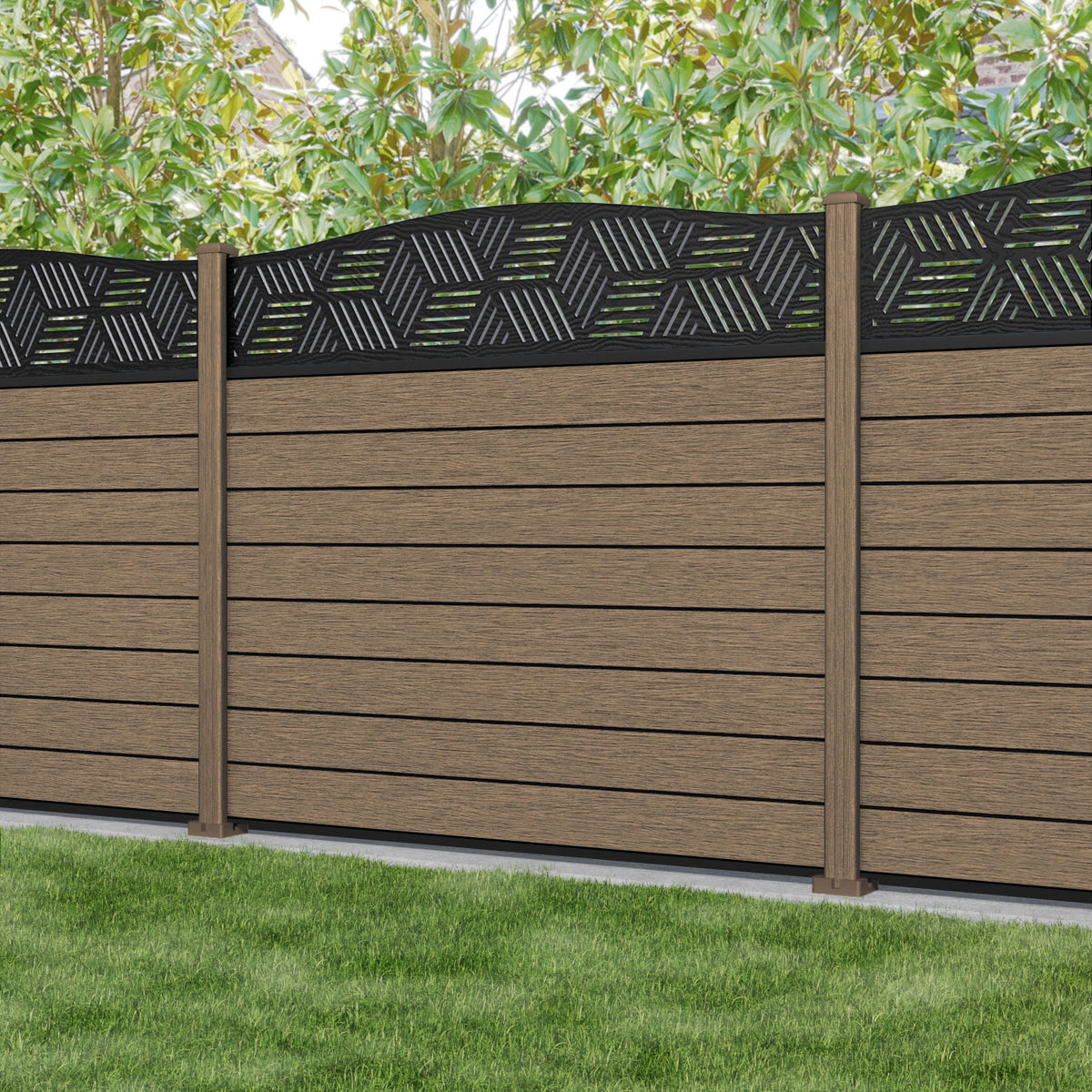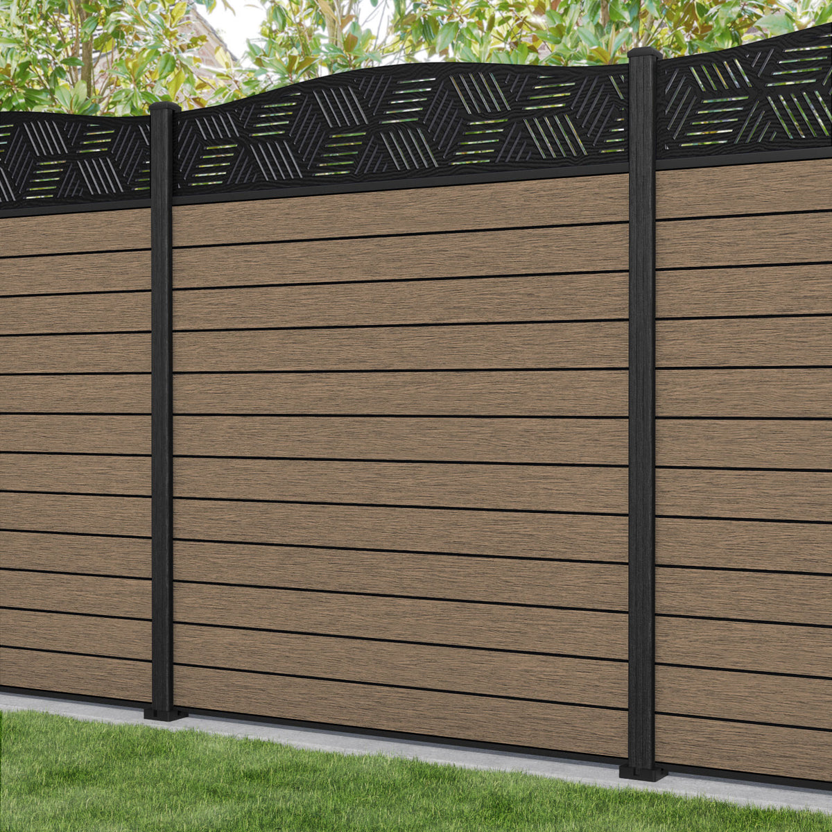 Fusion Cubed Curved Top Fence Panel Teak - with our composite posts