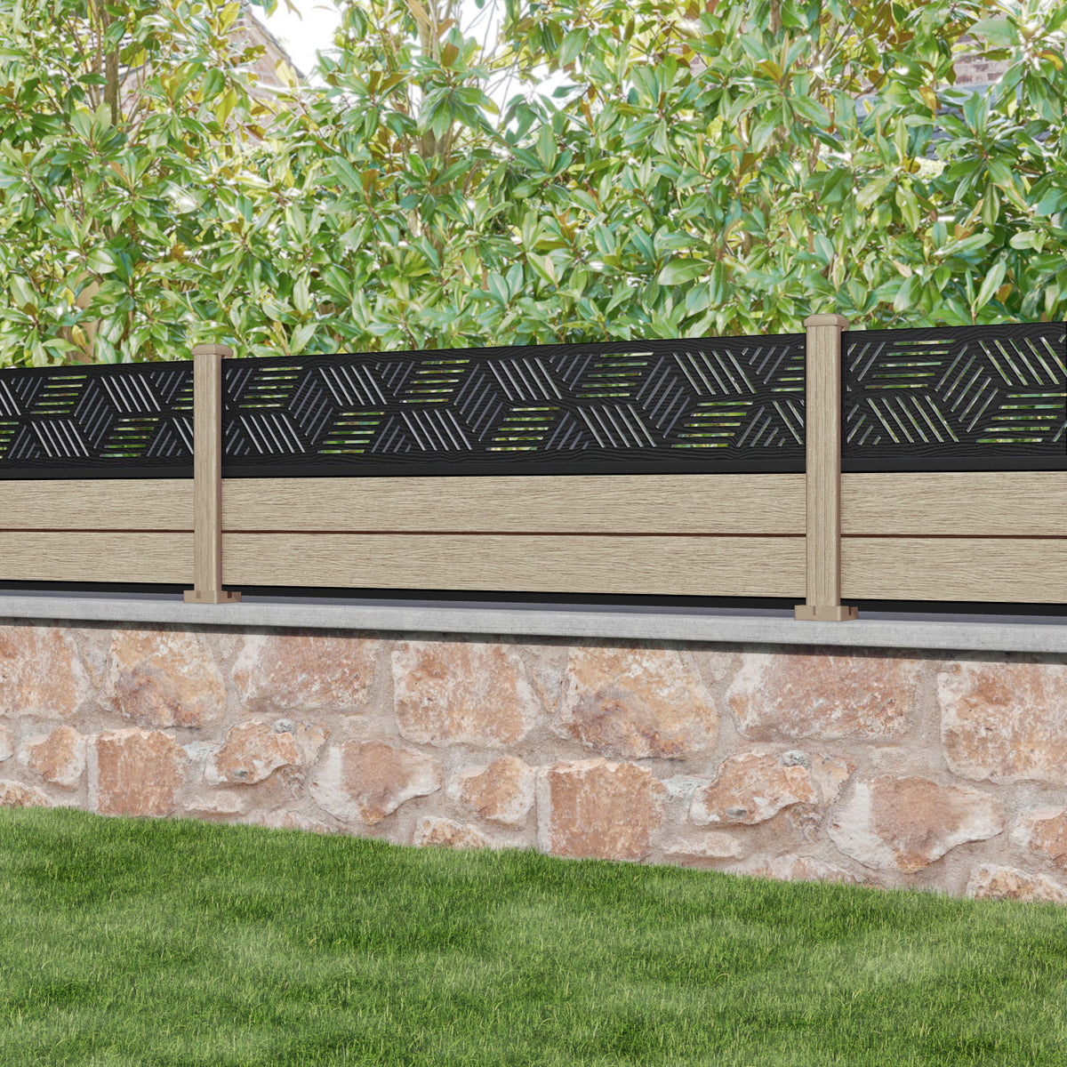 Fusion Cubed Fence Panel Light Oak - with our composite posts