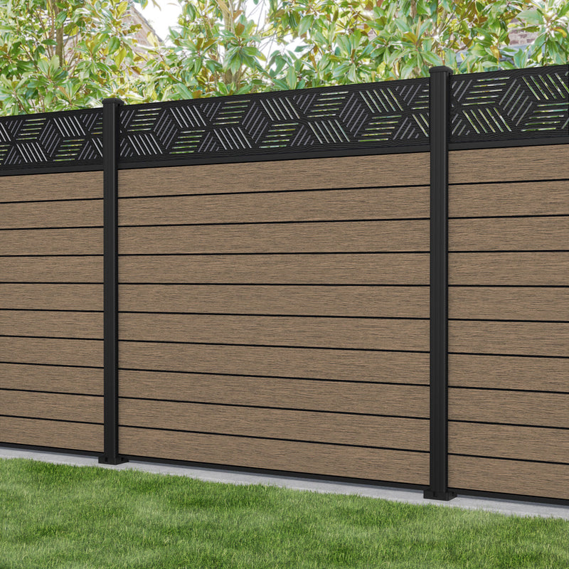 Fusion Cubed Fence Panel Teak - with our aluminium posts