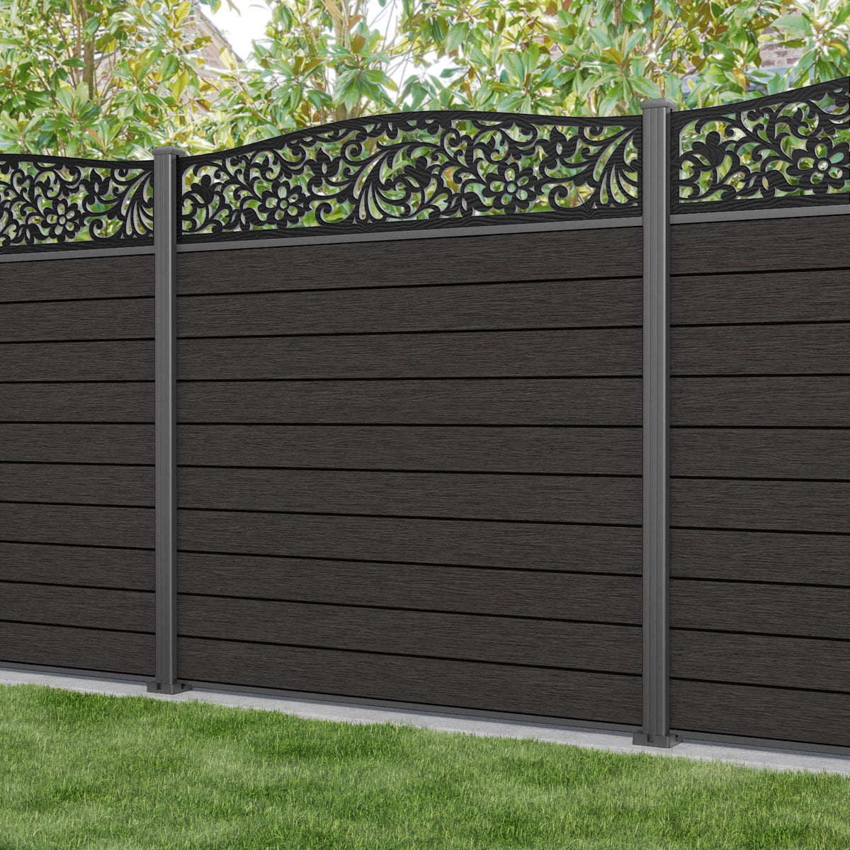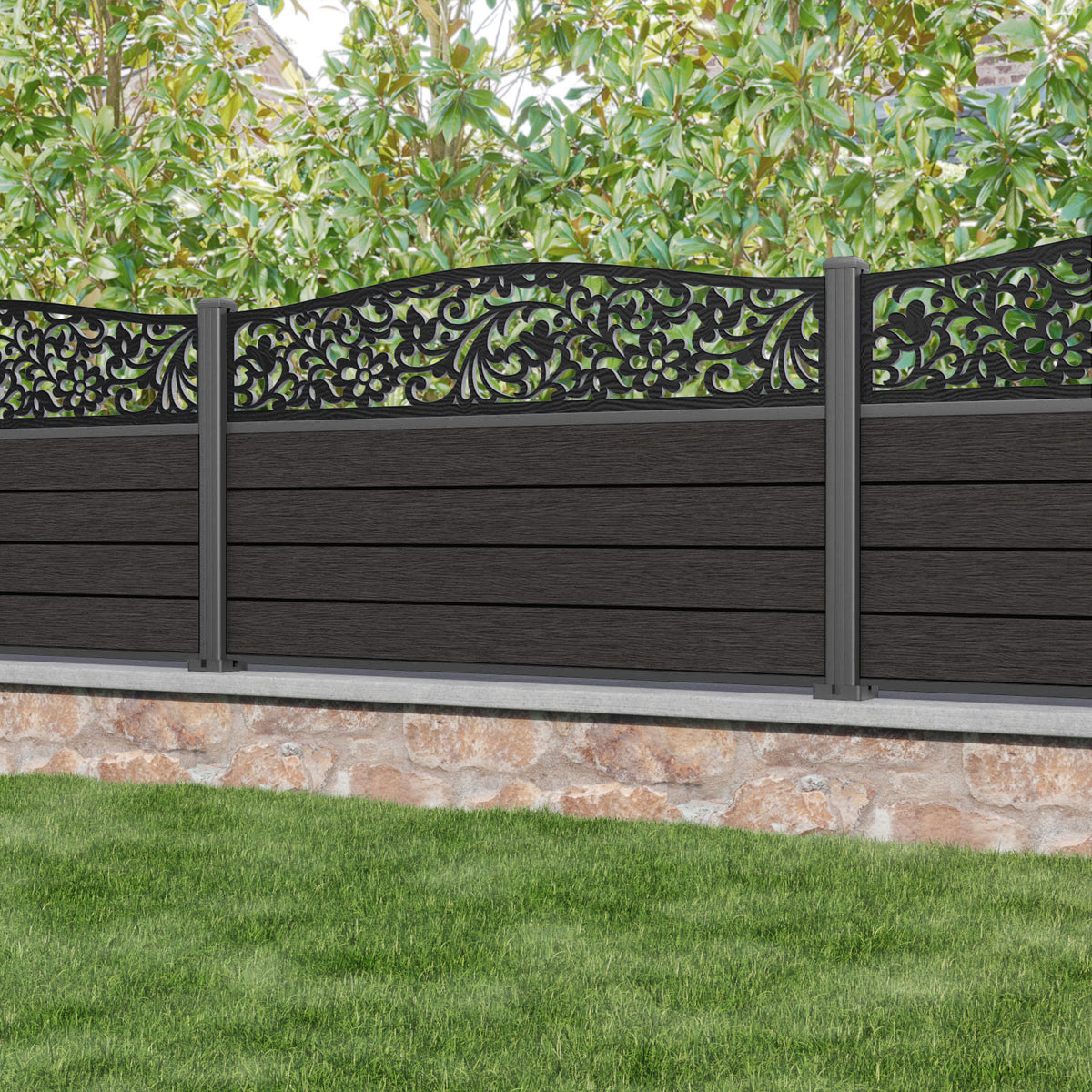 Fusion Eden Curved Top Fence Panel Dark Oak - with our aluminium posts