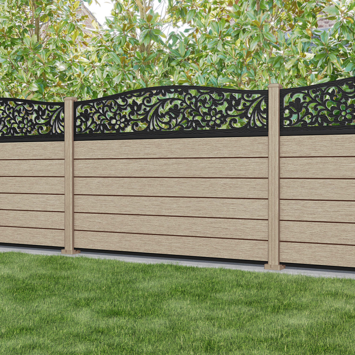 Fusion Eden Curved Top Fence Panel Light Oak - with our composite posts