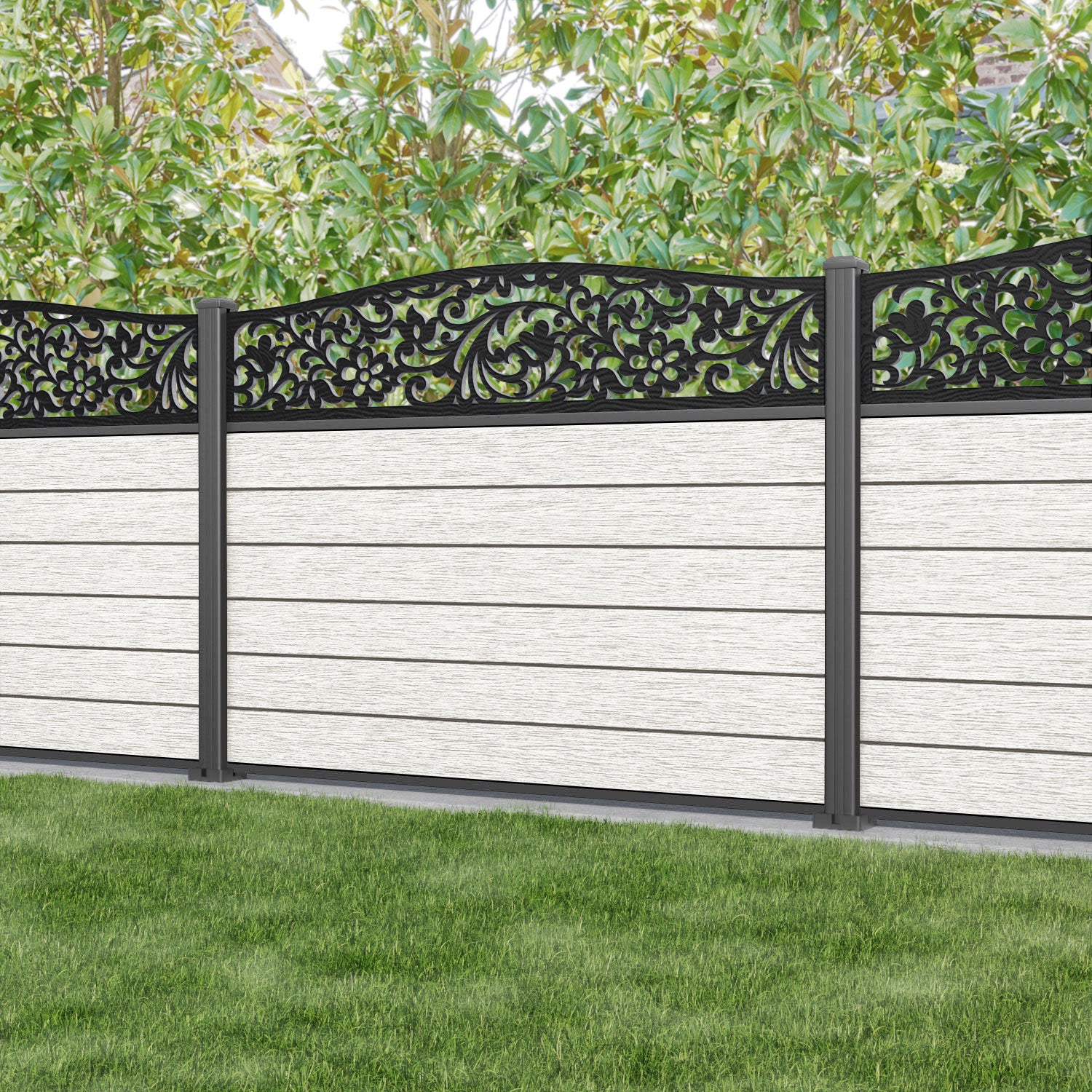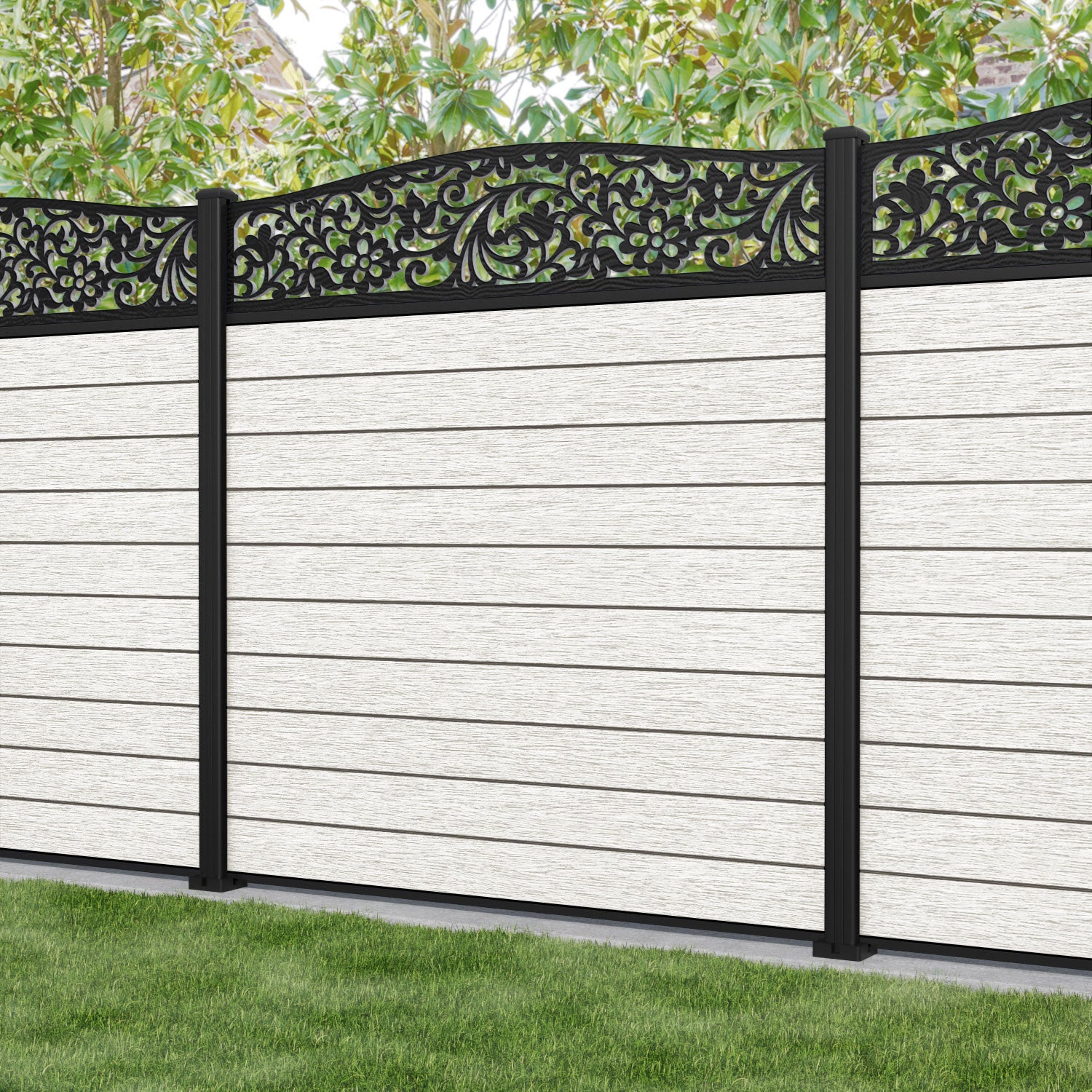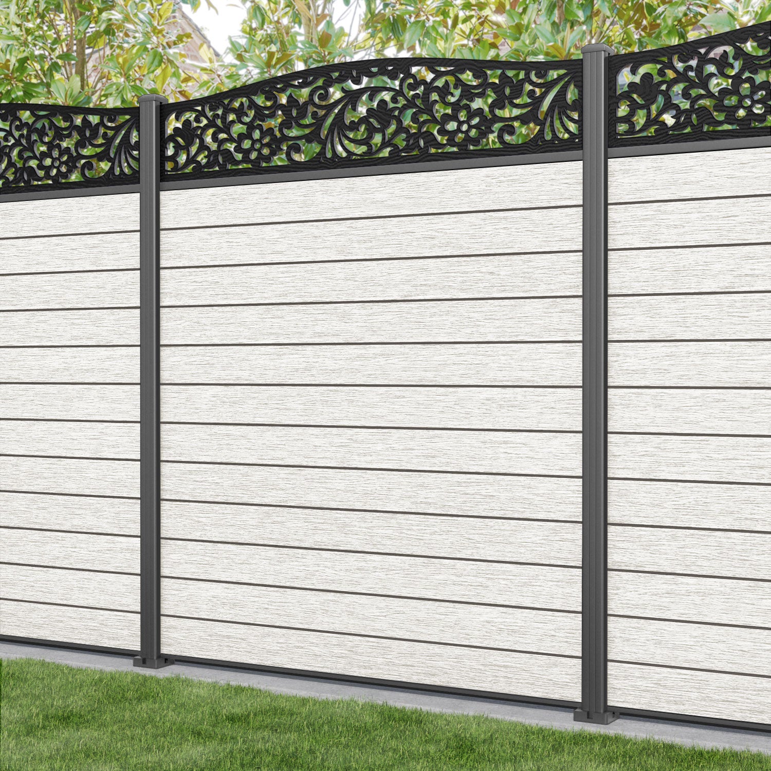 Fusion Eden Curved Top Fence Panel Light Stone - with our aluminium posts