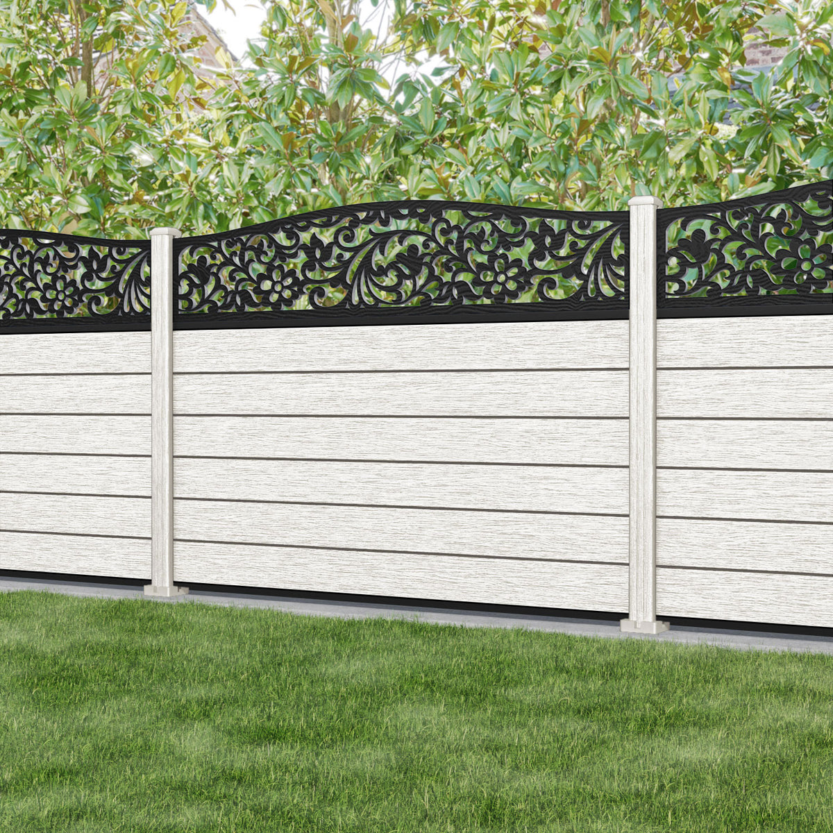 Fusion Eden Curved Top Fence Panel Light Stone - with our composite posts