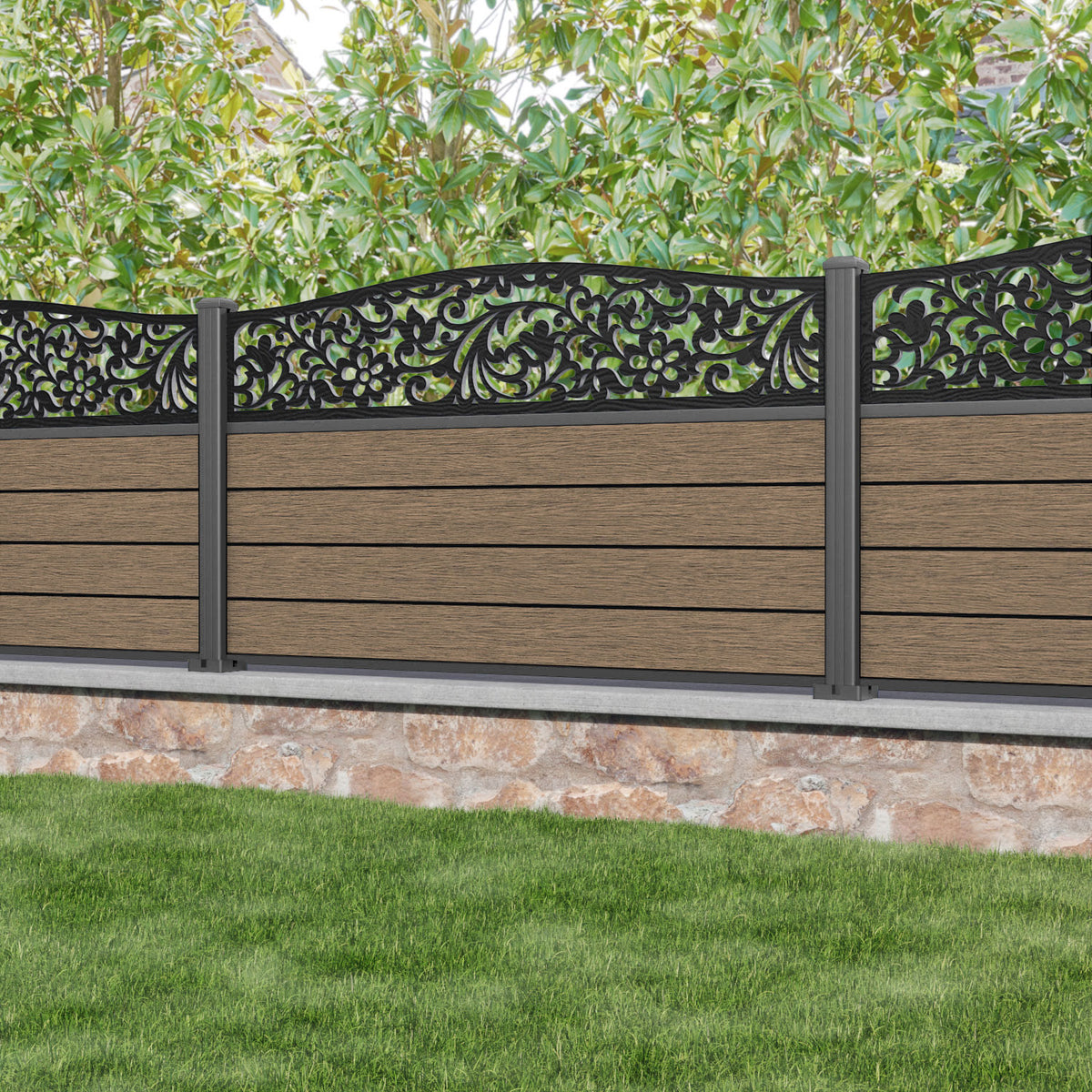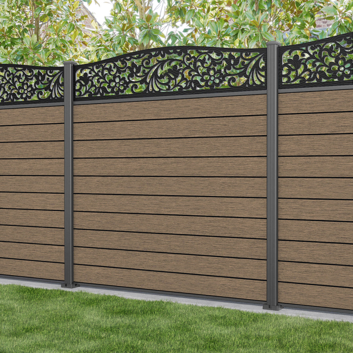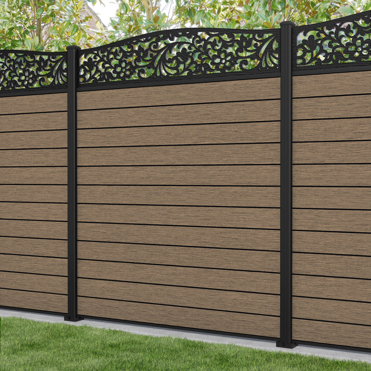 Fusion Eden Curved Top Fence Panel Teak - with our aluminium posts