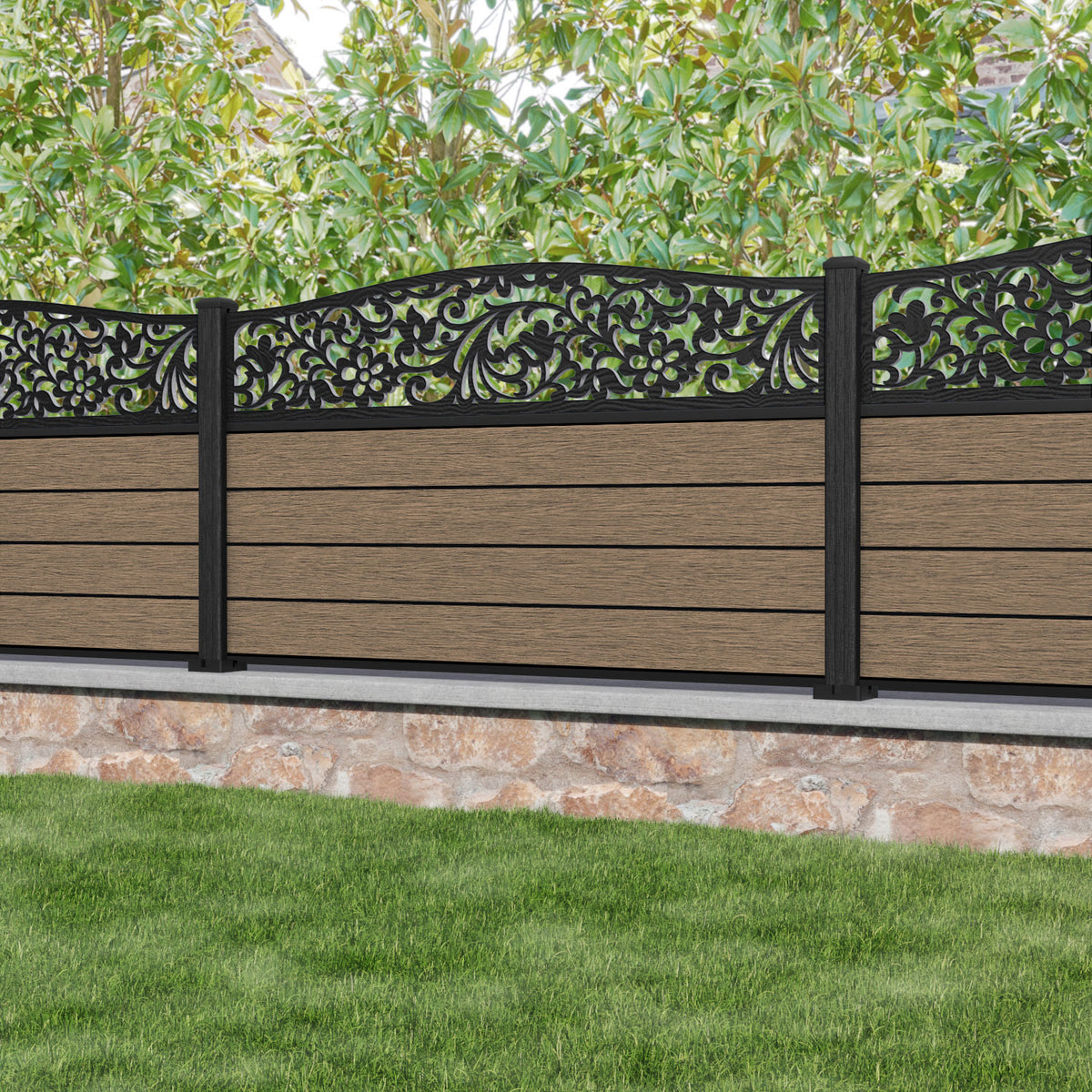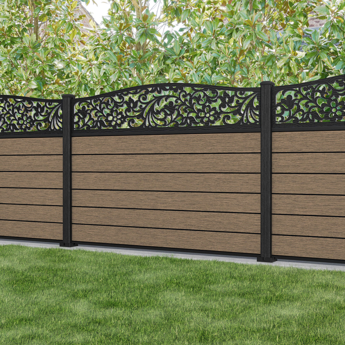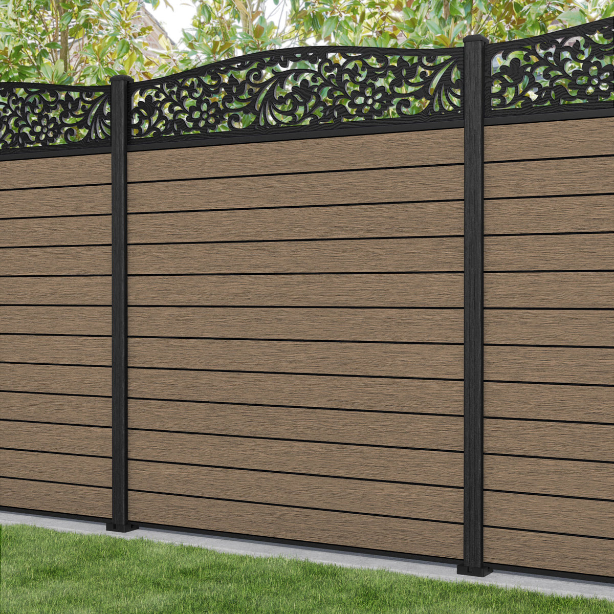 Fusion Eden Curved Top Fence Panel Teak - with our composite posts