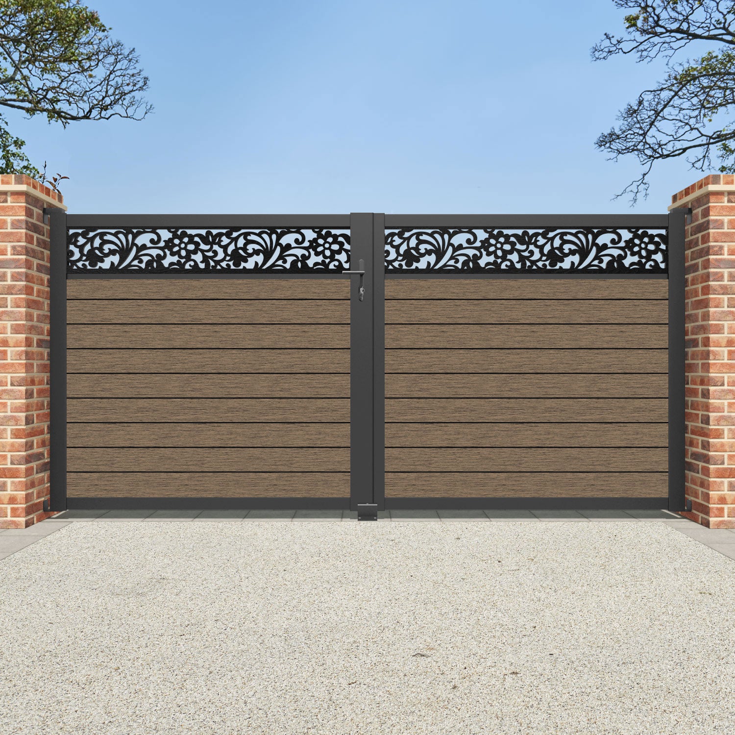 Fusion Eden Straight Top Driveway Gate Teak - Top Screen