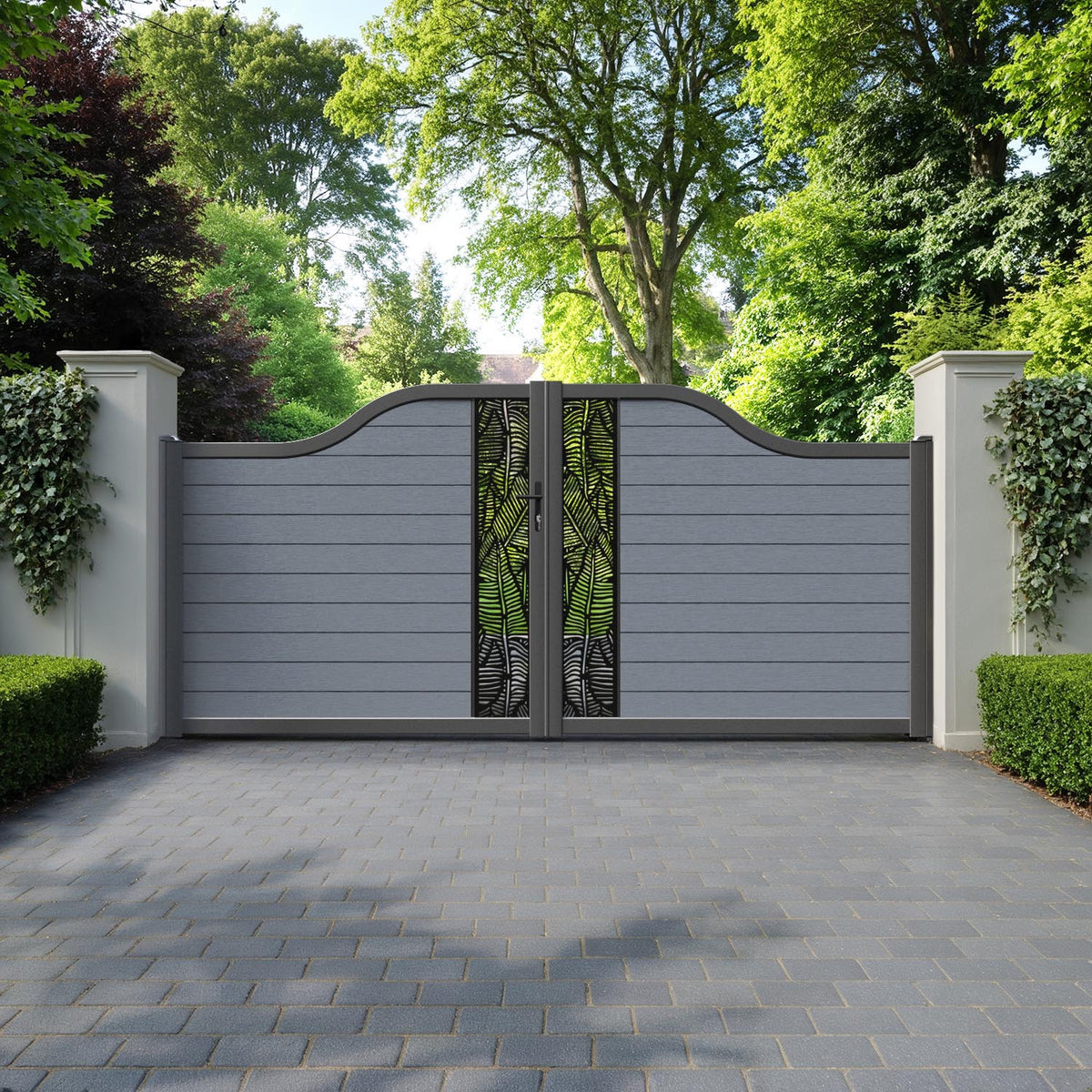 Fusion Feather Curved Top Driveway Gate Anthracite - Middle Screen