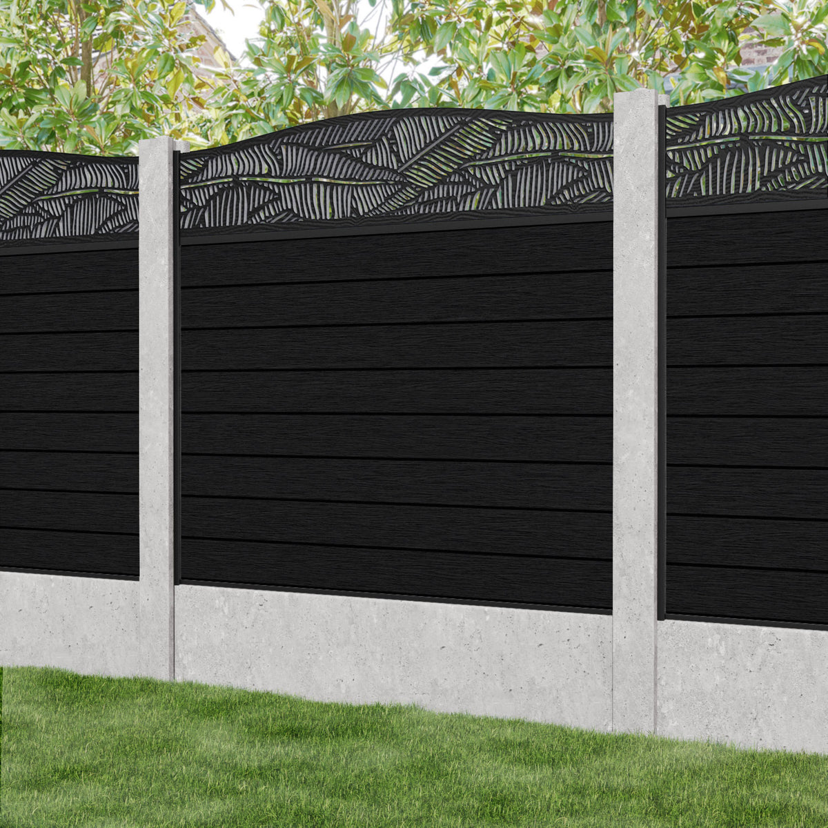 Fusion Feather Curved Top Fence Panel Black - for existing concrete posts