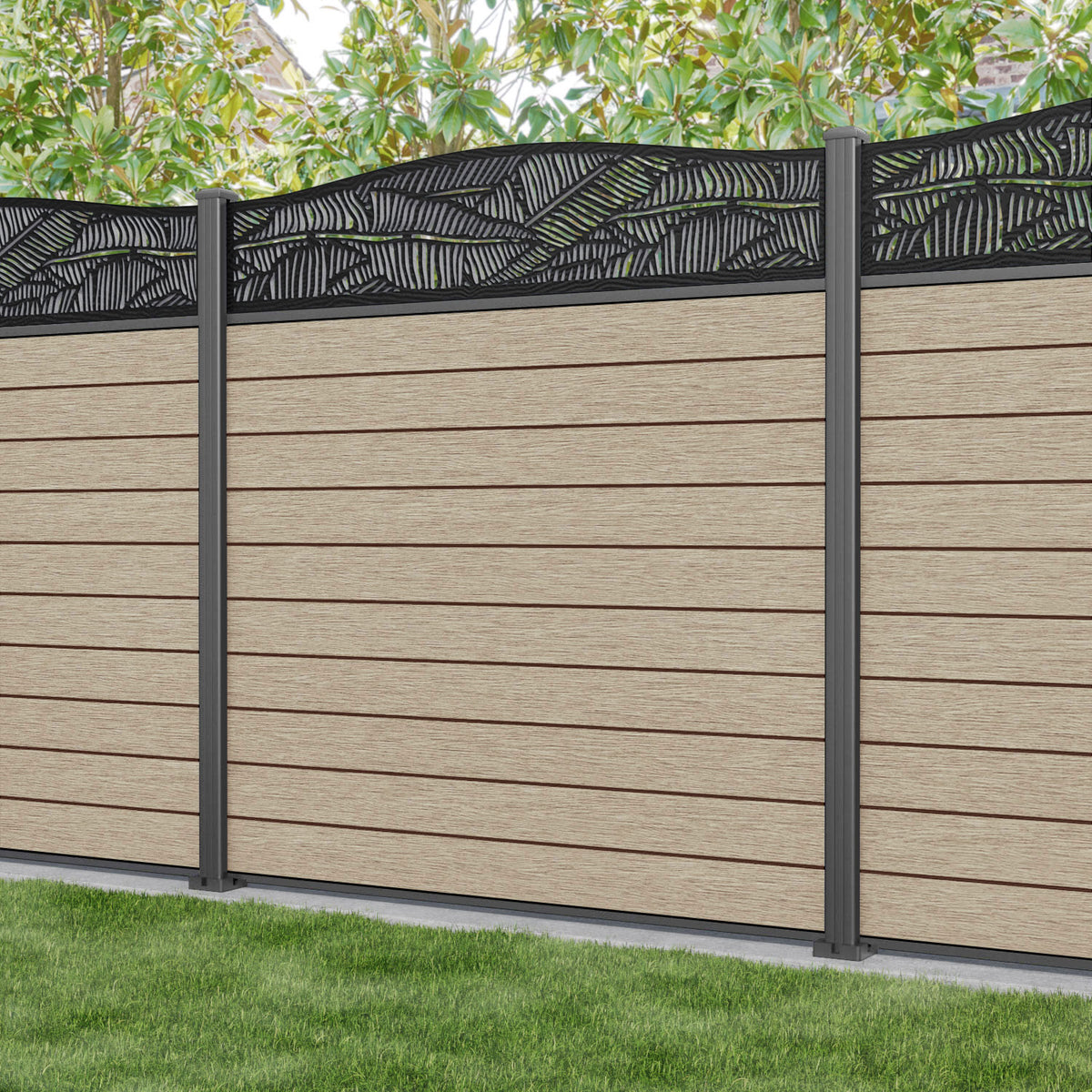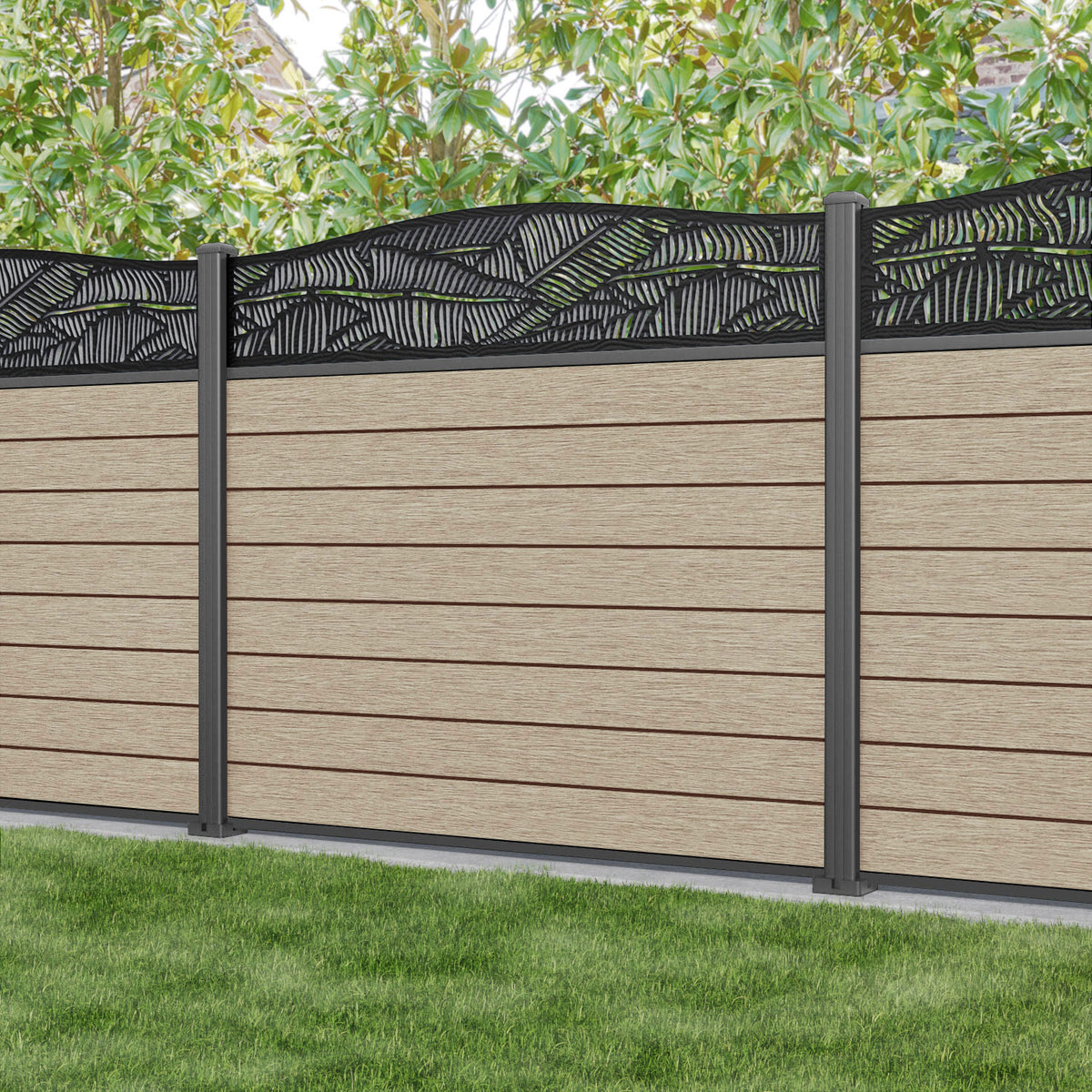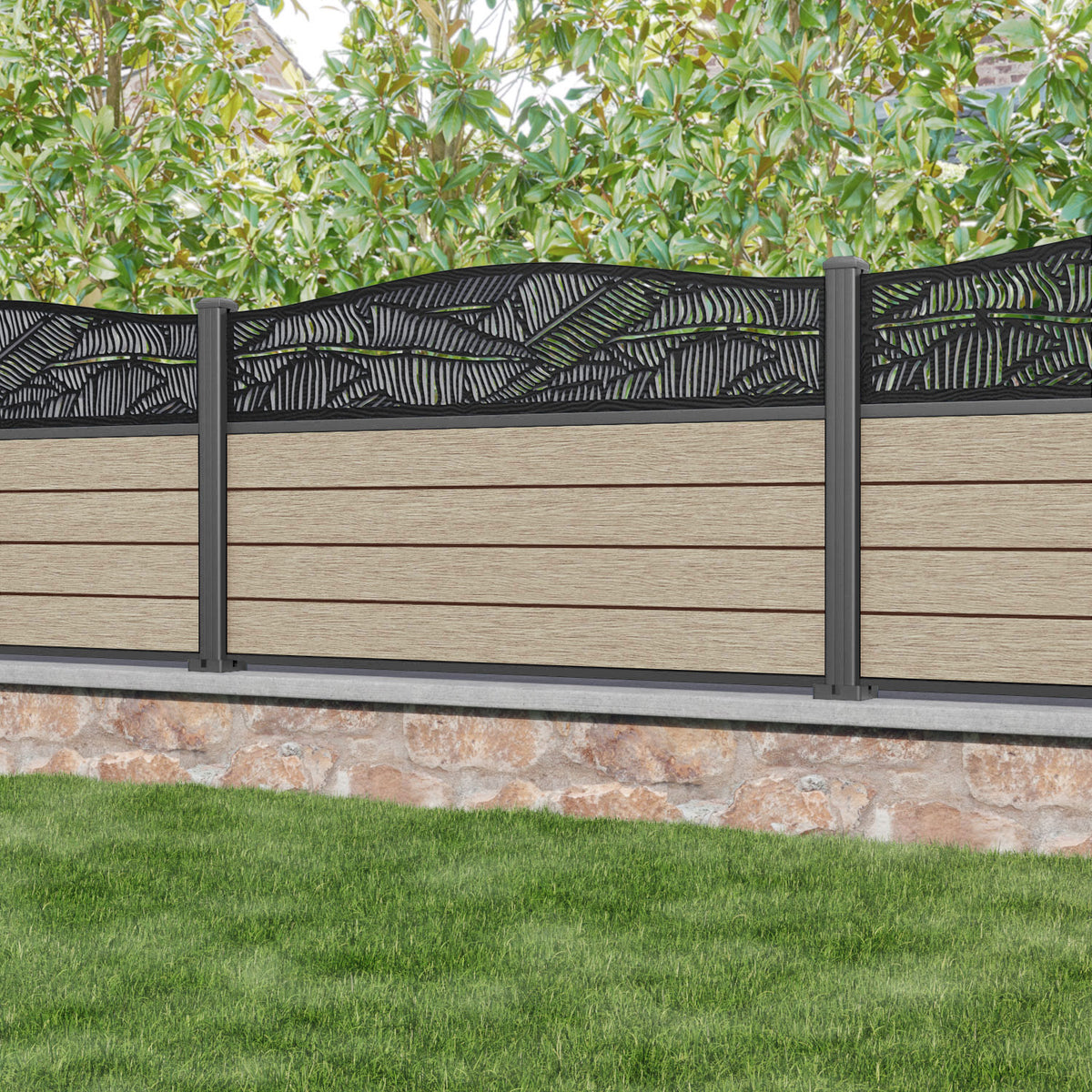 Fusion Feather Curved Top Fence Panel Light Oak - with our aluminium posts