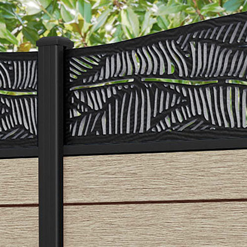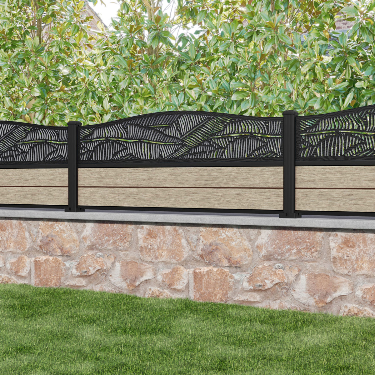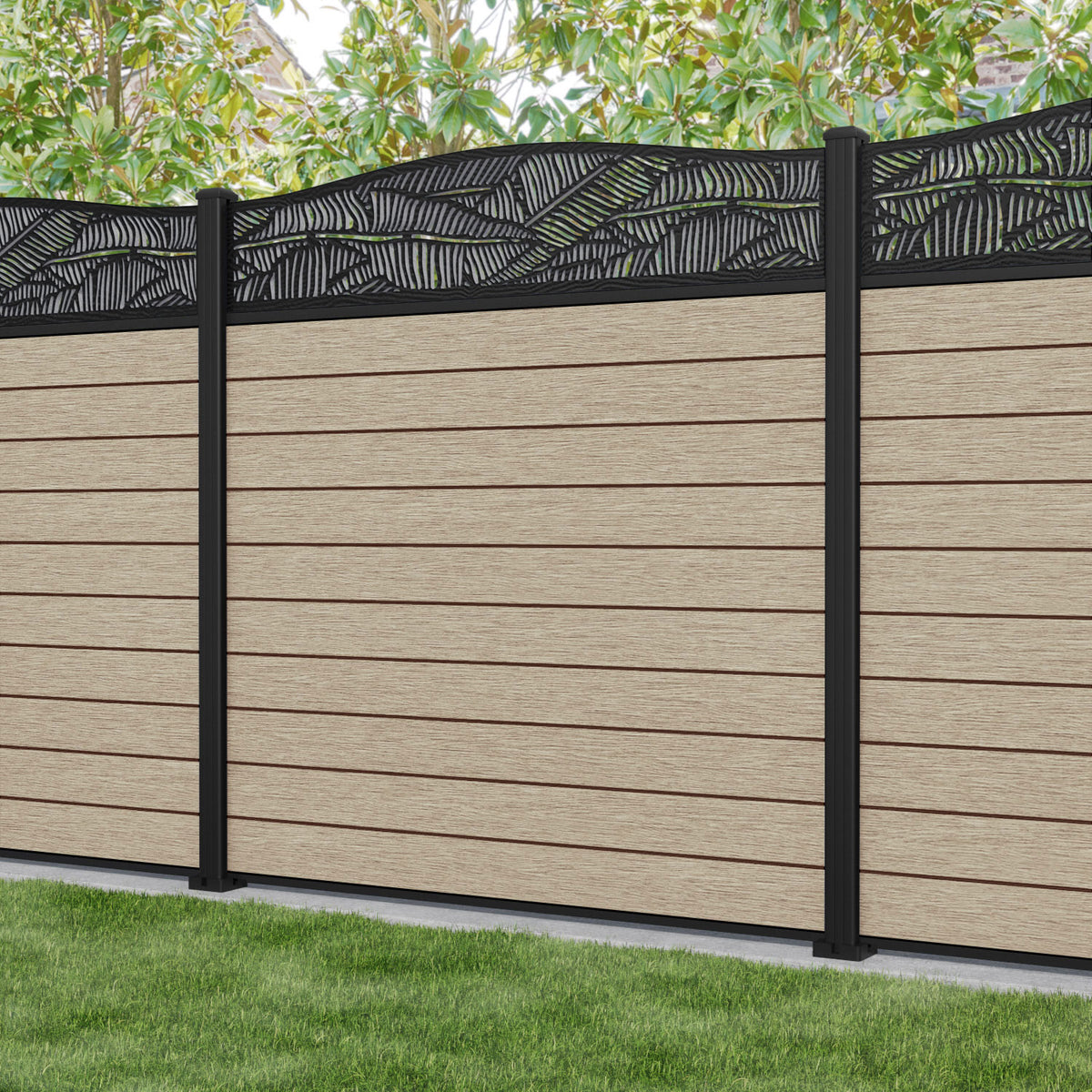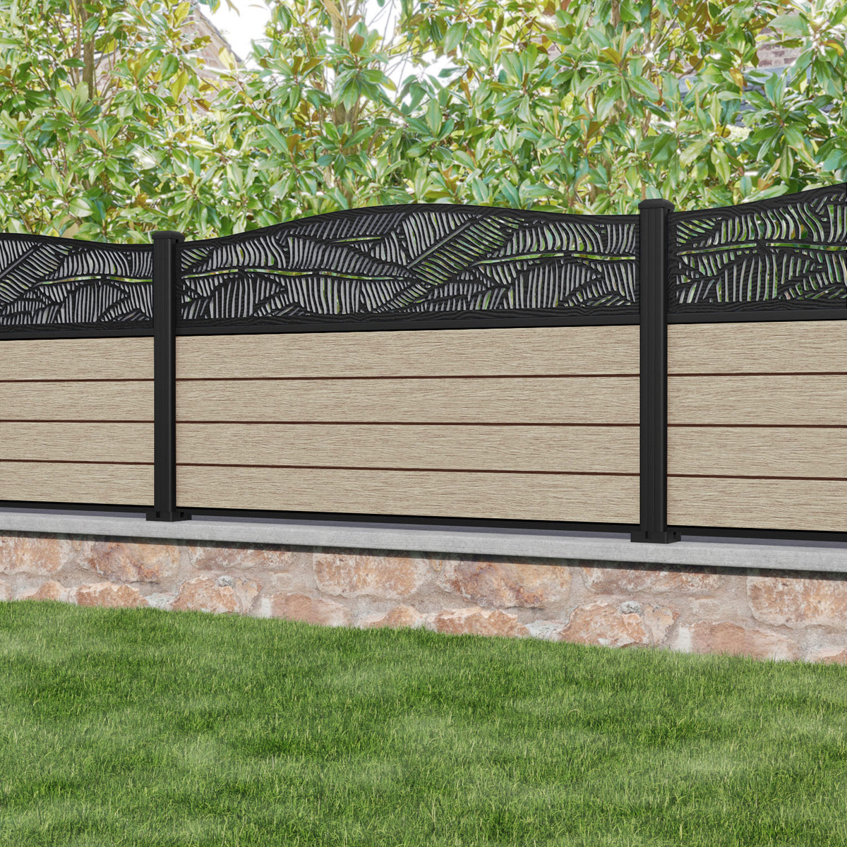 Fusion Feather Curved Top Fence Panel Light Oak - with our aluminium posts